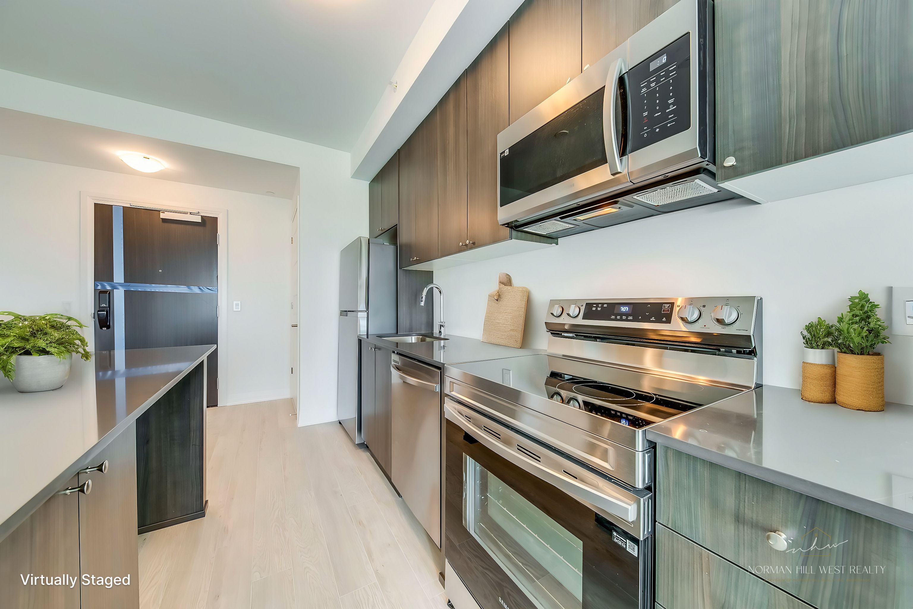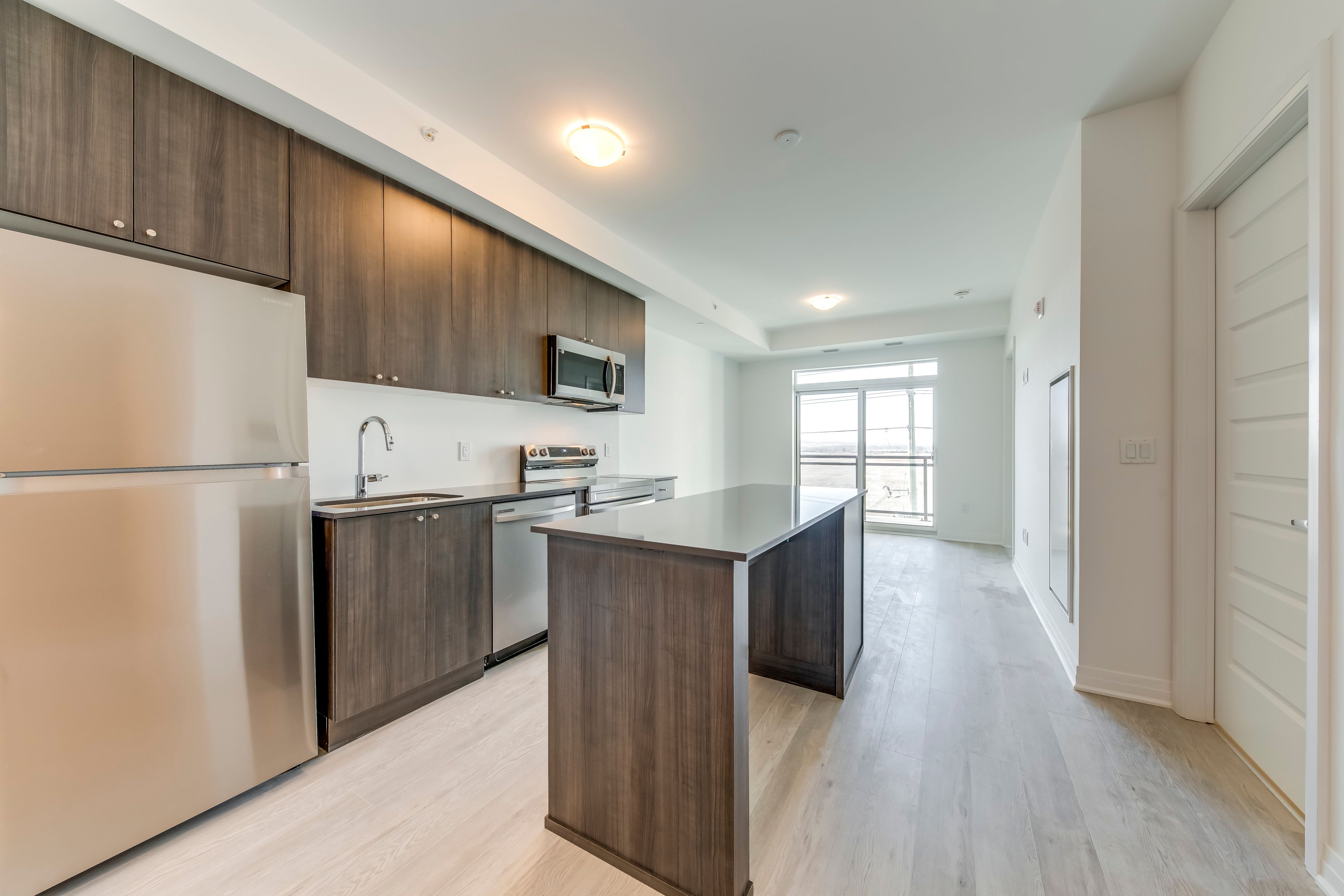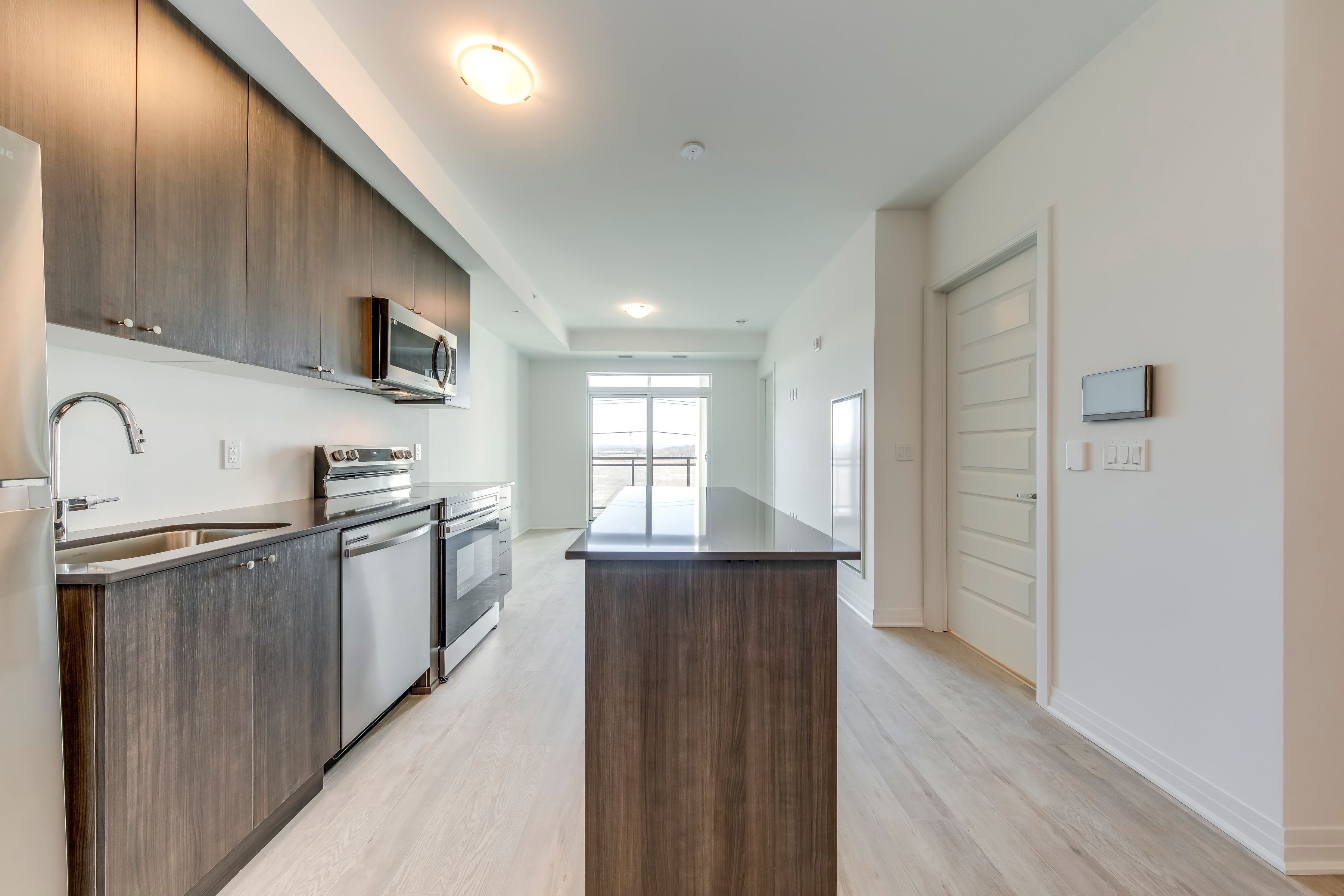 Welcome to this stunning one-year-old 1 bed + den corner unit! This modern and beautifully maintained suite offers a perfect blend of style and comfort. Featuring stainless steel appliances, sleek composite flooring, a thoughtfully curated colour palette, and designer finishes throughout, this home feels both contemporary and inviting. Enjoy breathtaking, unobstructed escarpment views from the large windows and private balcony. The in-suite laundry room adds everyday convenience, while the versatile den can easily serve as a home office, guest room, or nursery. Residents enjoy access to premium building amenities, including a 24-hour concierge, fitness centre, rooftop terrace, and stylish social lounge (shared with neighbouring buildings). Underground parking, a locker and internet are included in the lease. Perfectly located close to highways, shopping, dining, and more. This exceptional unit is ready to welcome you home! Utilities are paid by tenant