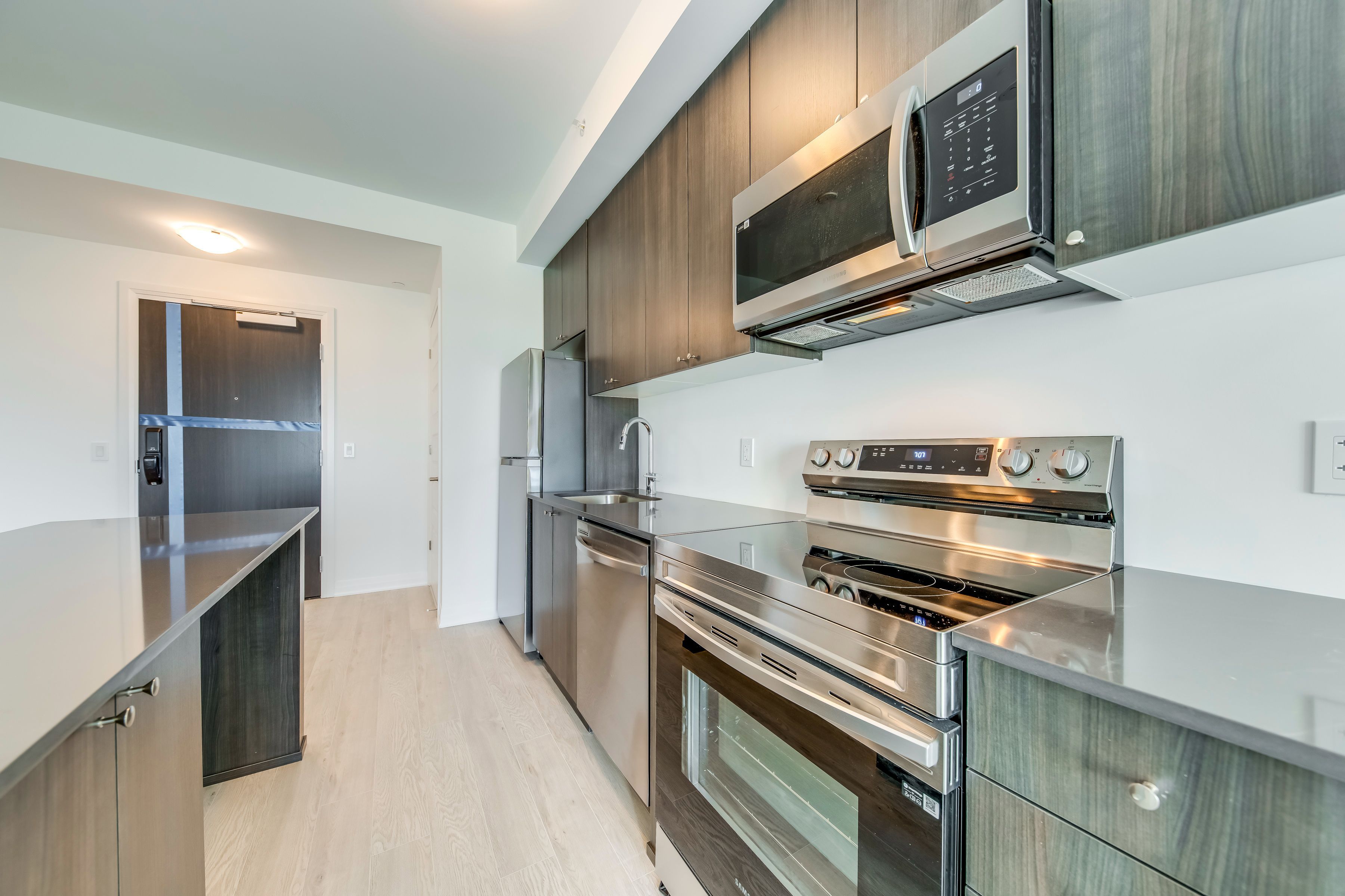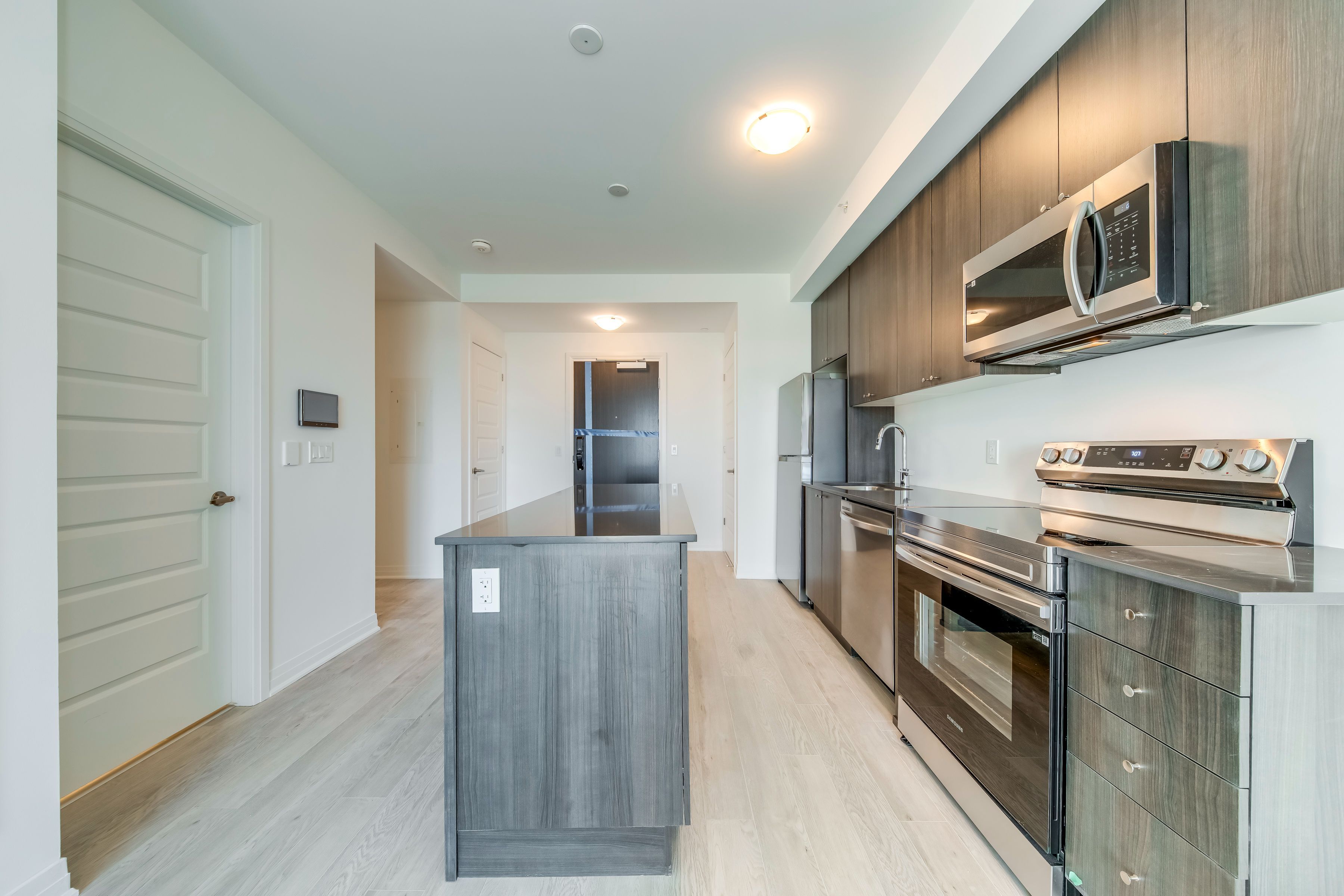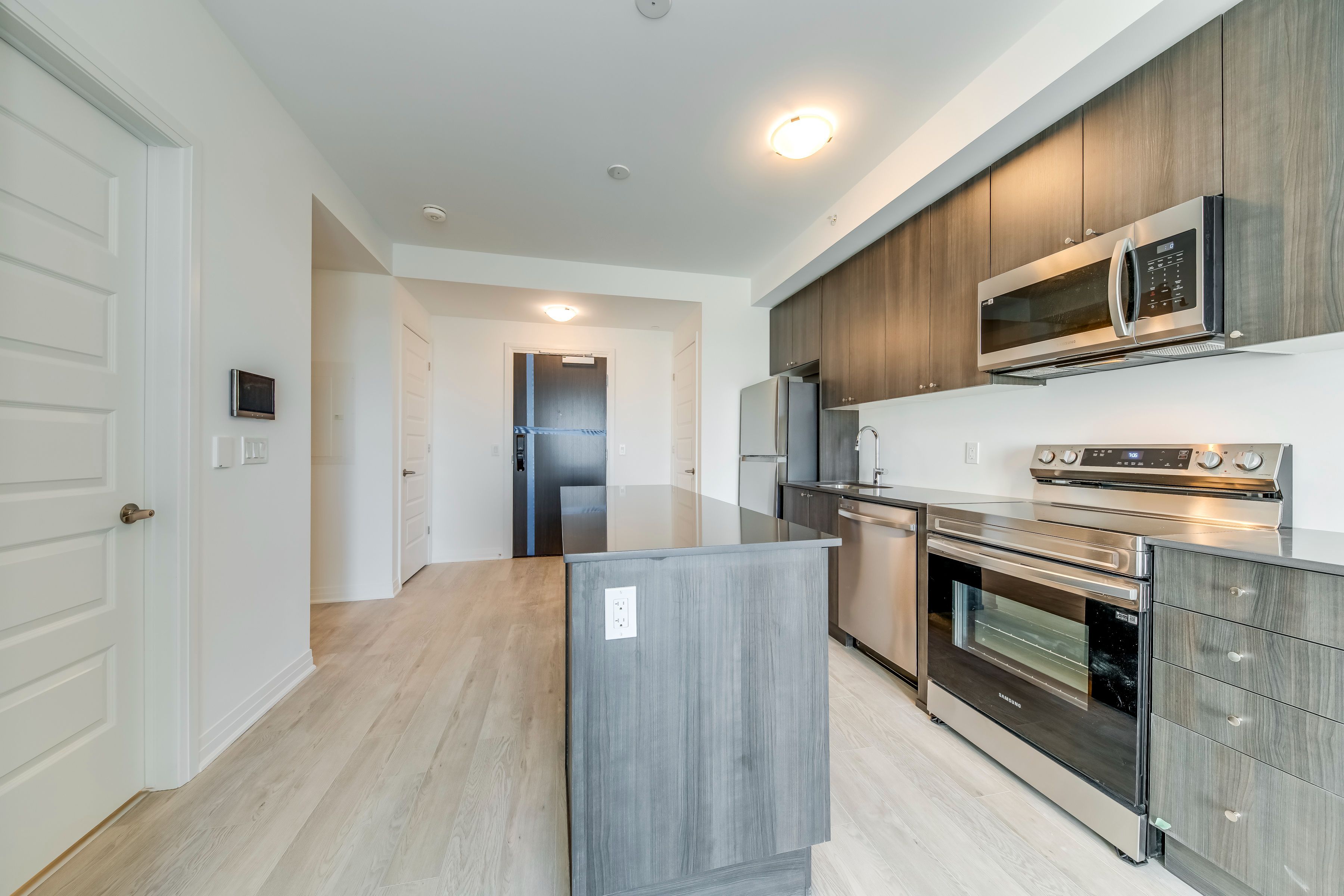 Welcome to this stunning one-year-old 1 bed + den corner unit! This modern and beautifully maintained suite offers a perfect blend of style and comfort. Featuring stainless steel appliances, sleek composite flooring, a thoughtfully curated colour palette, and designer finishes throughout, this home feels both contemporary and inviting. Enjoy breathtaking, unobstructed escarpment views from the large windows and private balcony. The in-suite laundry room adds everyday convenience, while the versatile den can easily serve as a home office, guest room, or nursery. Residents enjoy access to premium building amenities, including a 24-hour concierge, fitness centre, rooftop terrace, and stylish social lounge (shared with neighbouring buildings). Underground parking, a locker and internet are included in the lease. Perfectly located close to highways, shopping, dining, and more. This exceptional unit is ready to welcome you home! Utilities are paid by tenant