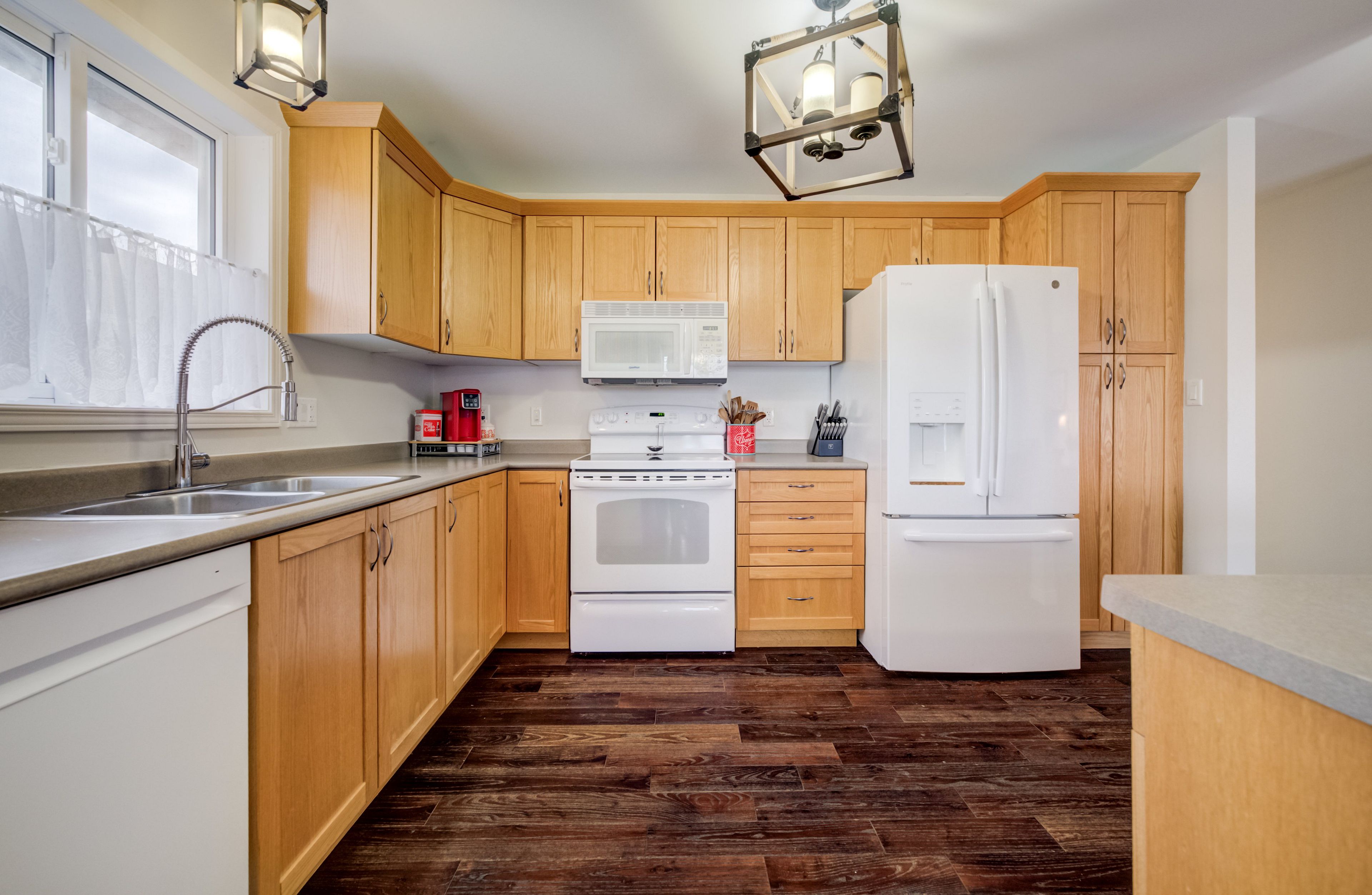 Get ready to move in and start enjoying all this raised bungalow has to offer. Designed with family living in mind, this home offers comfortable spaces to gather, relax, and make everyday life a little easier. Step inside to a welcoming entryway with an open lobby, complete with a coat closet and plenty of room for boots, backpacks, and outdoor gear. Upstairs, the main living area features an open-concept layout where hardwood floors flow through the living/dining spaces, creating a warm and inviting setting for both quiet evenings and hosting friends and family. The kitchen is the heart of the home, offering abundant cabinetry and a large island with breakfast bar-perfect for casual meals, morning coffee, or keeping the cook company while dinner is prepared. The main bathroom offers a spa-like feel with a tiled walk-in shower and a deep soaker tub, creating a space to unwind at the end of the day. 3 bedrooms complete the main floor, providing comfortable spaces for family or guests. Downstairs, the finished basement adds valuable living space with room to adapt to your lifestyle. An office that could easily serve as a fourth bedroom, a cozy family room with gas fireplace for relaxing on cold winter nights, and a 4-piece bathroom with a brand-new tub insert and surround offer both comfort and convenience. An additional room currently set up as a game room provides endless possibilities-whether it's a playroom, home gym, hobby space, or media room. The oversized single-car garage offers more than just parking, featuring extra storage and a pellet stove for those who enjoy using the space as a workshop or year-round hangout. Outside, the fully fenced backyard is ready for summer enjoyment with a deck, firepit area, and storage shed-perfect for backyard gatherings, evening fires, or simply relaxing outdoors. Located in a family-oriented neighbourhood close to parks, schools, and churches, this home offers the space, comfort, and community many buyers are looking for.