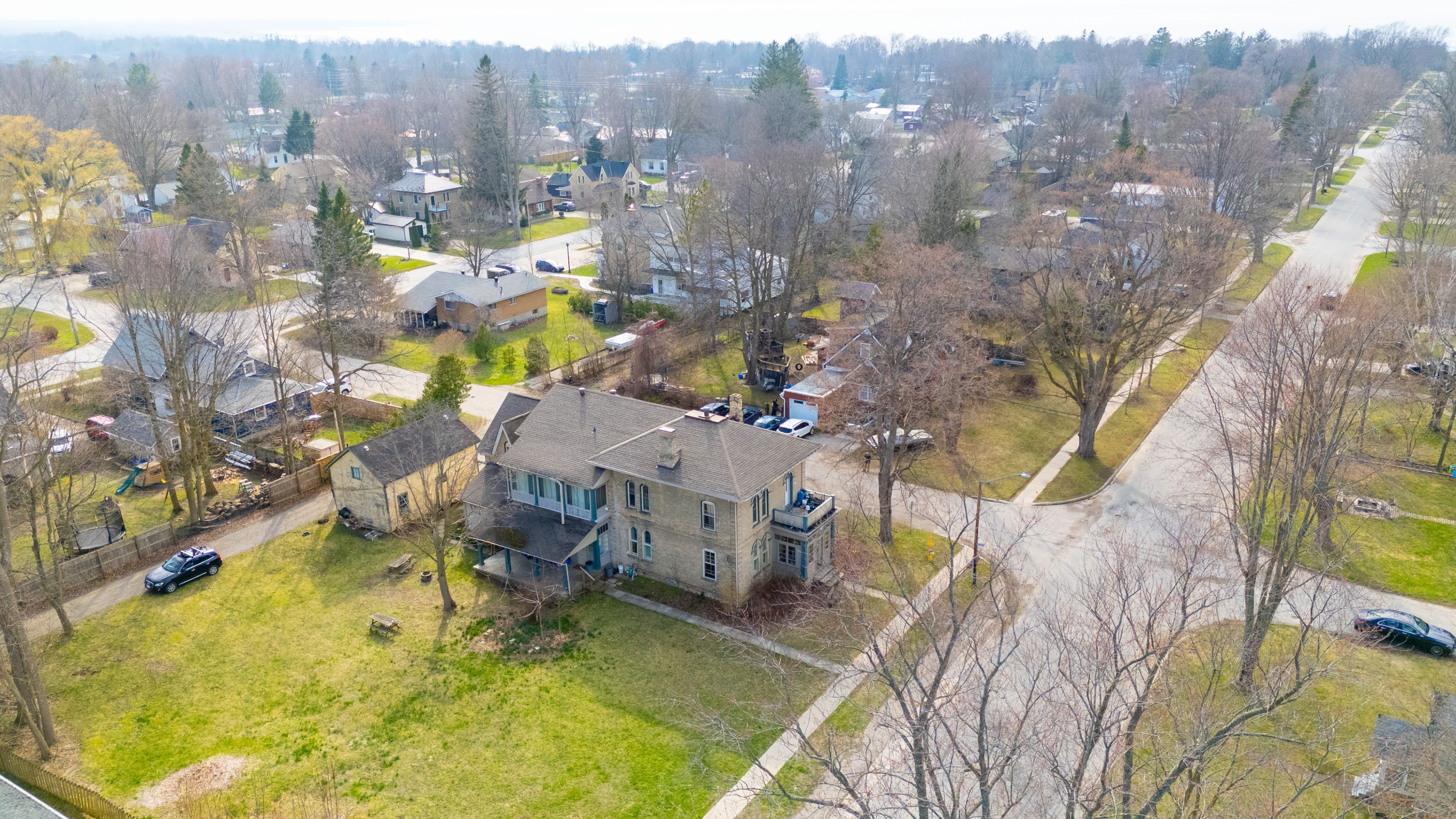 Attention investors! Seize a unique opportunity in port elgin with this fully tenanted fourplex nestled within a distinguished century home. This property features an ideal unit mix of two spacious two-bedroom units and two well-appointed one-bedroom units, providing a diversified income stream. Benefit from the convenience of on-site shared laundry and included parking for all tenants. Currently generating a $5000 per month, this property offers immediate cash flow. Adding significant value, both one-bedroom units have been recently renovated. The main floor units boast impressive 12-foot ceilings and the home's historic detailing shines through, including stunning original wooden pocket doors dividing the living and dining spaces. This home holds so much character - it could be beautifully restored to its former glory, all while capitalizing on consistent rental income. Don't miss out on this prime investment in a desirable location within our growing community!