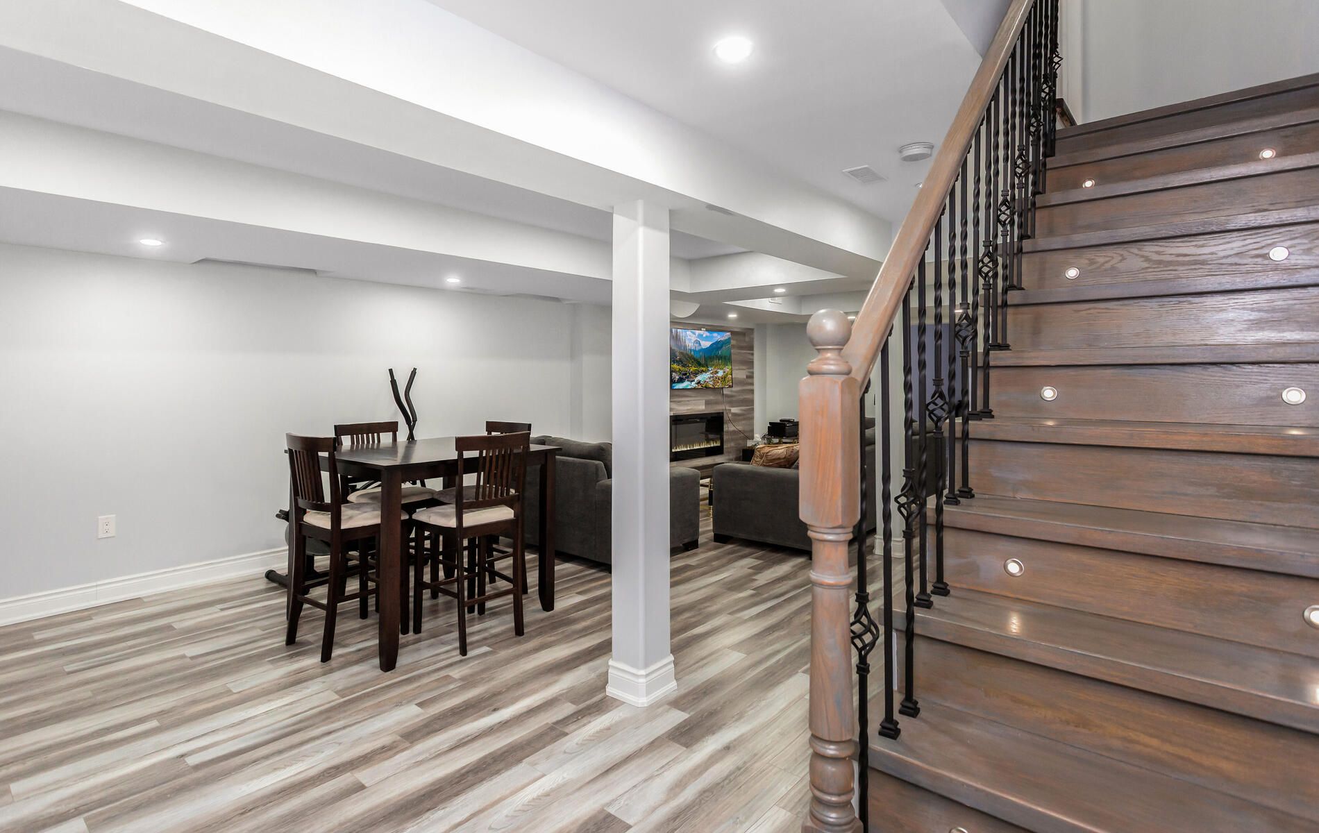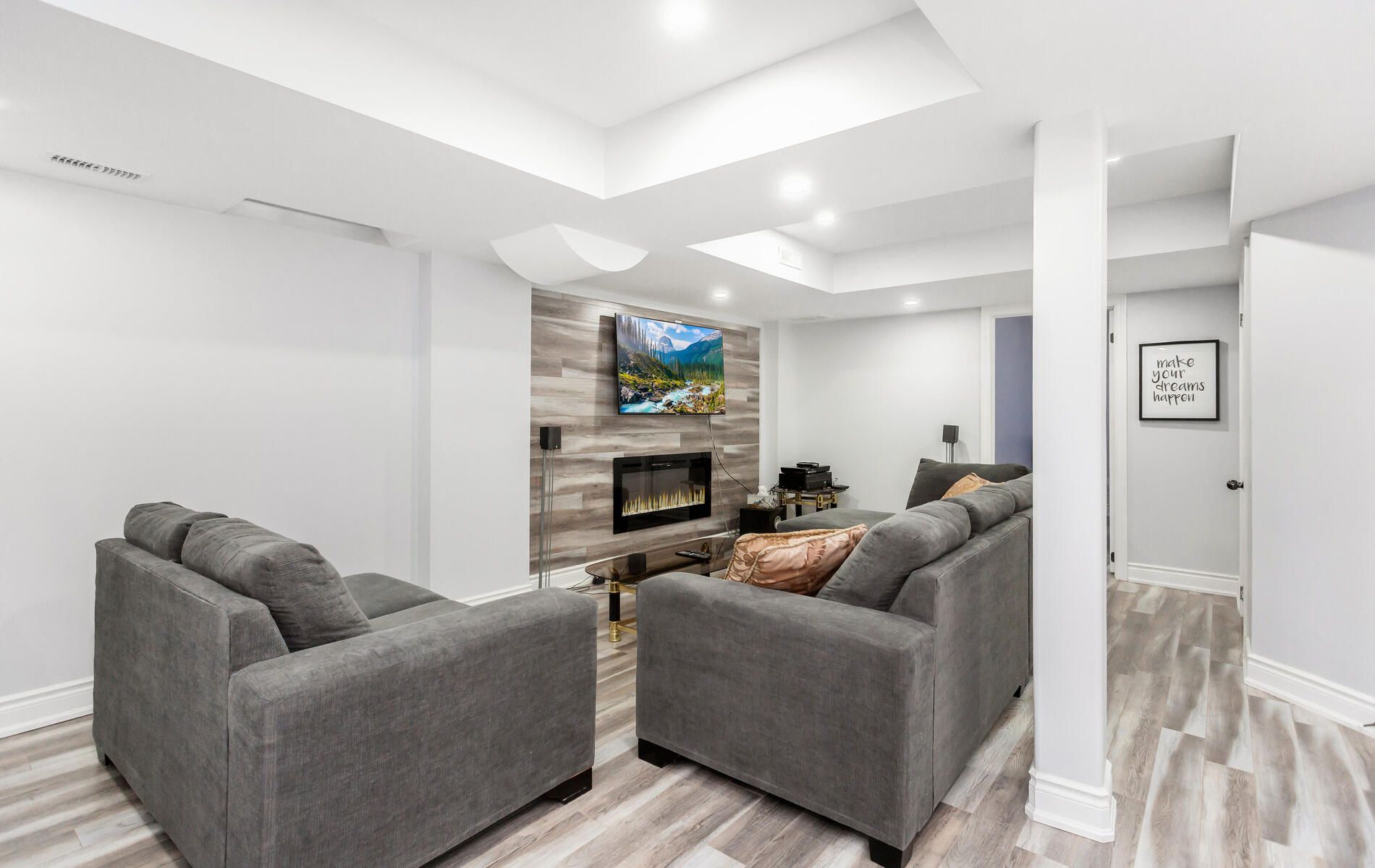 • Professionally finished basement featuring a large rec room and electric fireplace.