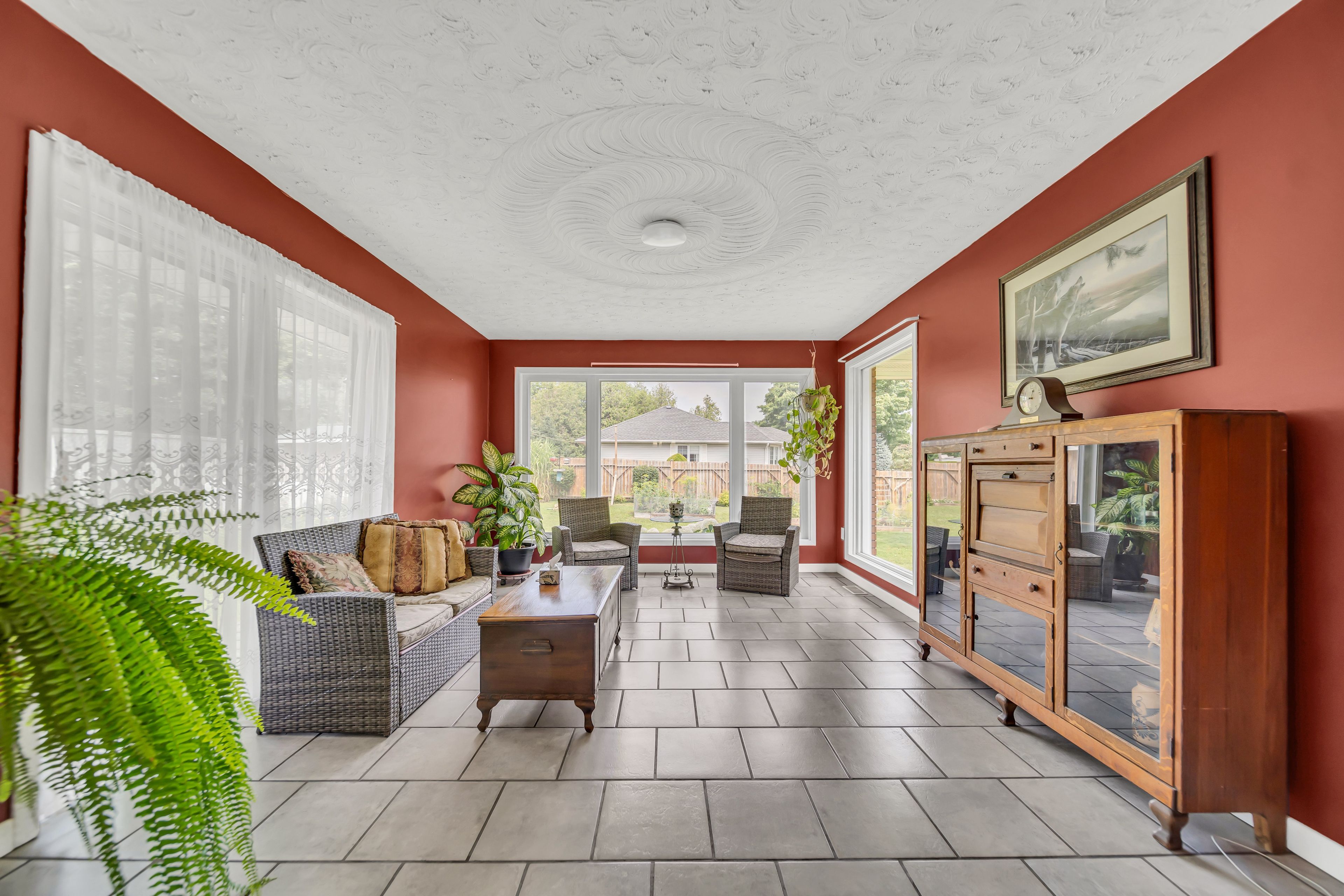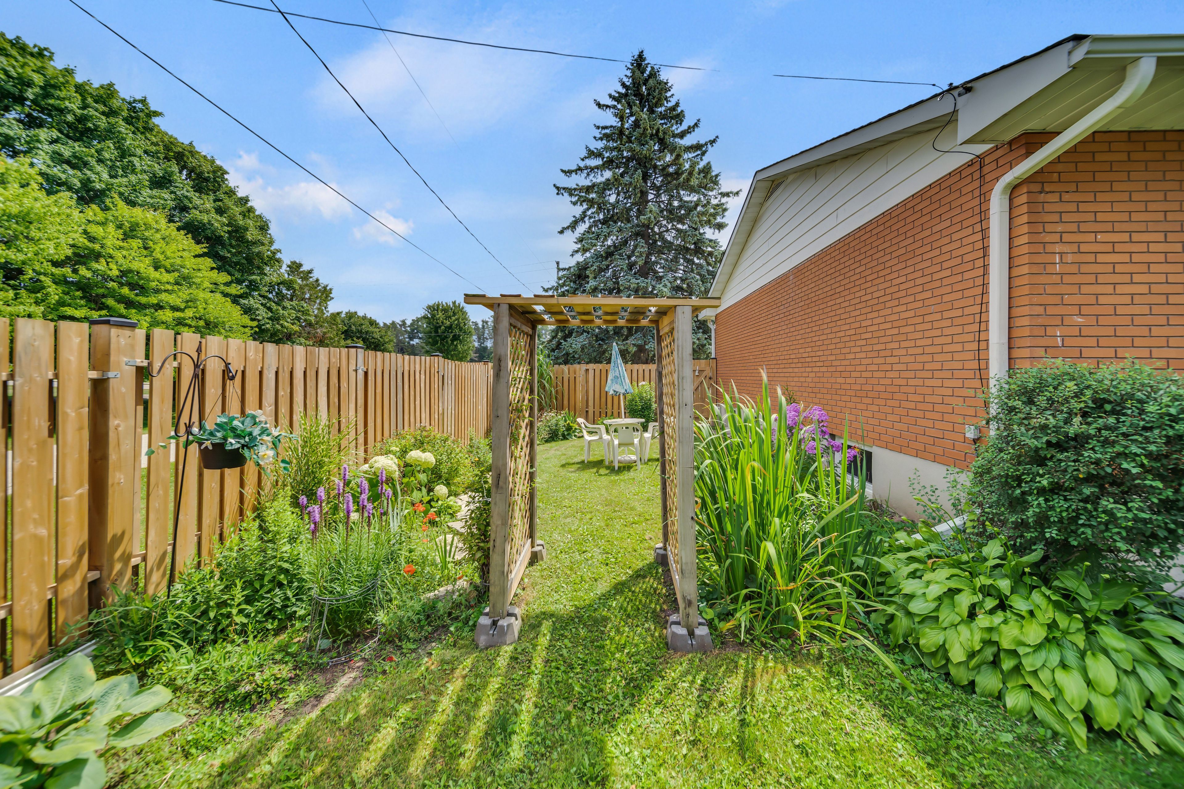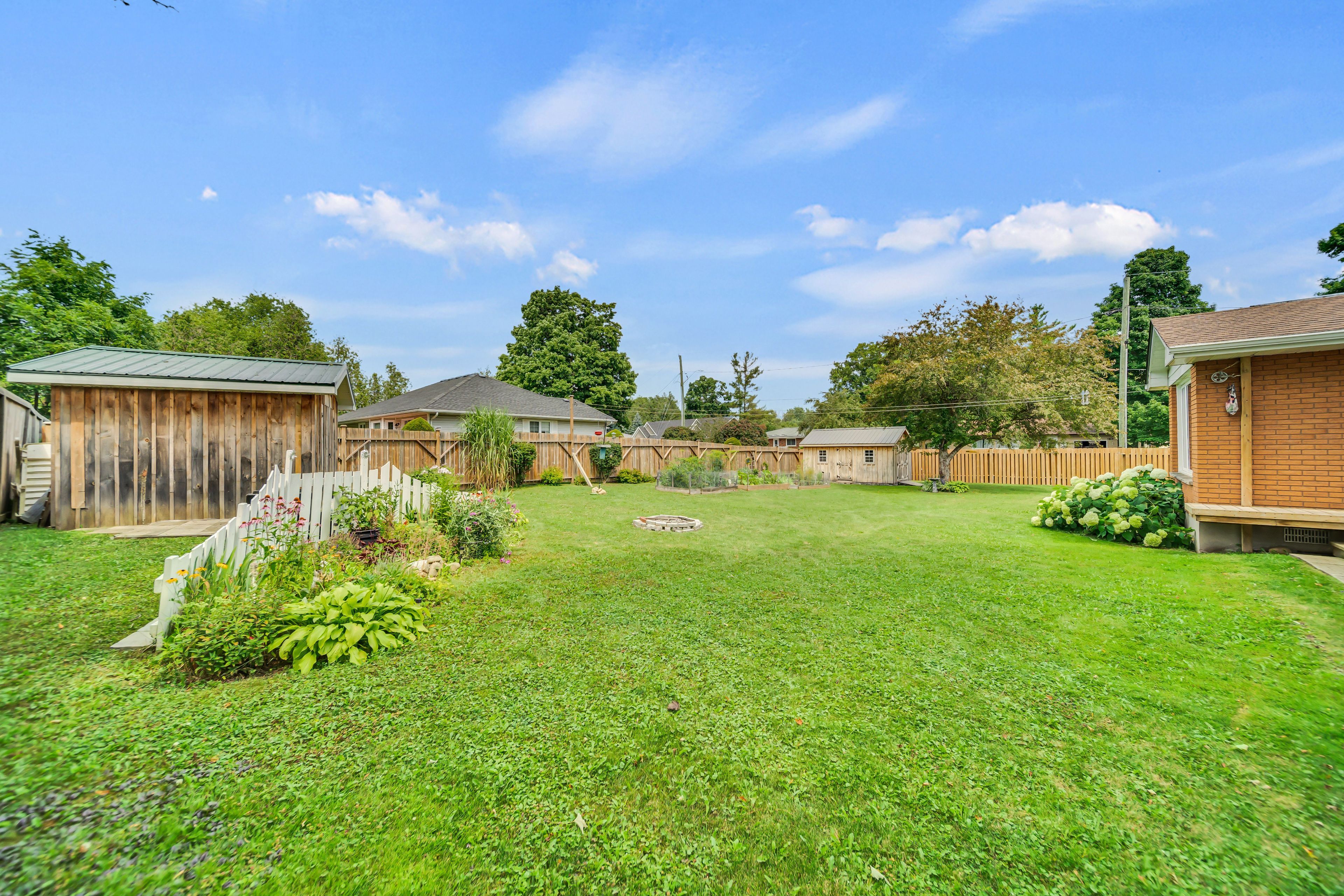 • Large fenced backyard with landscaped gardens and plenty of room for activities.