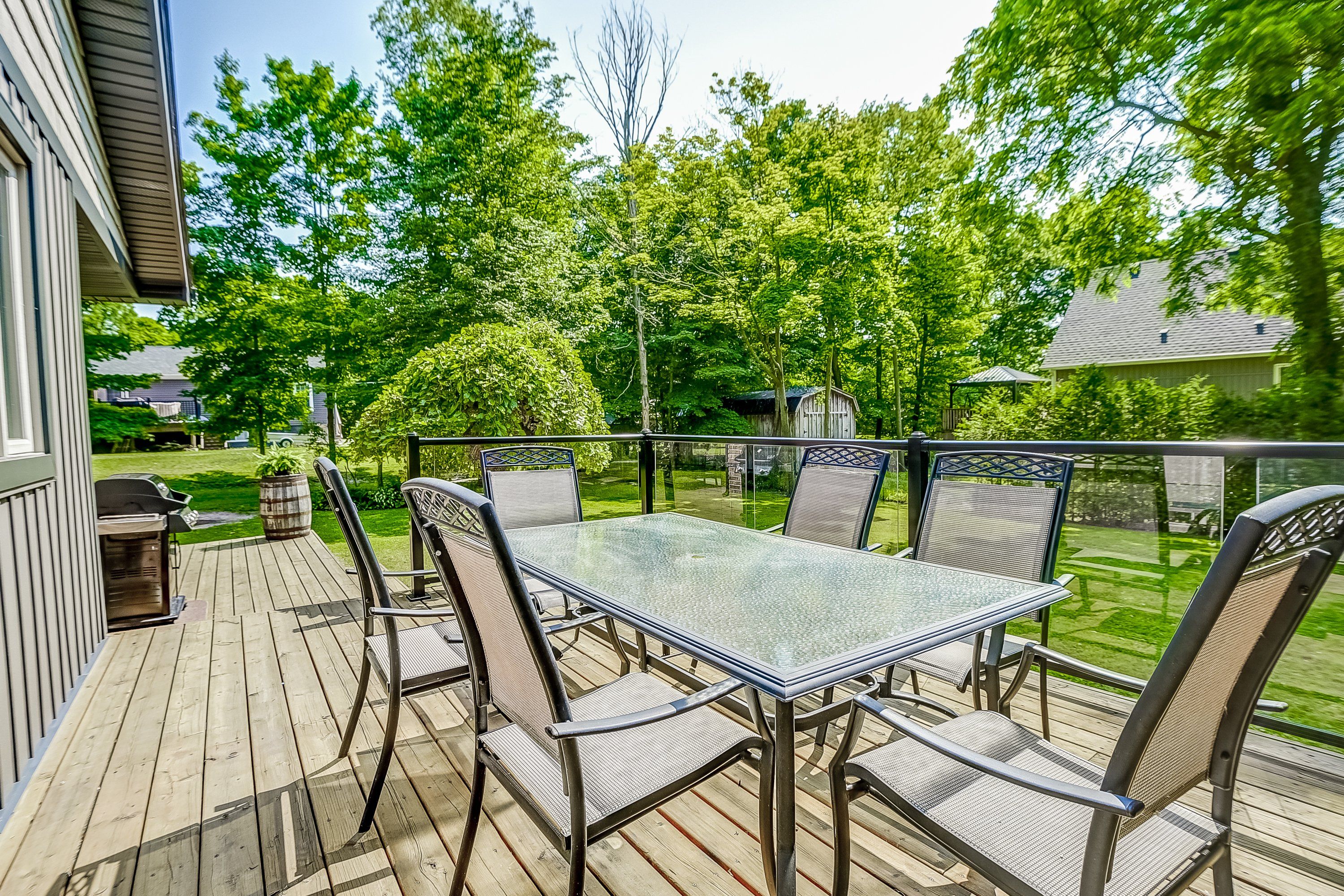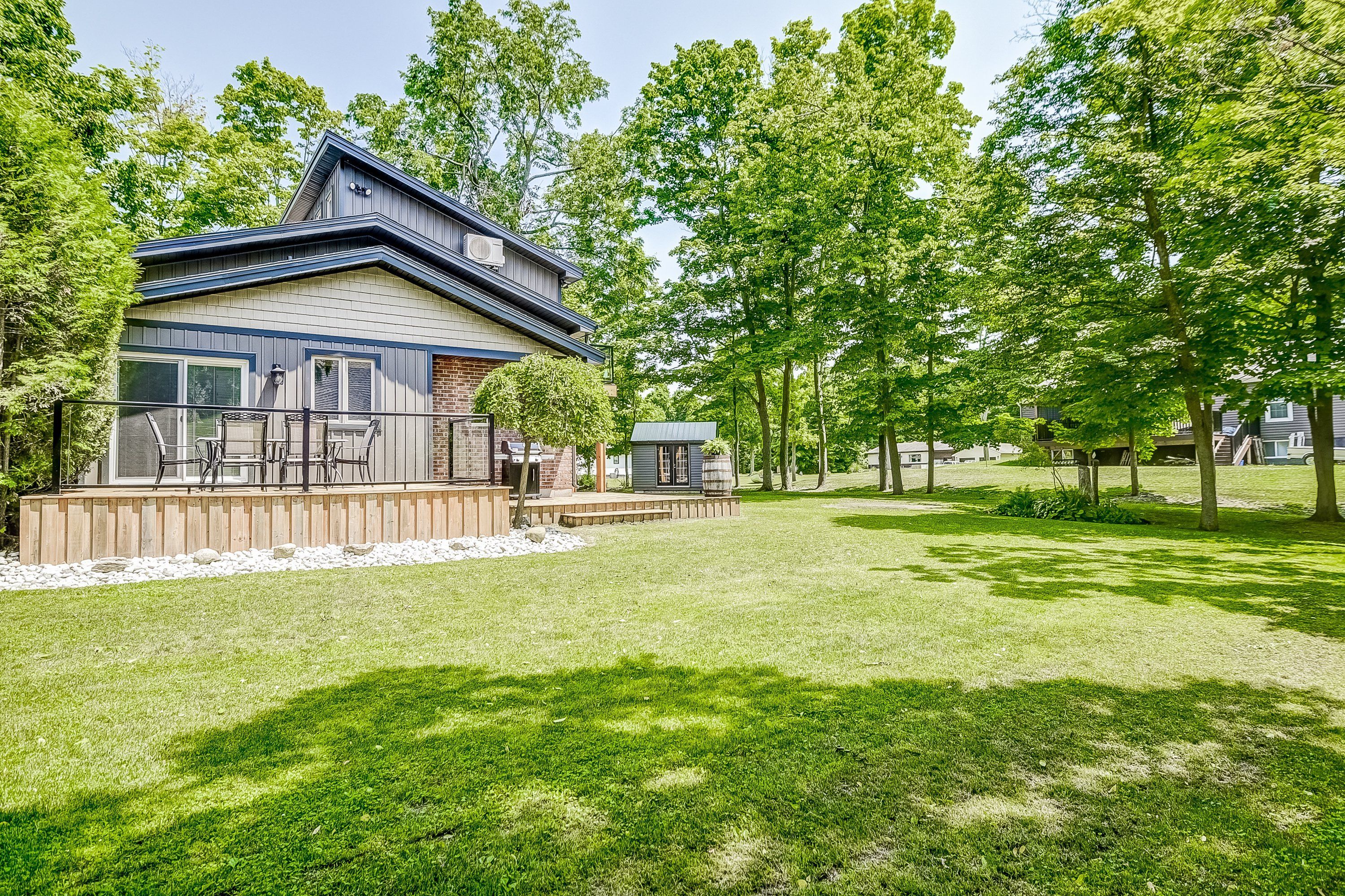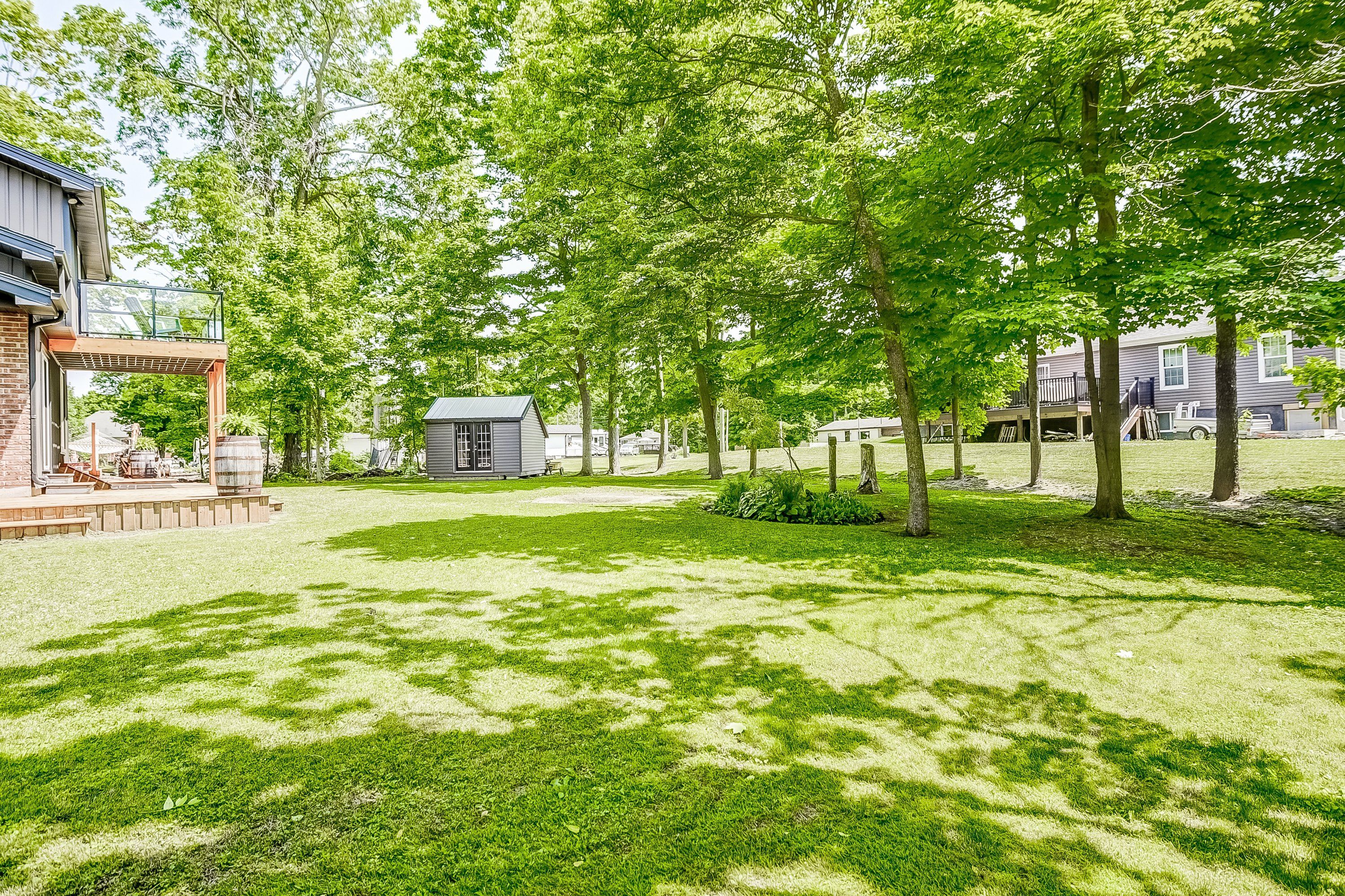 Discover your perfect escape in this stunning sherkston retreat with titled beach access. Nestled on a private 1/3-acre lot, this year-round getaway features multiple decks for entertaining and outdoor grilling. Inside, find three bedrooms, two baths, a spacious main floor with a cozy living room, new gas fireplace, and a generous dining area. The kitchen boasts stainless steel appliances and tumbled marble flooring, while the master bedroom offers two walk-in closets and a spa-like ensuite bath. This carpet-free home features elegant oak floors and staircase, with numerous upgrades including new shingles (2018), upgraded windows and doors, and a new gas furnace (2022). Additional amenities include a 1. 5-car garage with a new electric door and lift, a 200 amp electrical system, and ample parking for multiple vehicles, boats, rvs, or jet skis on poured concrete. Enjoy luxury, privacy, and modern conveniences in this exceptional property.
