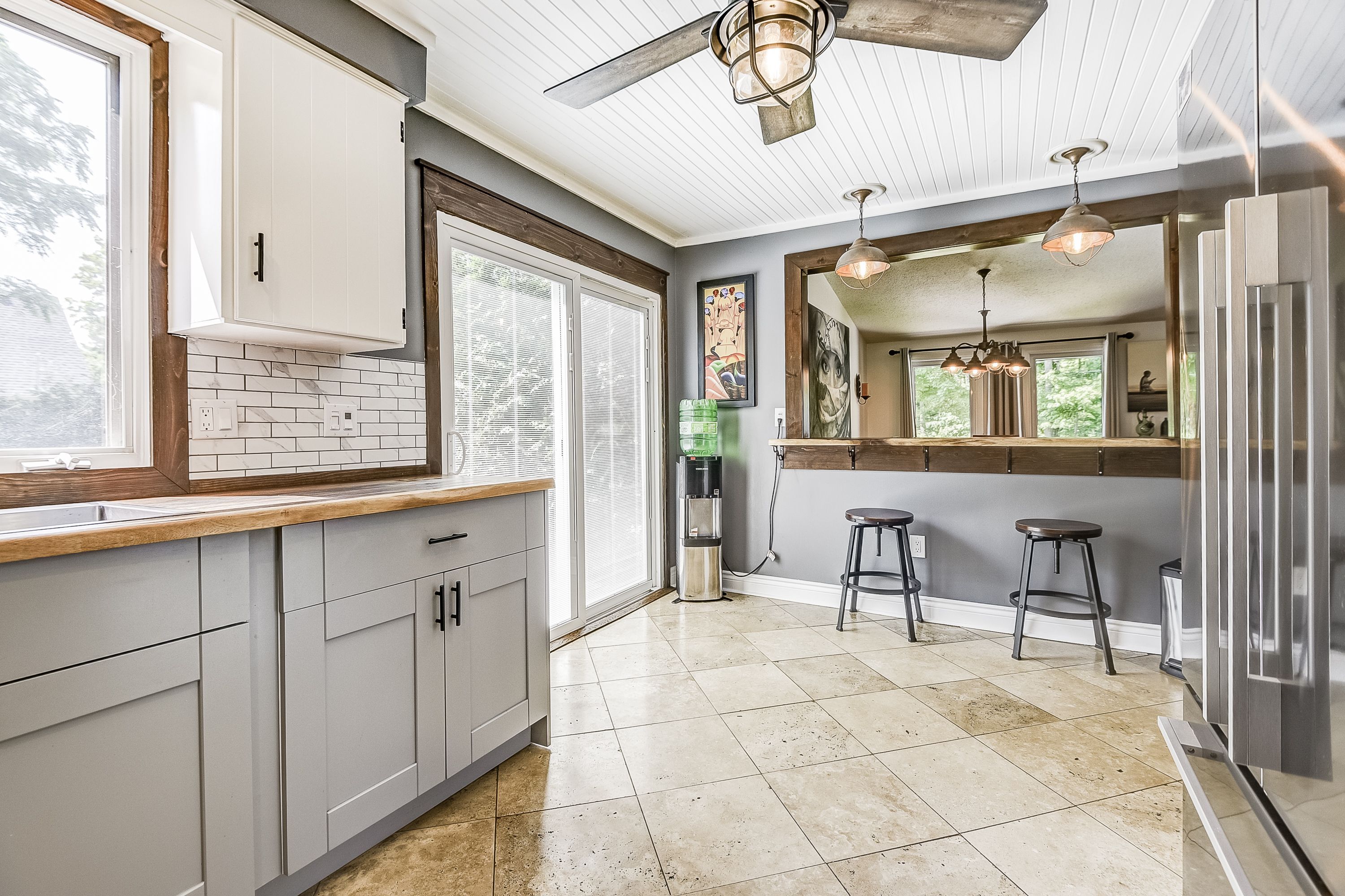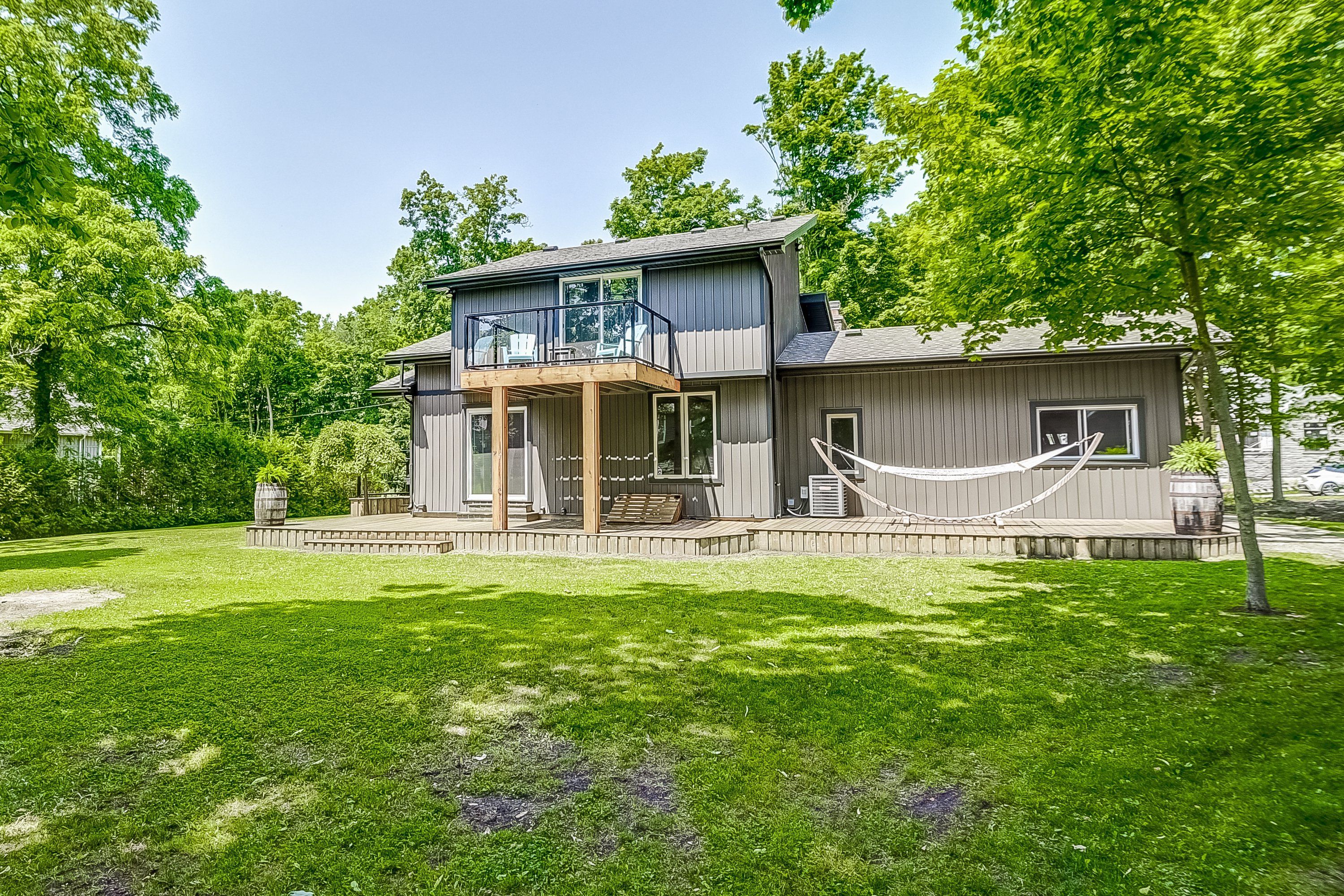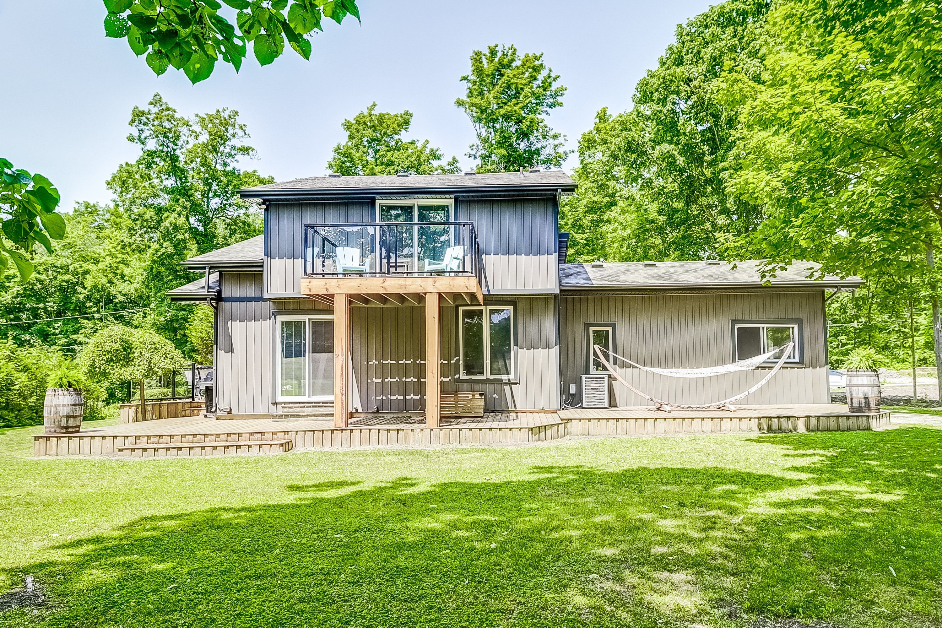 Discover your perfect escape in this stunning sherkston retreat with titled beach access. Nestled on a private 1/3-acre lot, this year-round getaway features multiple decks for entertaining and outdoor grilling. Inside, find three bedrooms, two baths, a spacious main floor with a cozy living room, new gas fireplace, and a generous dining area. The kitchen boasts stainless steel appliances and tumbled marble flooring, while the master bedroom offers two walk-in closets and a spa-like ensuite bath. This carpet-free home features elegant oak floors and staircase, with numerous upgrades including new shingles (2018), upgraded windows and doors, and a new gas furnace (2022). Additional amenities include a 1. 5-car garage with a new electric door and lift, a 200 amp electrical system, and ample parking for multiple vehicles, boats, rvs, or jet skis on poured concrete. Enjoy luxury, privacy, and modern conveniences in this exceptional property.