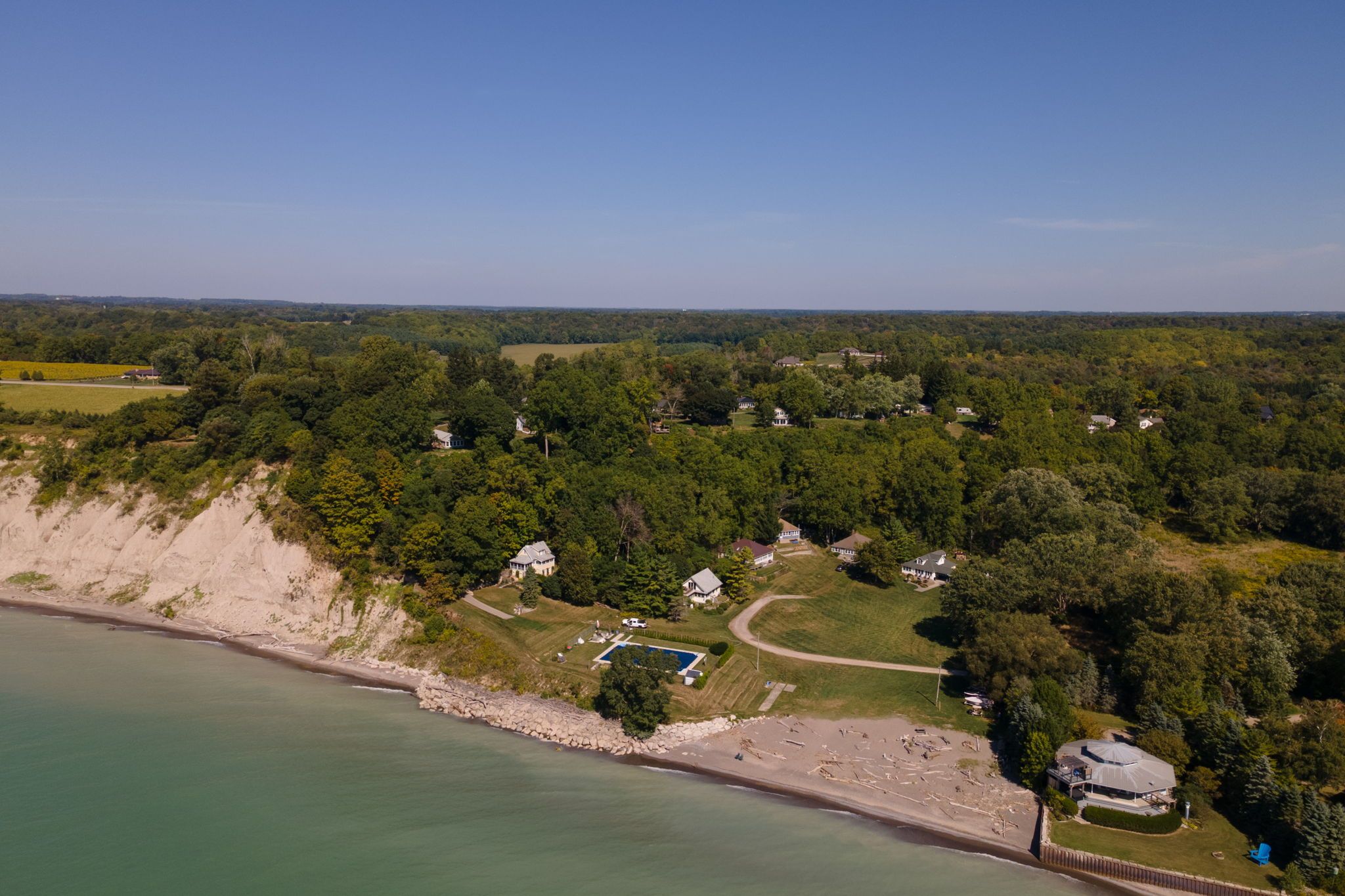Welcome to cottage country at this lakeside 3 bedroom, 1 bathroom property, tucked away in the private wingate lodge community in port bruce. Over 35 acres of shared picturesque land with breathtaking views overlooking lake erie. Enjoy the beautiful, large, swimming pool (new liner 2025) nestled beside the lake and exclusive access to the sandy beach, which is perfect for summer swims, late-night bonfires, or stargazing. All grounds are very well maintained. The cottage features a timeless wood exterior with a durable metal roof. The open concept living room and kitchen create a bright and inviting space. Each bedroom has updated windows and its own ceiling fan for comfort. Washer and dryer included. 100-amp breaker panel. Well built storage shed. Unwind by your fire pit or on the newer front porch, ideal for bbqs or simply soaking in the peace and quiet. $546/monthly maintenance fee includes all property taxes, municipal water, recreational hall, playground, basketball court, grounds maintenance/grass cutting, a year round on-site caretaker and exclusive access to a scenic, private pool and beach.