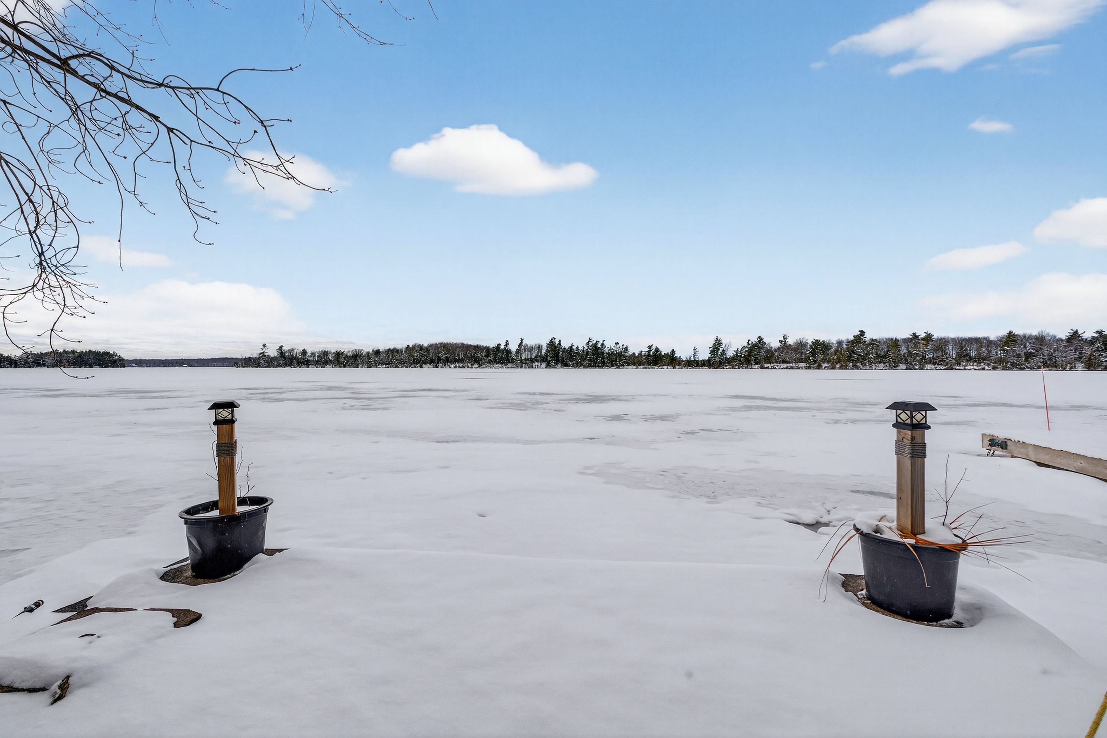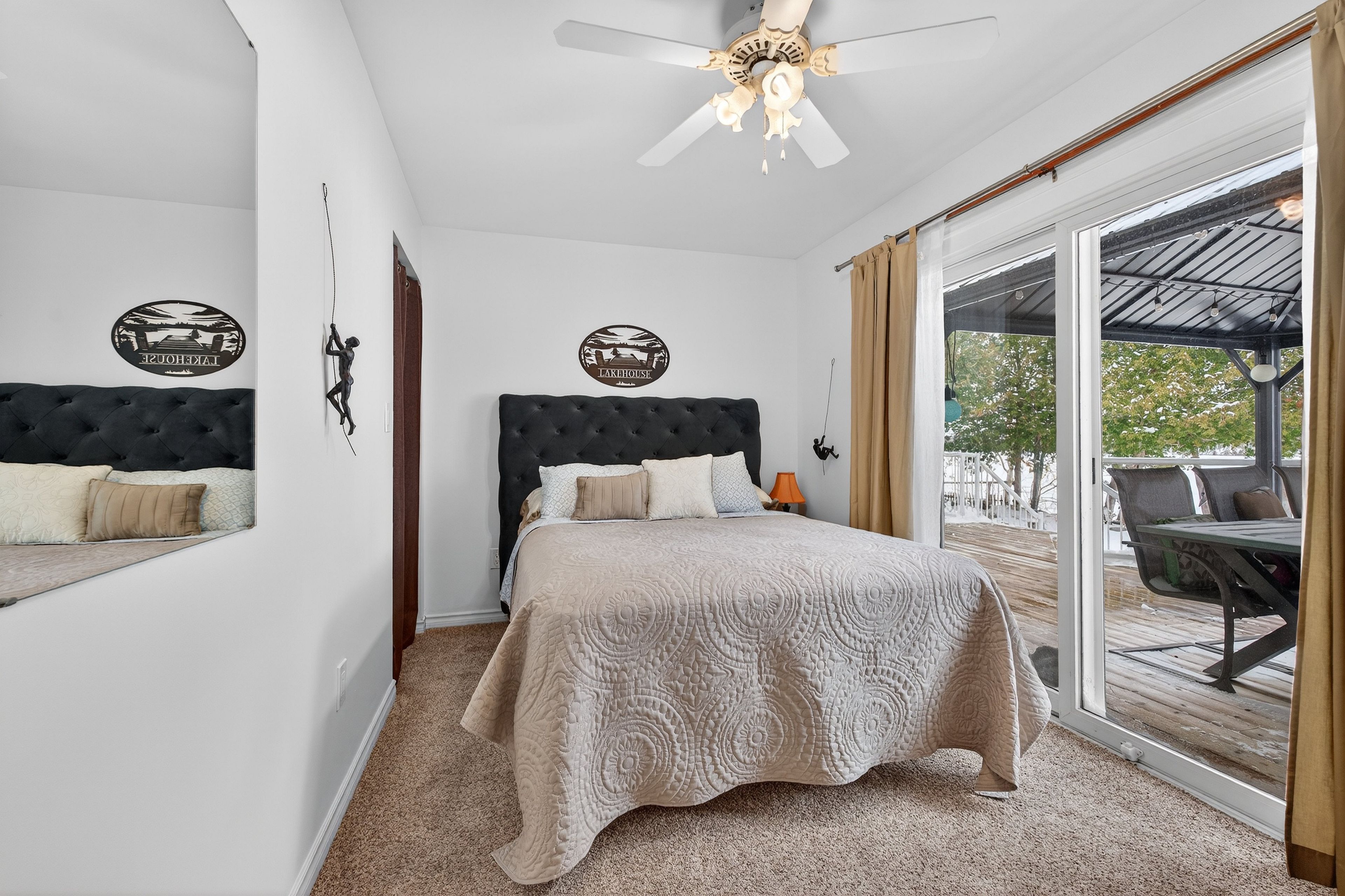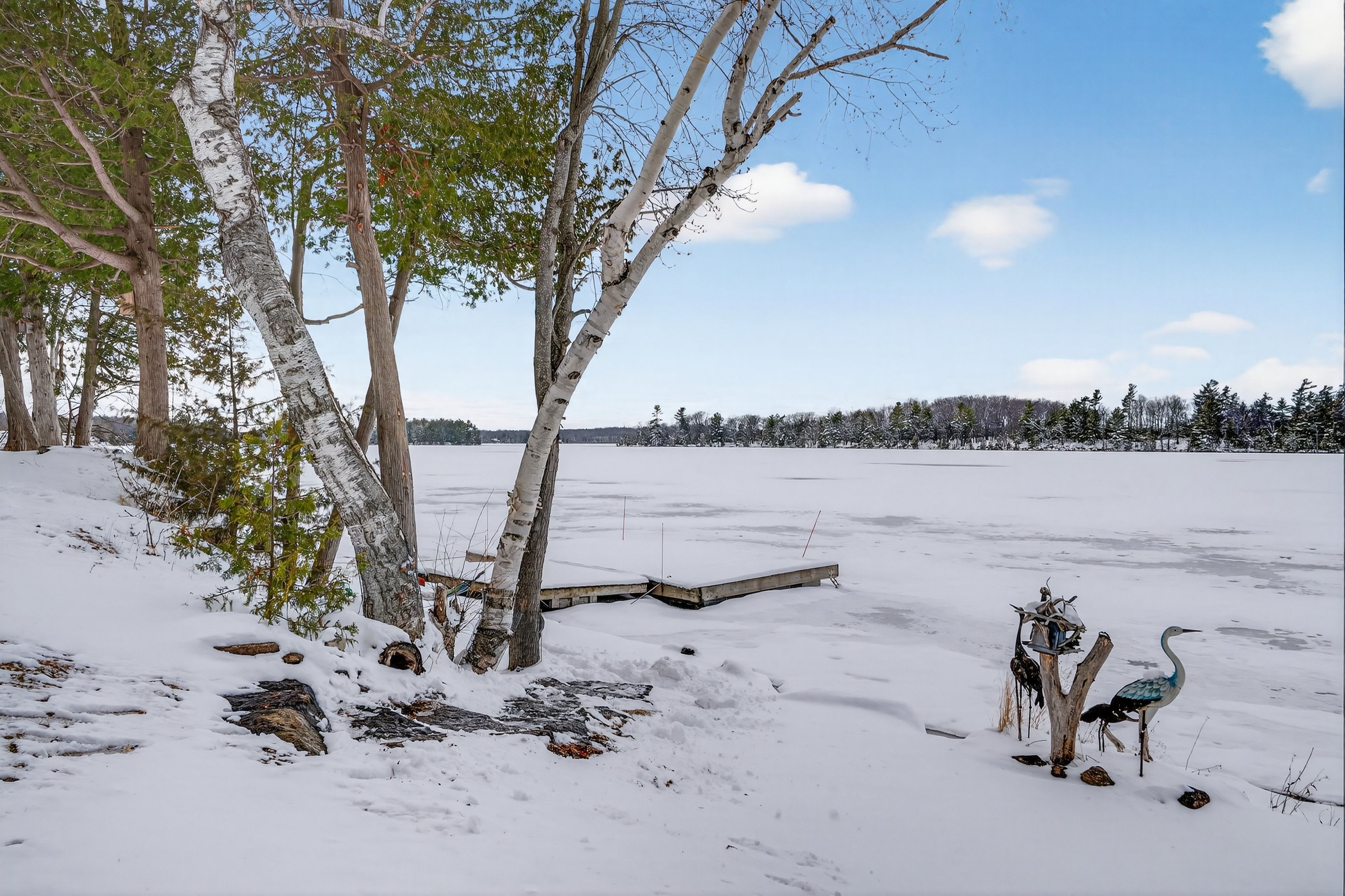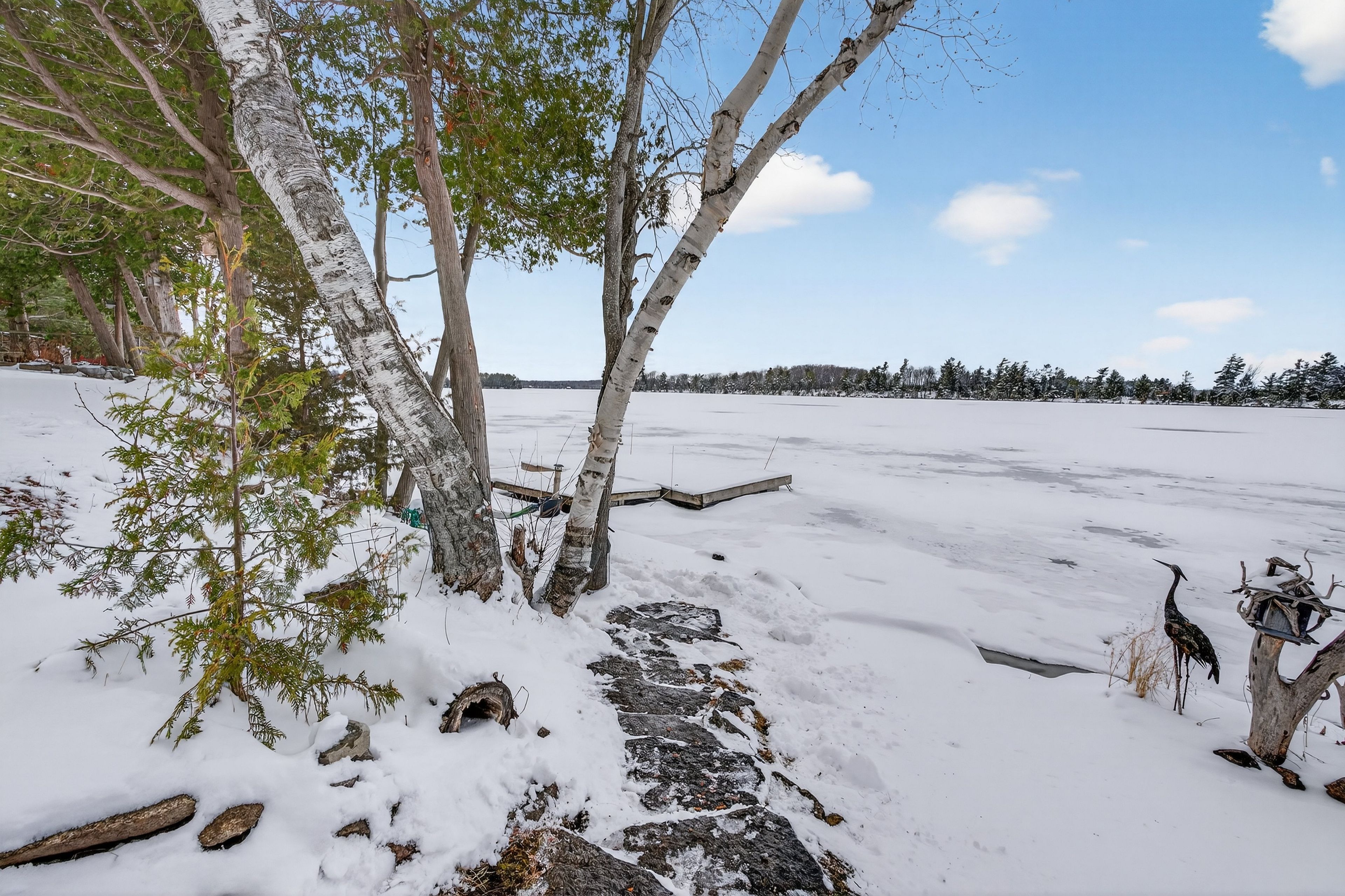 • Outdoor space includes a concrete dock and easy lake access for activities.