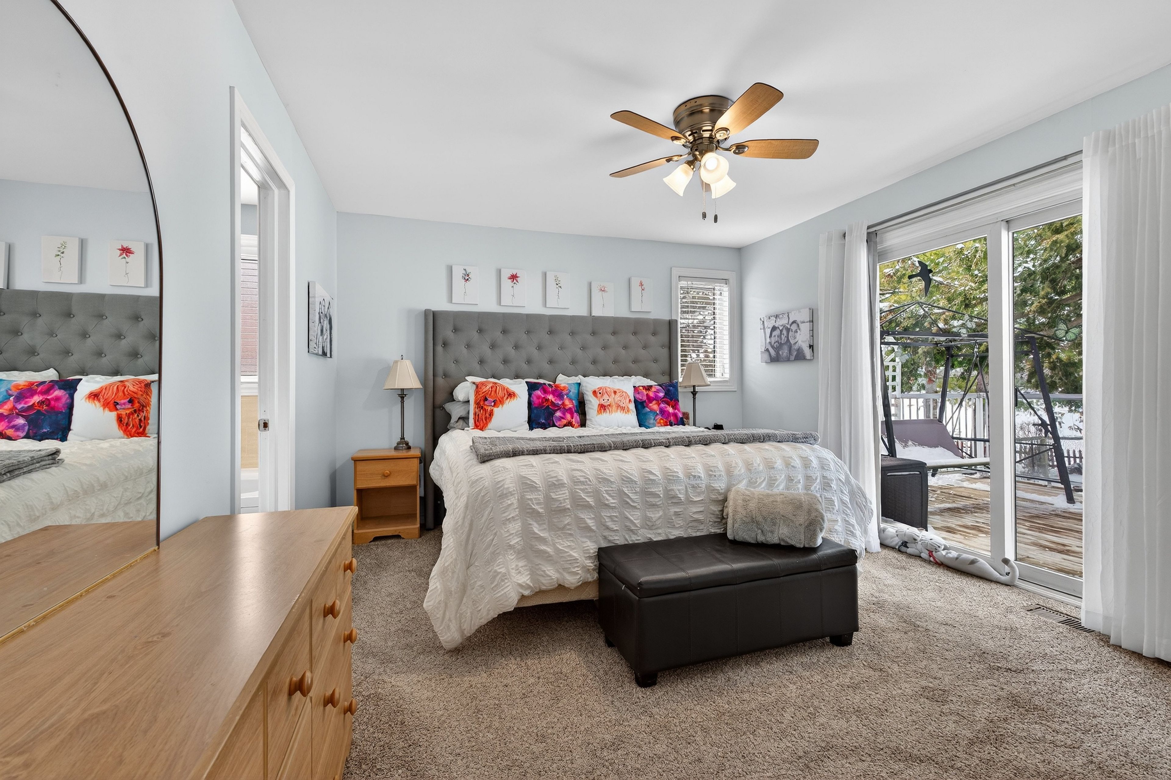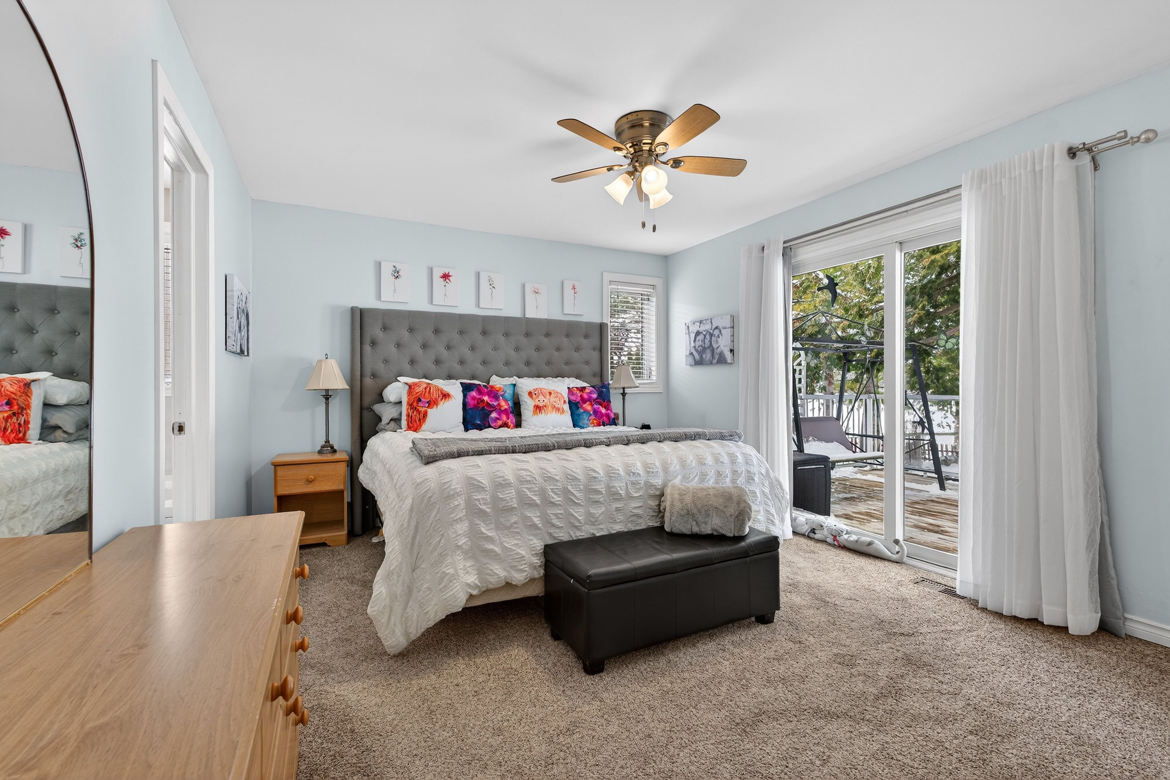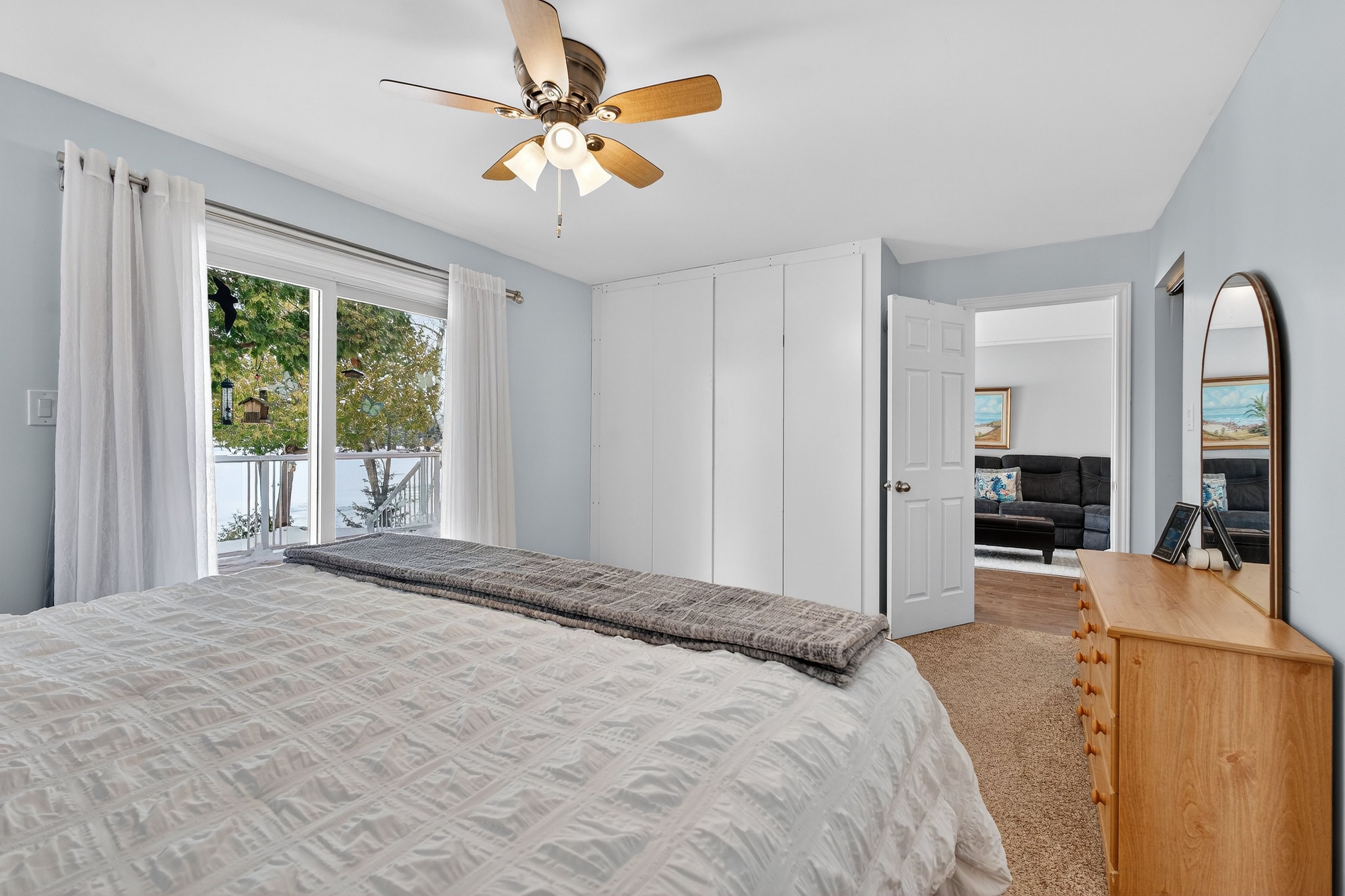 • Bright open-concept main level with stunning lake views and hardwood flooring.