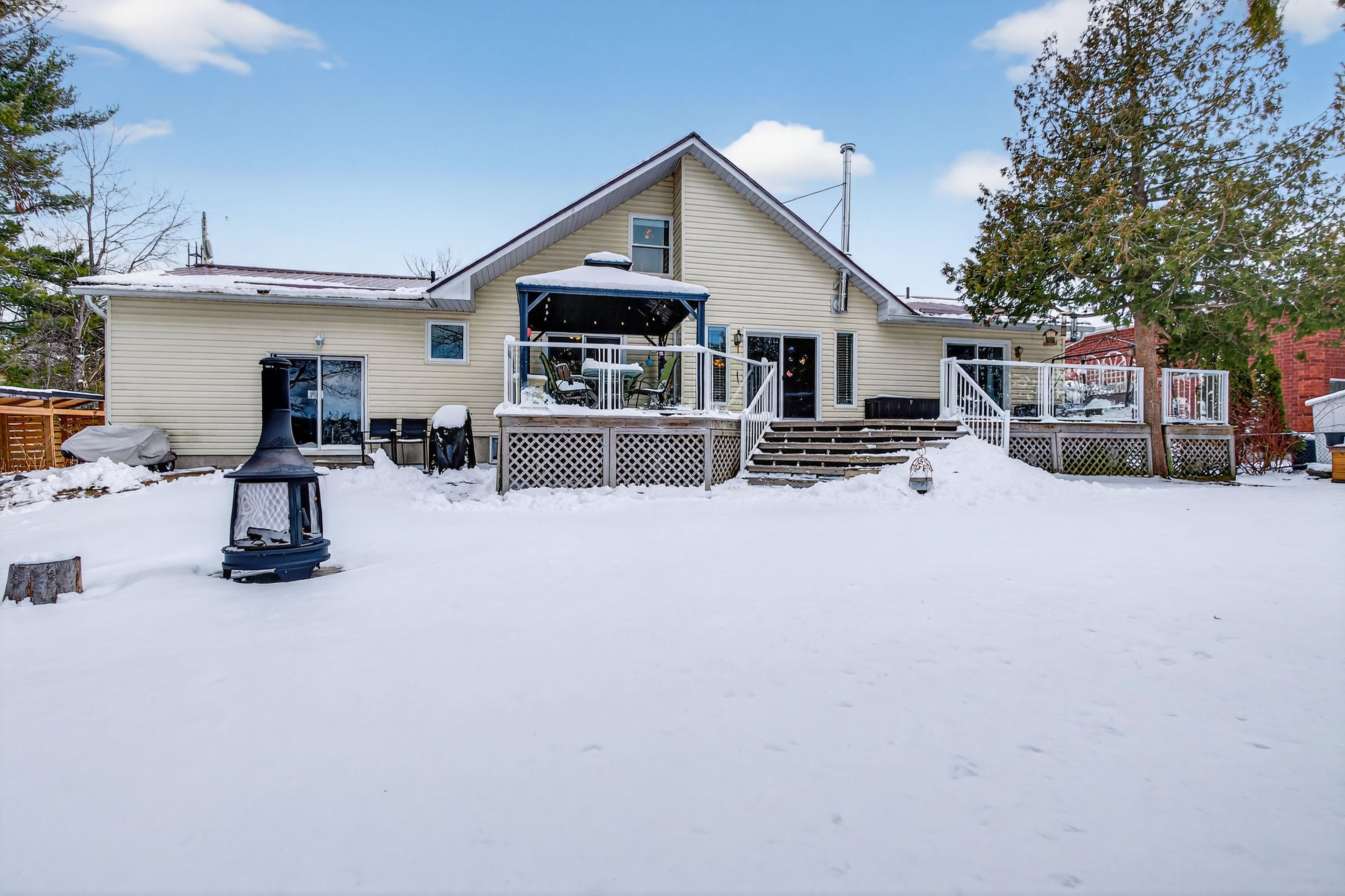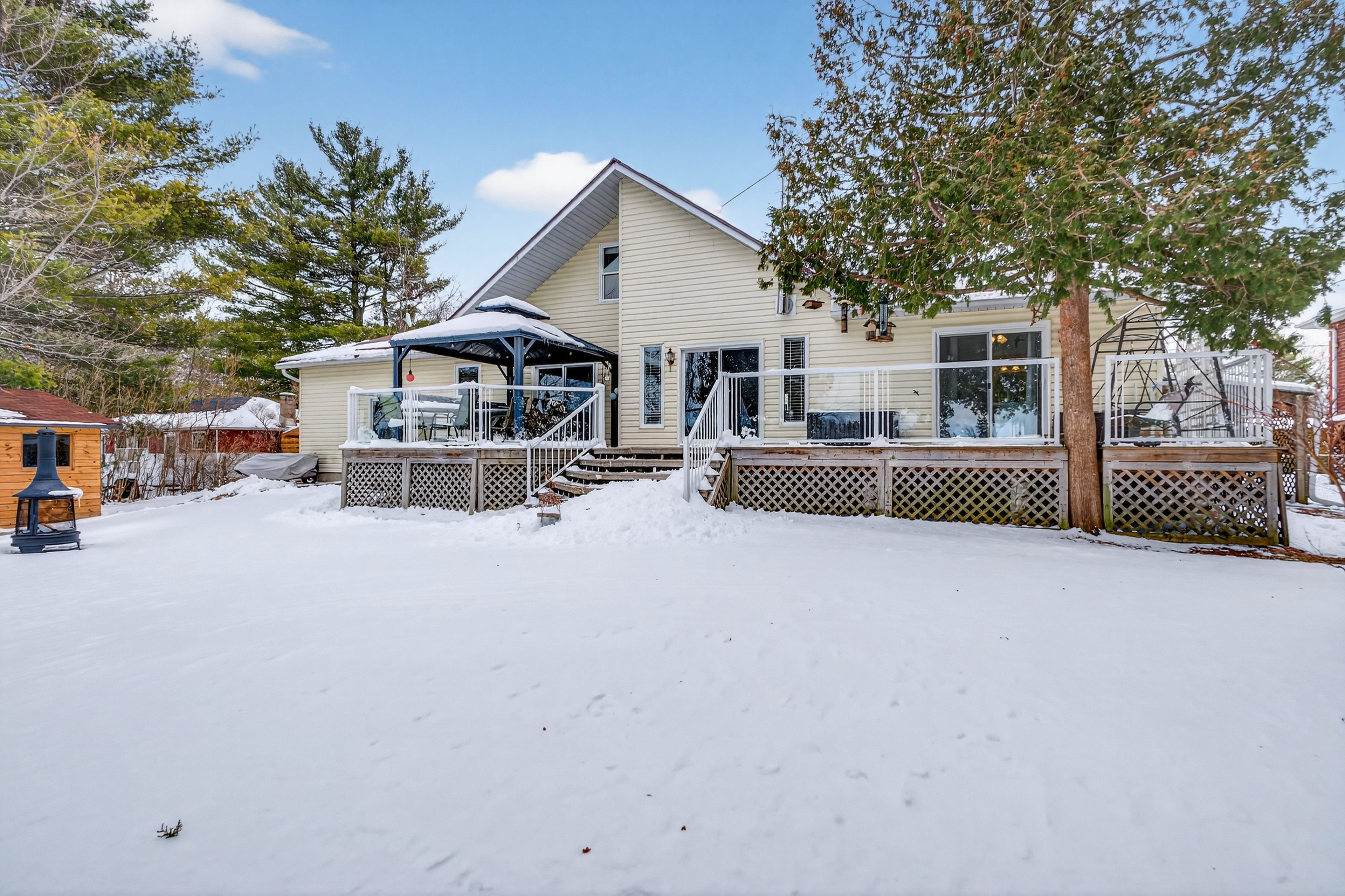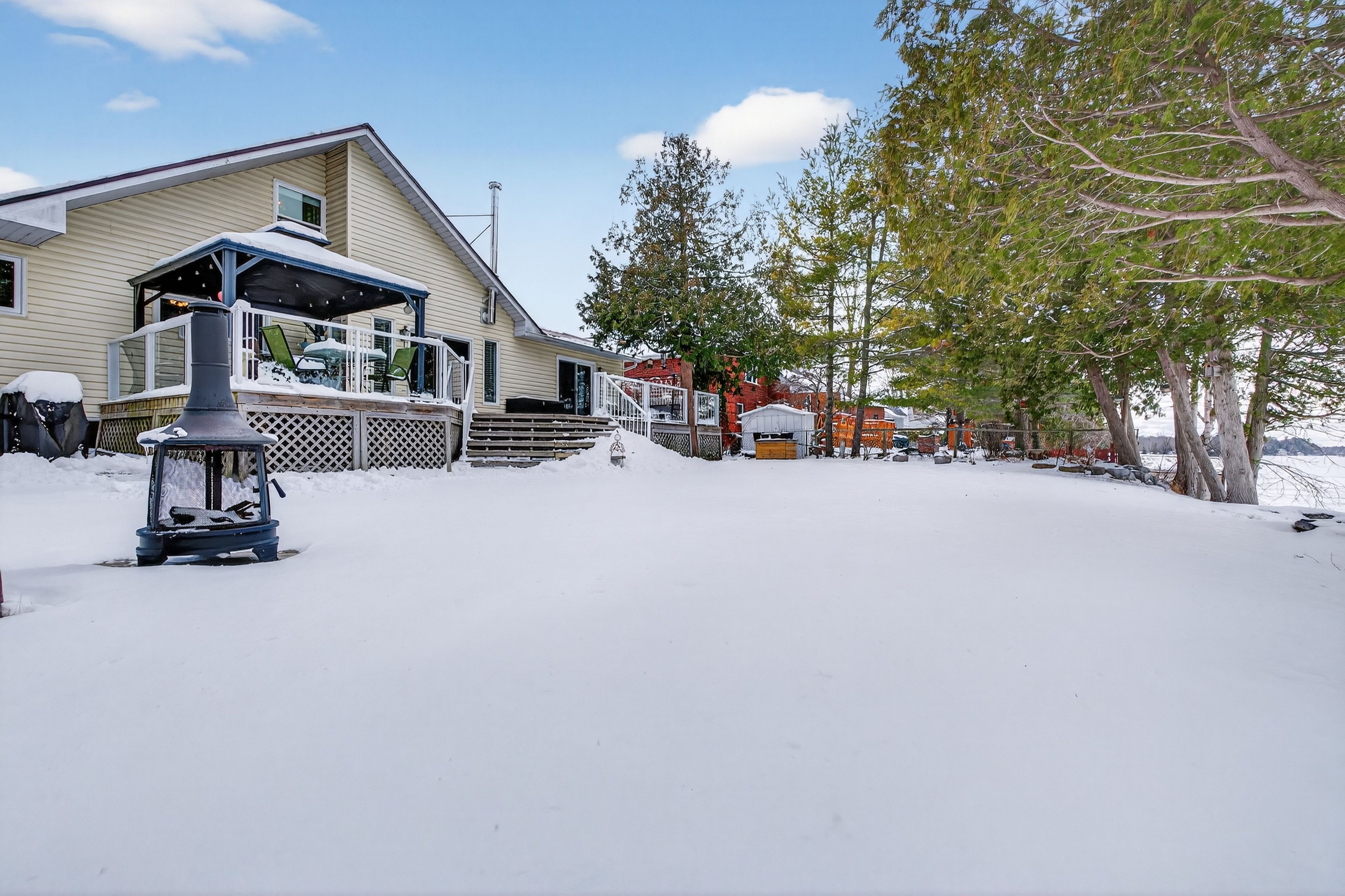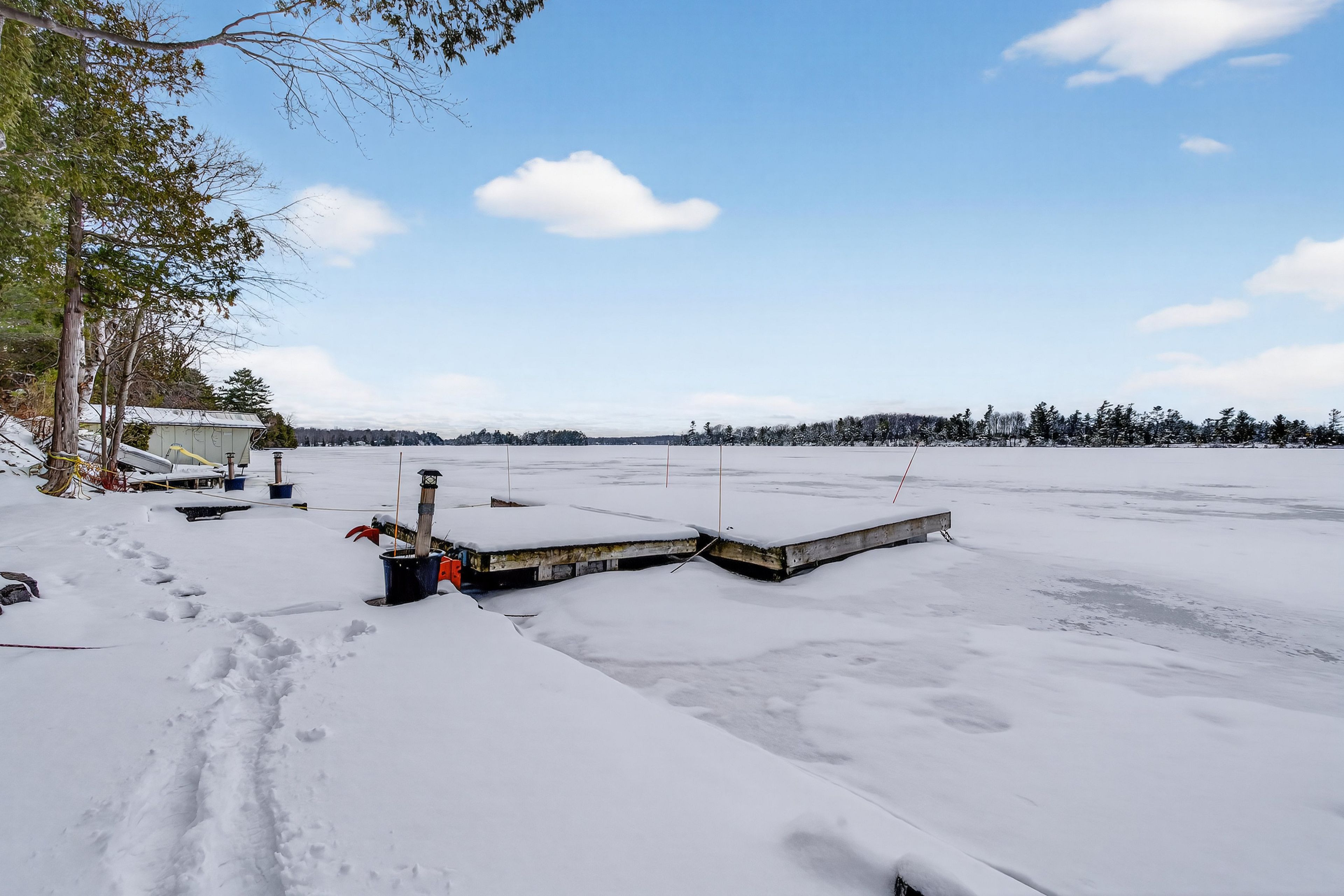 Welcome to this beautifully renovated four-season home on the highly sought-after shores of loughborough lake, an exceptional offering designed for effortless comfort, entertaining, and true waterfront living. This spacious and thoughtfully designed property features three bedrooms, including a serene primary suite complete with a private ensuite and walk-in closet. Two addtional bedrooms provide generous accommodations for family or guests, while a versatile loft above the garage offers additional space for sleeping, recreation, or a private retreat. The main level showcases a bright, open-concept layout enhanced by rich hardwood flooring and expansive lake views. A cozy wood stove anchors the living room, creating a warm and inviting atomosphere year-round. The custom kitchen, beautifully rennovated by clearview cabinetry, is both stylish and functional -- featuring granite countertops, a large centre island ideal for gathering, and the rare conenience of both a range and a wall mount oven for effortless entertaining. Outdoors, the meticulously maintained grounds offering a seamless connection to the waterfront. Enjoy a substainstial concreate dock paired with a floating dock system, along with a hard shoreline providing easy and accessible entry to the lake -- perfect for swiming, boating and relaxing lakeside. Additional features include a septic system replaced approximately 10 years ago, a drilled well, an attached one-and-a-half car garage, and two exterior sheds providing ample storage for all your recreational needs. A rare oppourtunity to experience refinded lakeside living -- this exceptional property is ready to be enjoyed in every season.