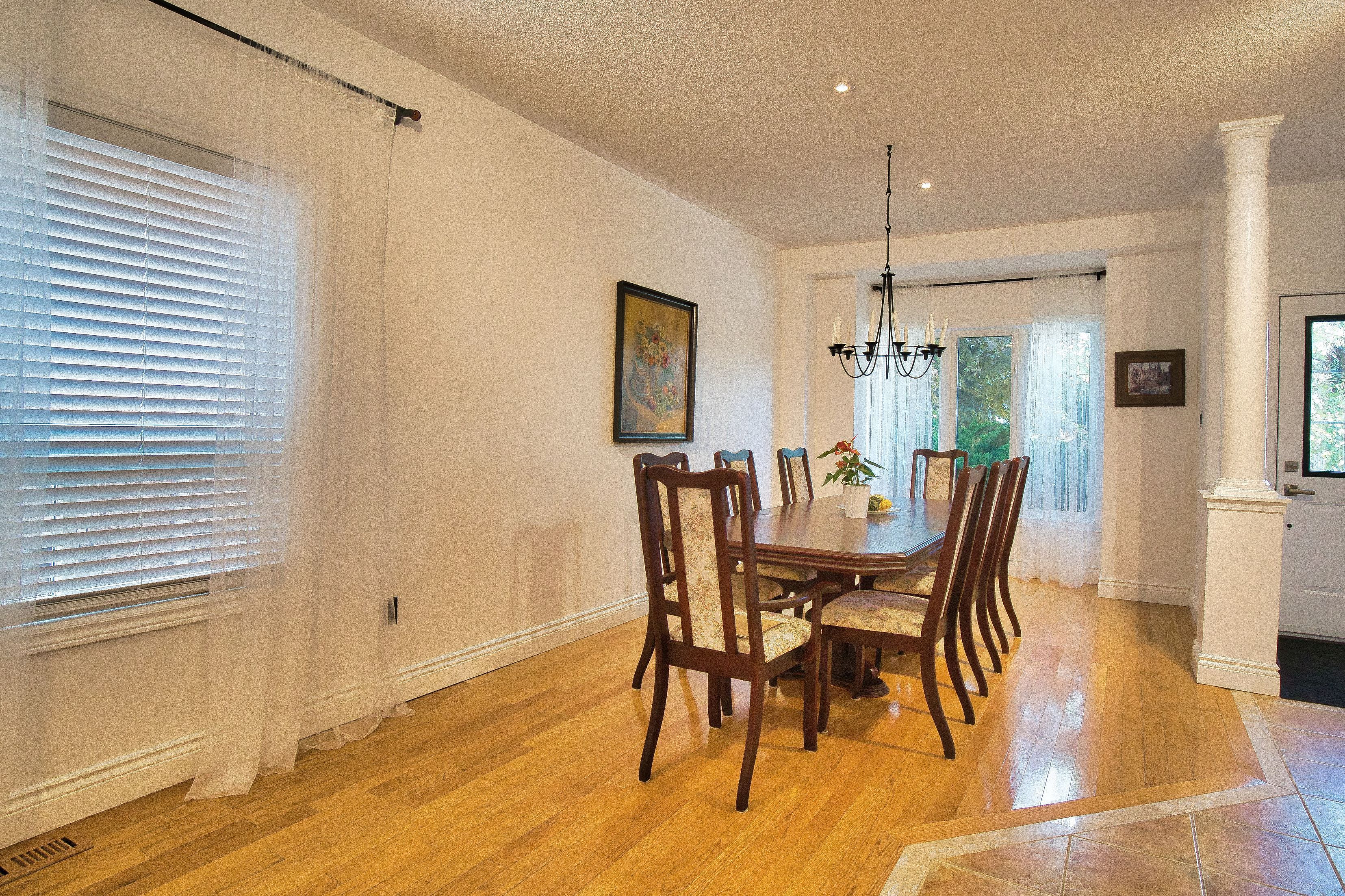 Practically 2,500 sq. Ft one of the best-priced homes in its category in milton! Nestled in one of miltons most sought-after neighbourhoods, this spotless, all-brick family home stands out for its remarkable value and exceptional care. Lovingly maintained by its original owners, the home radiates pride of ownership and is truly move-in ready. Offering nearly 2,500 square feet of bright, well-designed living space, its one of the lowest-priced homes in this category in miltona rare opportunity for discerning buyers seeking both quality and affordability. Located on a quiet, family-friendly street with easy access to hwy 401, top-rated schools, and the milton district hospital, this home also offers unbeatable convenience. Major shopping centres, restaurants, and the community recreation centre are just minutes away. Inside, youll find nine-foot ceilings, a welcoming open-concept kitchen with a breakfast area, and a sun-filled family room with a walk-out to a private, tree-lined backyard. Elegant living and dining areas feature pot lights, decorative columns, and warm hardwood floors that continue into the master suite. The upper level offers four spacious bedrooms, including a luxurious primary suite with a walk-in closet and spa-inspired ensuite (soaker tub + separate shower). Recent updates include a newer roof, high-quality vinyl windows, an owned hot water tank, and newer garage doors. The oversized interlock driveway comfortably fits four cars, and the massive basement offers endless potential it can easily accommodate a separate entrance for under $3,000, making it ideal for future expansion or an in-law suite. This home combines modern comfort, thoughtful upgrades, and an unbeatable location all in a vibrant, well-connected community. With flexible closing options and a rare private lot, this property is not to be missed.(note: images are presented in pairs artists concept and actual views.)