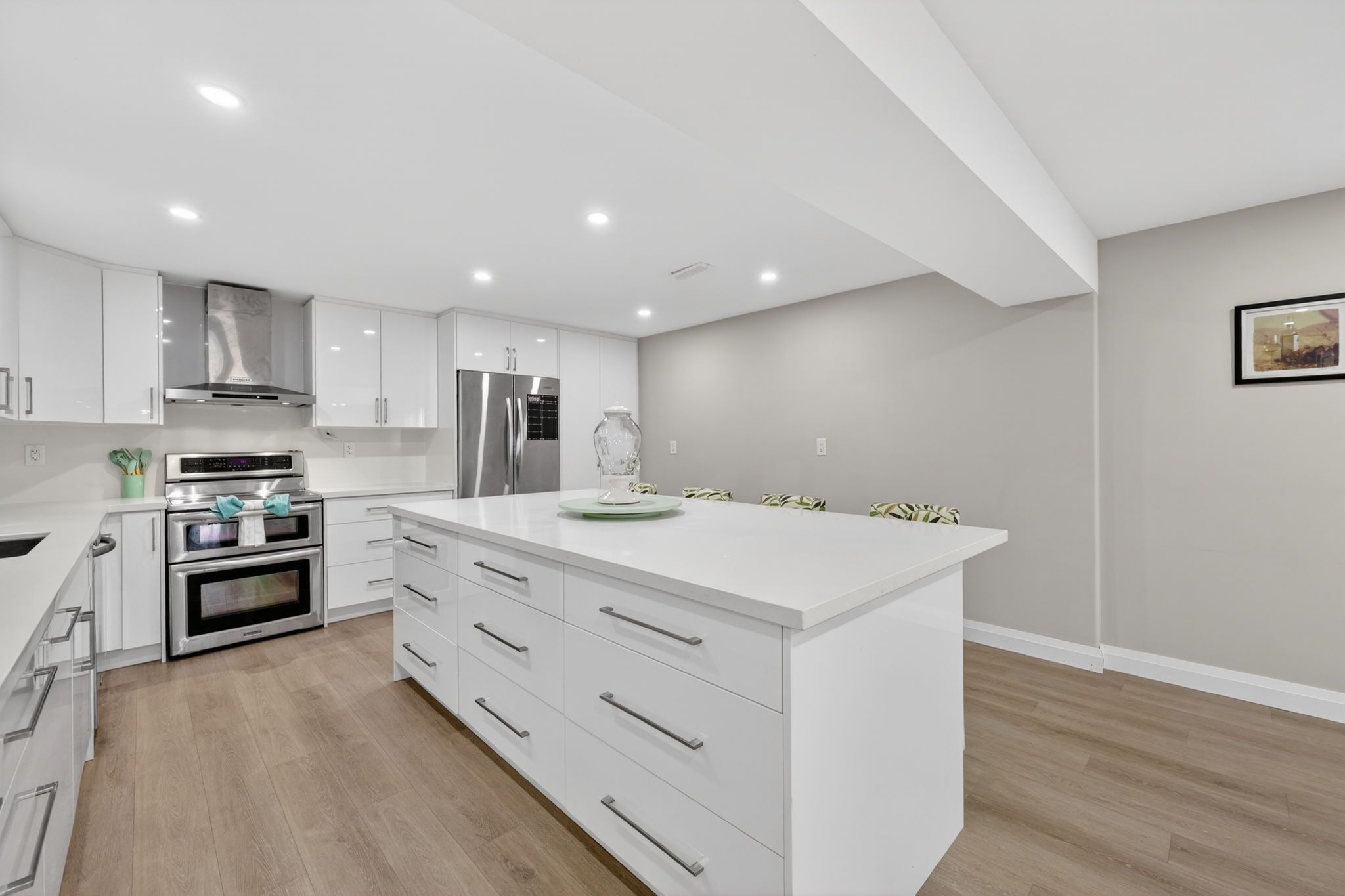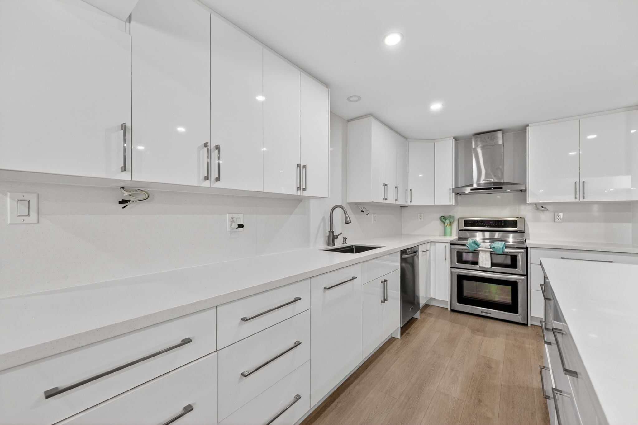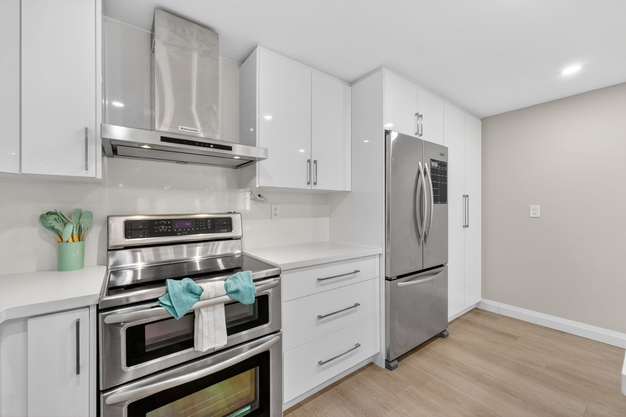 • Updated kitchen with quartz countertops flowing into the living area.