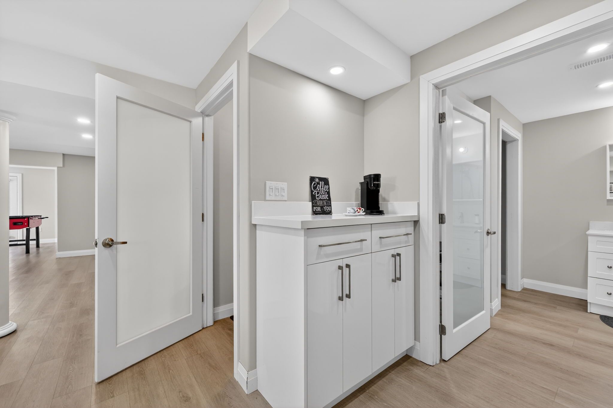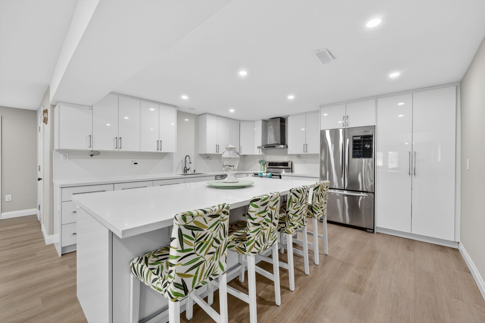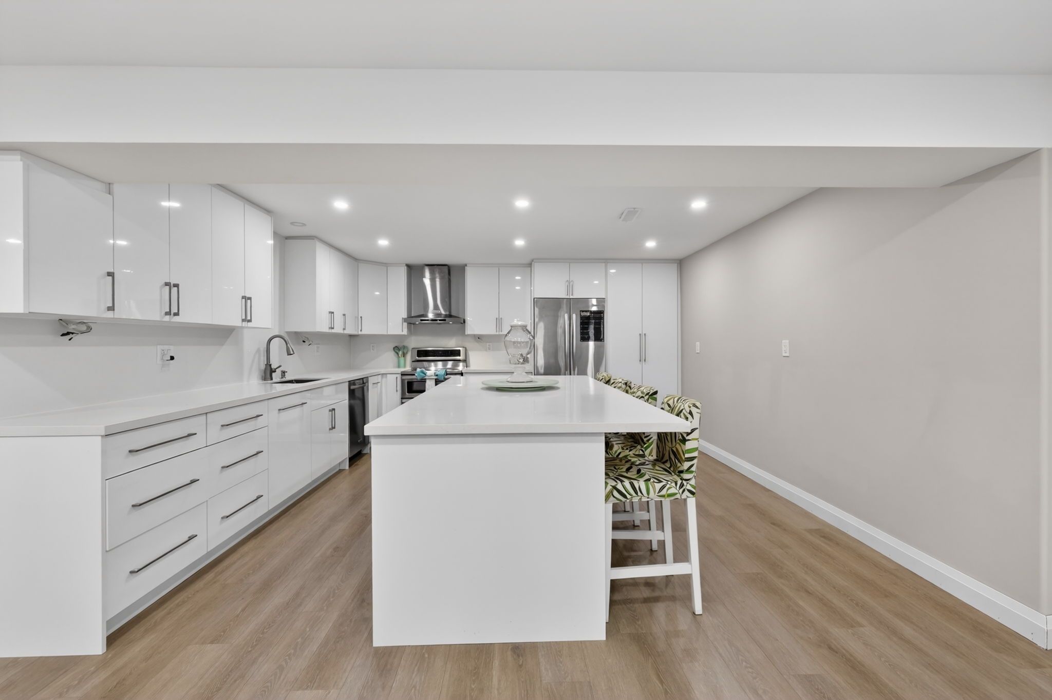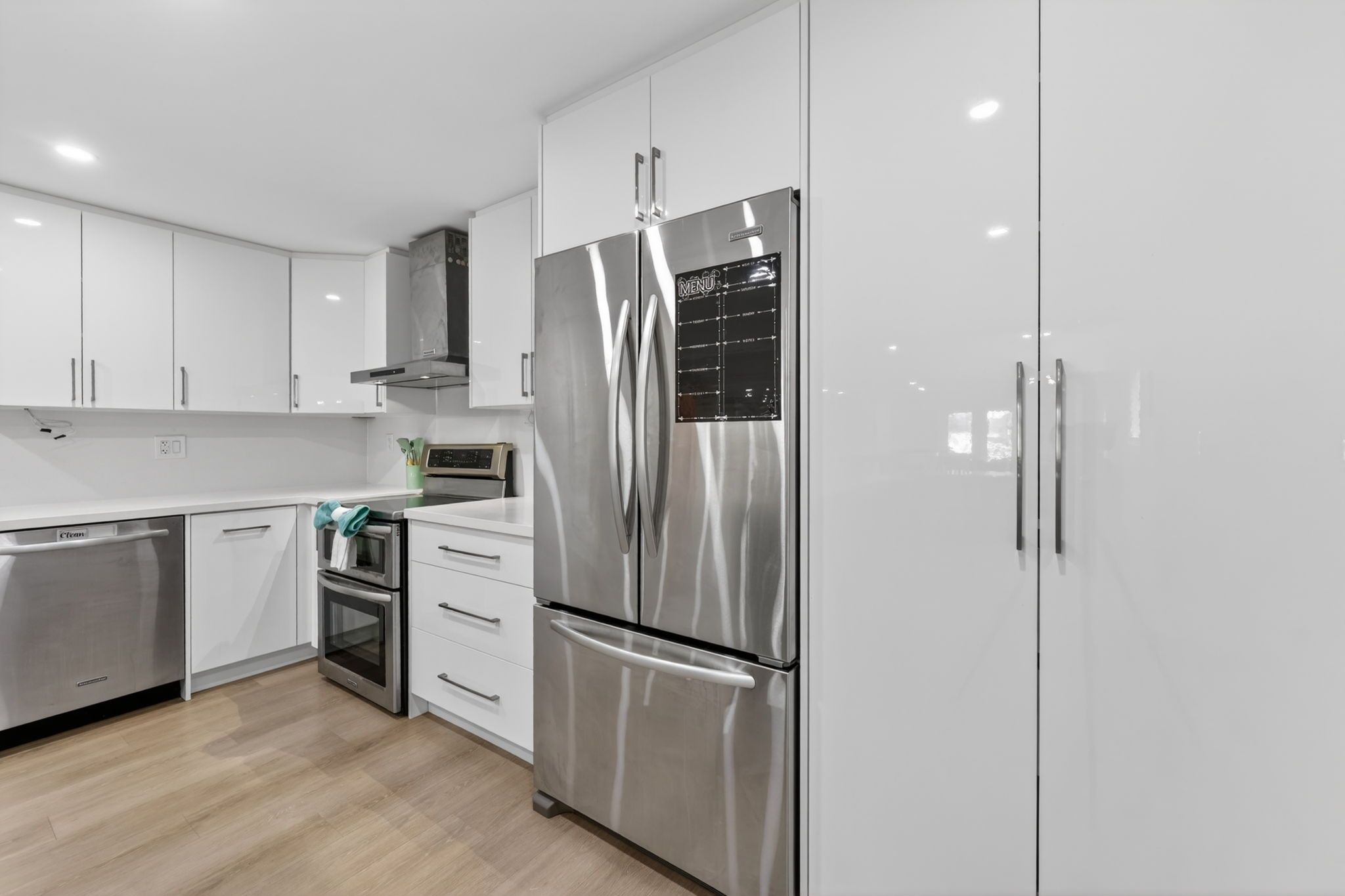 • Updated kitchen with quartz countertops flowing into the living area.