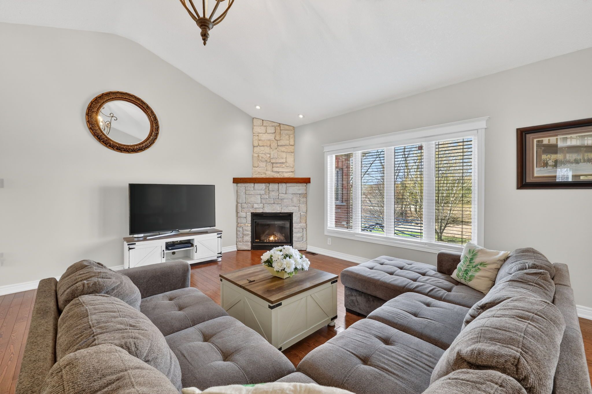 Welcome to 4912 concession road 3! Nestled on a 1. 5-acre corner lot just minutes from the heart of alliston. This exceptional bungalow features a thoughtfully designed layout, blending elegance, comfort, and refined country living. Step inside to a bright main floor with an open-concept design ideal for everyday living and entertaining. Fully updated kitchen features, quartz countertops and flows seamlessly into the living area, where a stunning stone gas fireplace anchors the space. West-facing windows capture beautiful sunset views, filling the home with natural light. The main level offers three spacious bedrooms , including a primary suite with a walk-in closet and private three-piece ensuite, along with a total of two and a half bathrooms. A dedicated office and a three-car garage with interior access add convenience and functionality. The fully finished walk-out lower level, completed in 2024, extends the living space with three bedrooms, a full three-piece bathroom, an oversized island with quartz countertops, plus a laundry and storage room, ideal for entertaining or in-law suite potential. Surrounded by natural beauty, this property offers privacy, space, and everyday convenience, just minutes to amenities. Website https://listings. Wylieford. Com/sites/rbvxkddl/unbranded walkthru video https://listings. Wylieford. Com/videos/019d88c2-6a4b-7055-a0fe-10fddb81dda5
