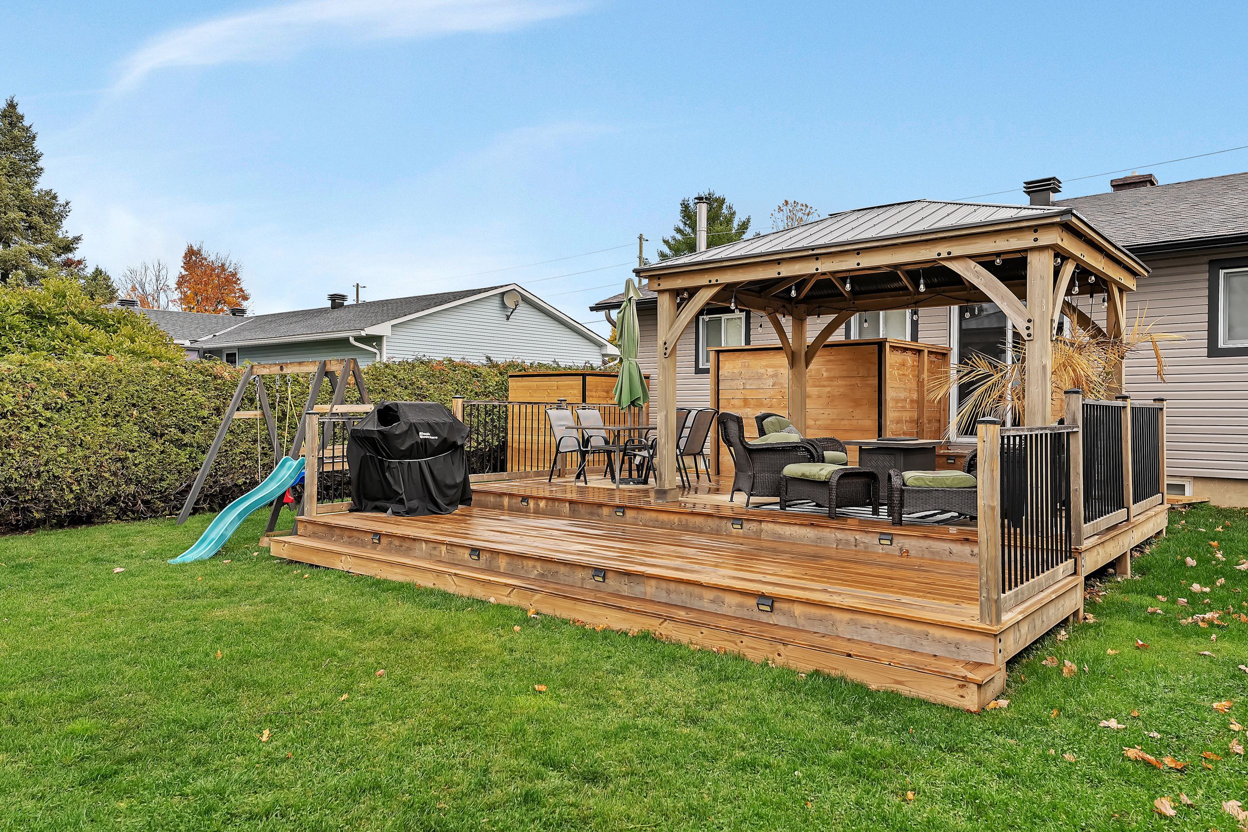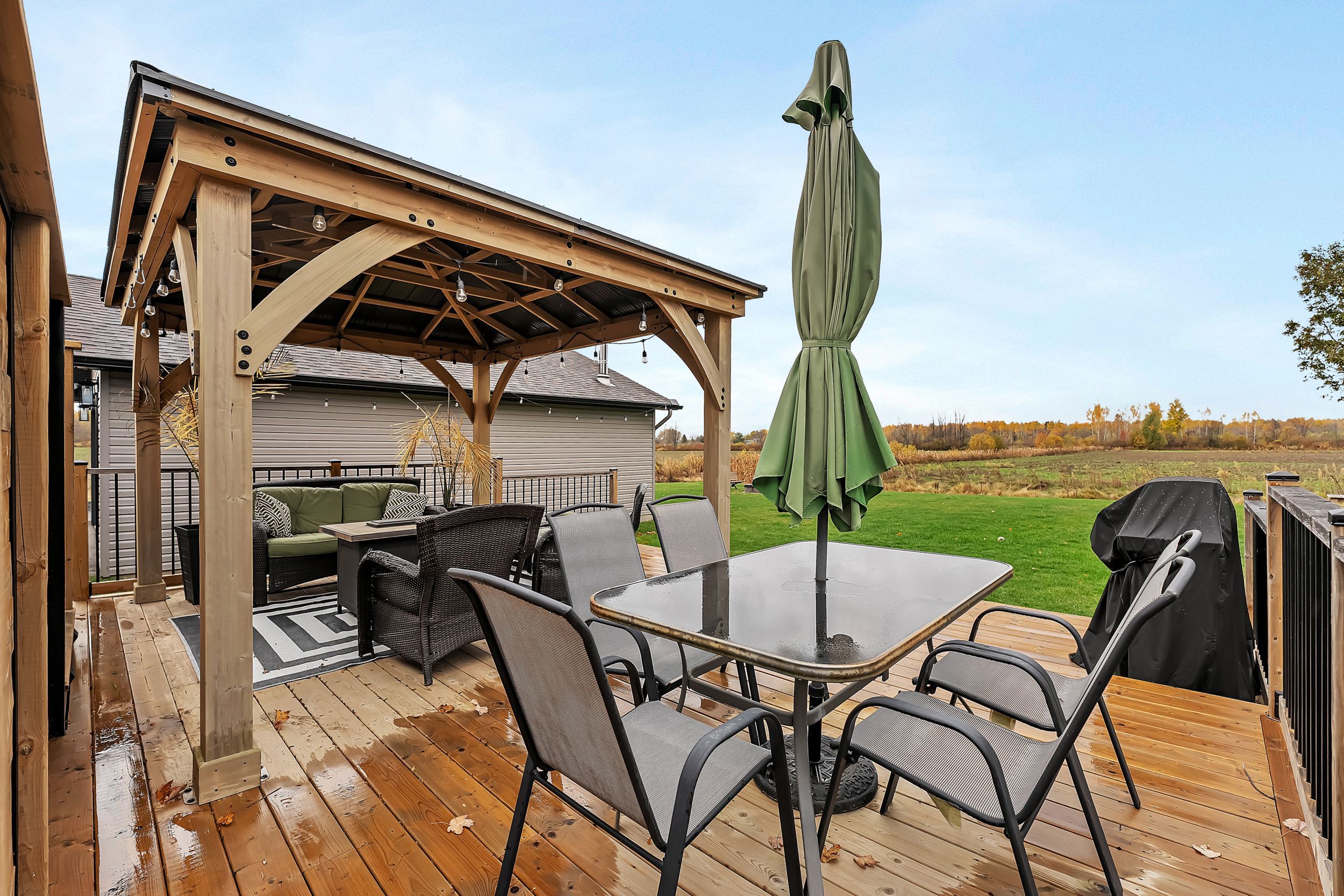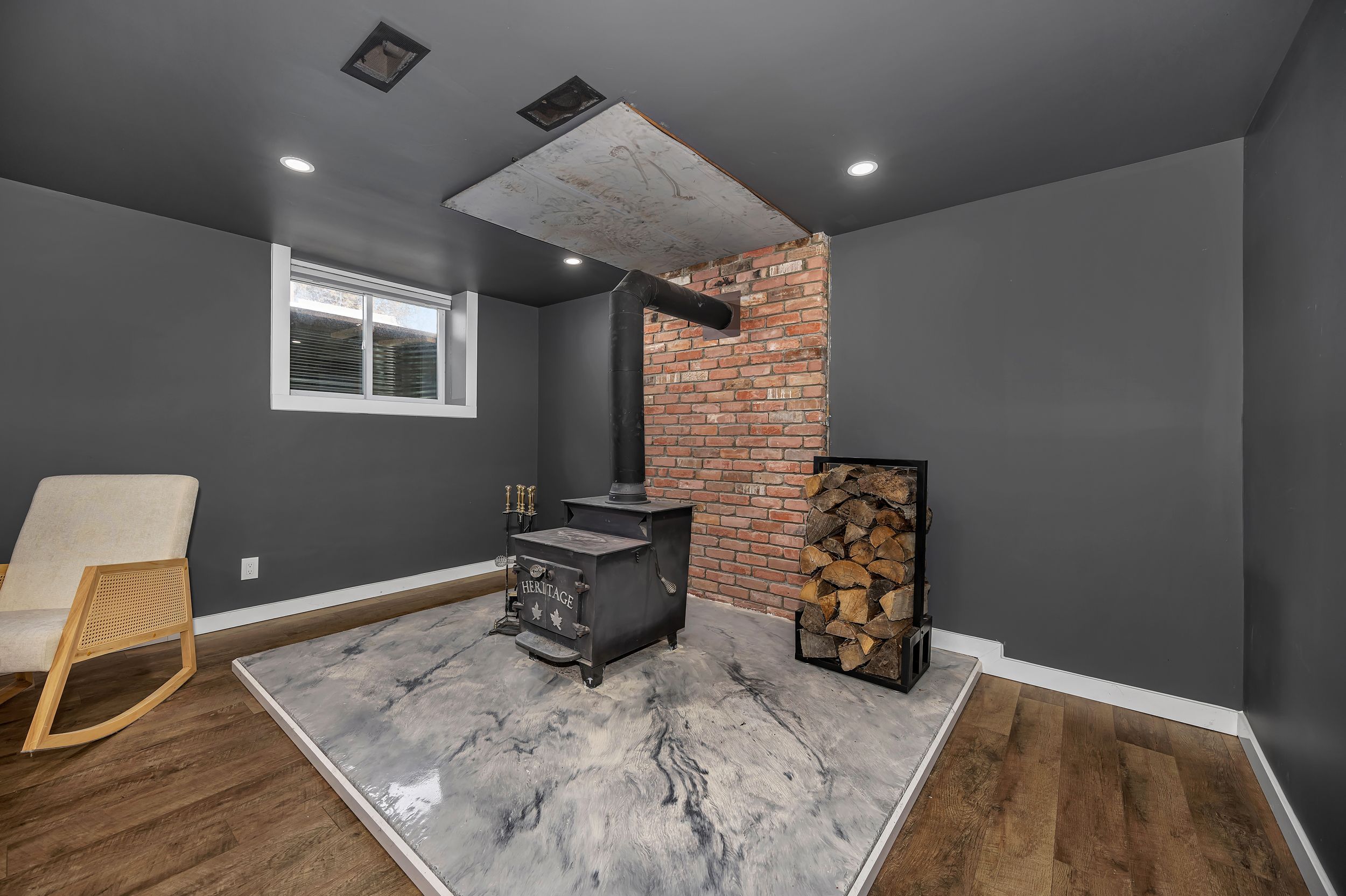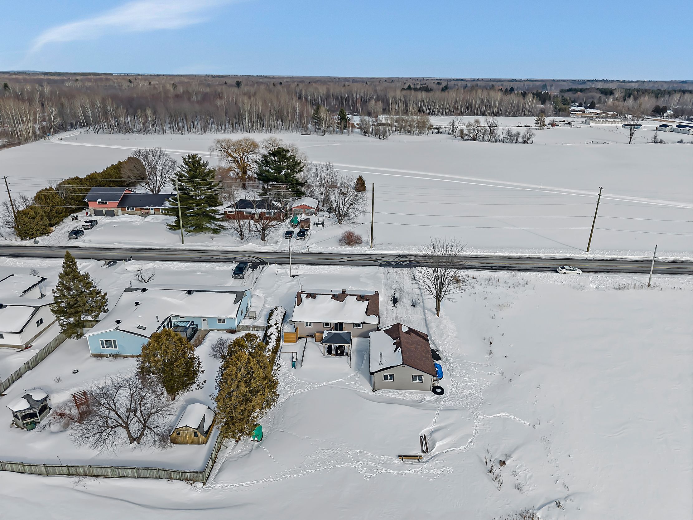 Beautifully updated and meticulously maintained, this charming two-bedroom, two-bathroom bungalow sits on a generous one-third acre lot with no rear neighbours, offering privacy and peaceful surroundings just 15 minutes from the city core. The bright and inviting main level showcases modern finishes throughout, featuring an eat-in kitchen with stainless steel appliances and elegant quartz countertops. The spacious living room is highlighted by an oversized window that fills the space with natural light. The primary suite serves as a relaxing retreat, complete with a luxurious four-piece ensuite boasting a freestanding tub and glass-enclosed shower. A second bedroom and a stylish four-piece main bath complete the level. Downstairs, the fully finished lower level offers a large family room warmed by a cozy wood stove, a dedicated gym area, a laundry room, and ample storage space. For hobbyists or those in need of extra workspace, the detached 24' x 32' garage-heated with its own wood stove-provides comfort and functionality year-round. End your days soaking in the sunset from the recently built deck, the perfect place to unwind and enjoy the tranquility of country living.