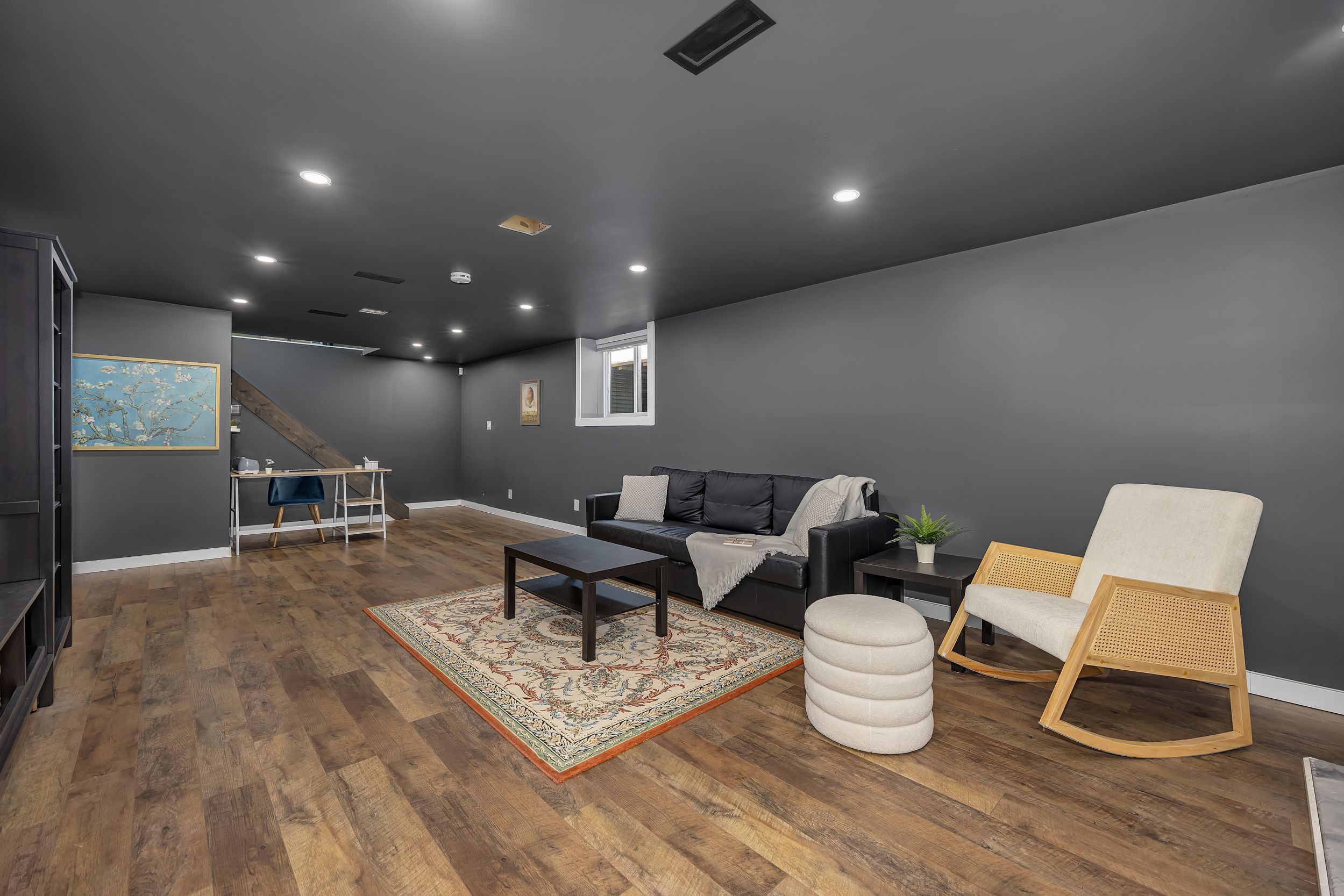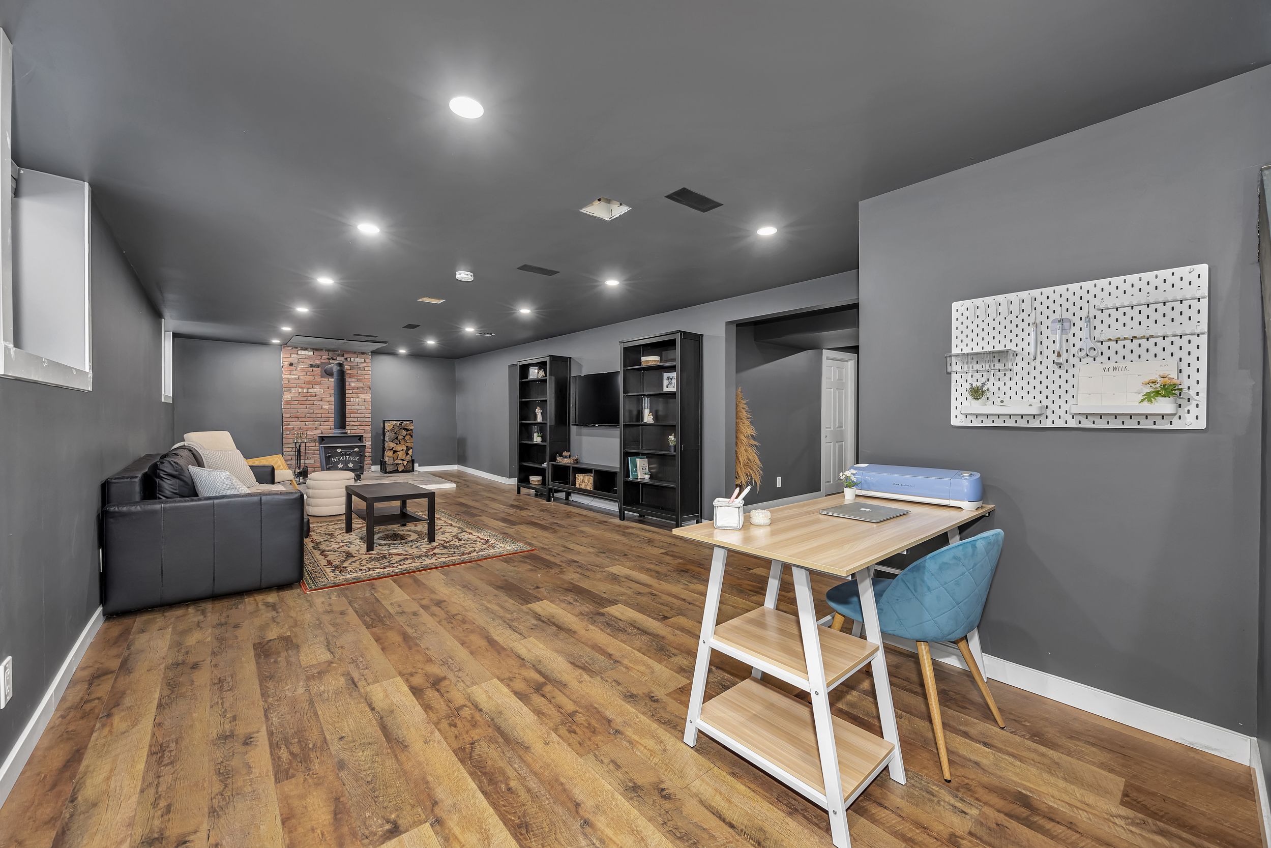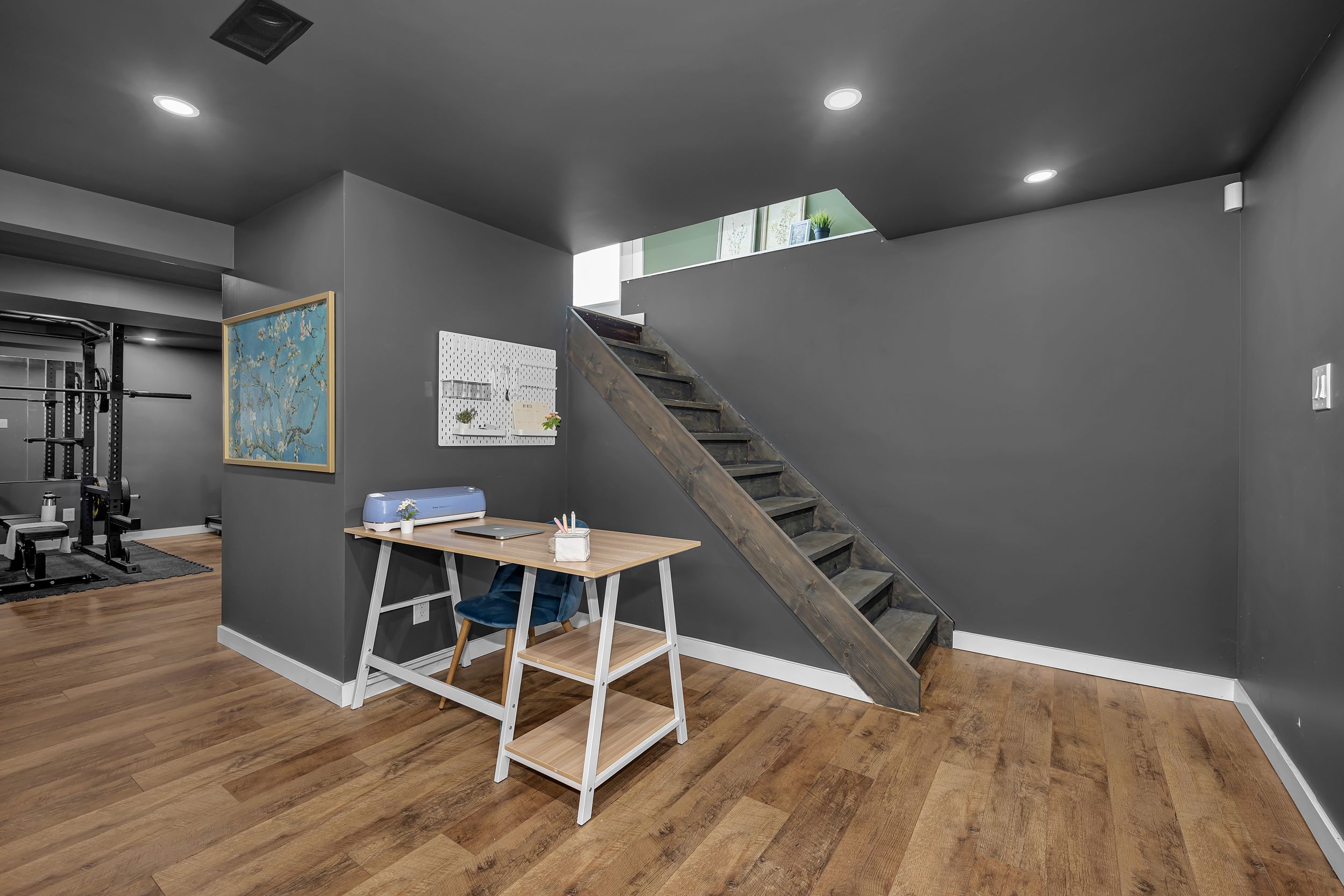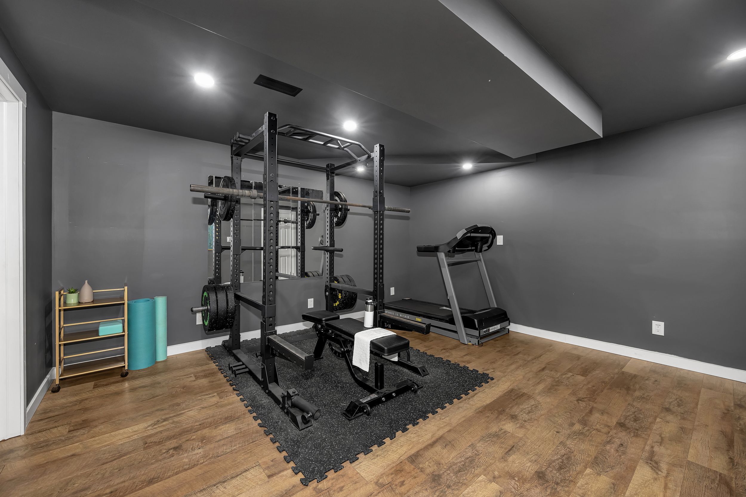 • Fully finished lower level with family room, gym area, and storage.