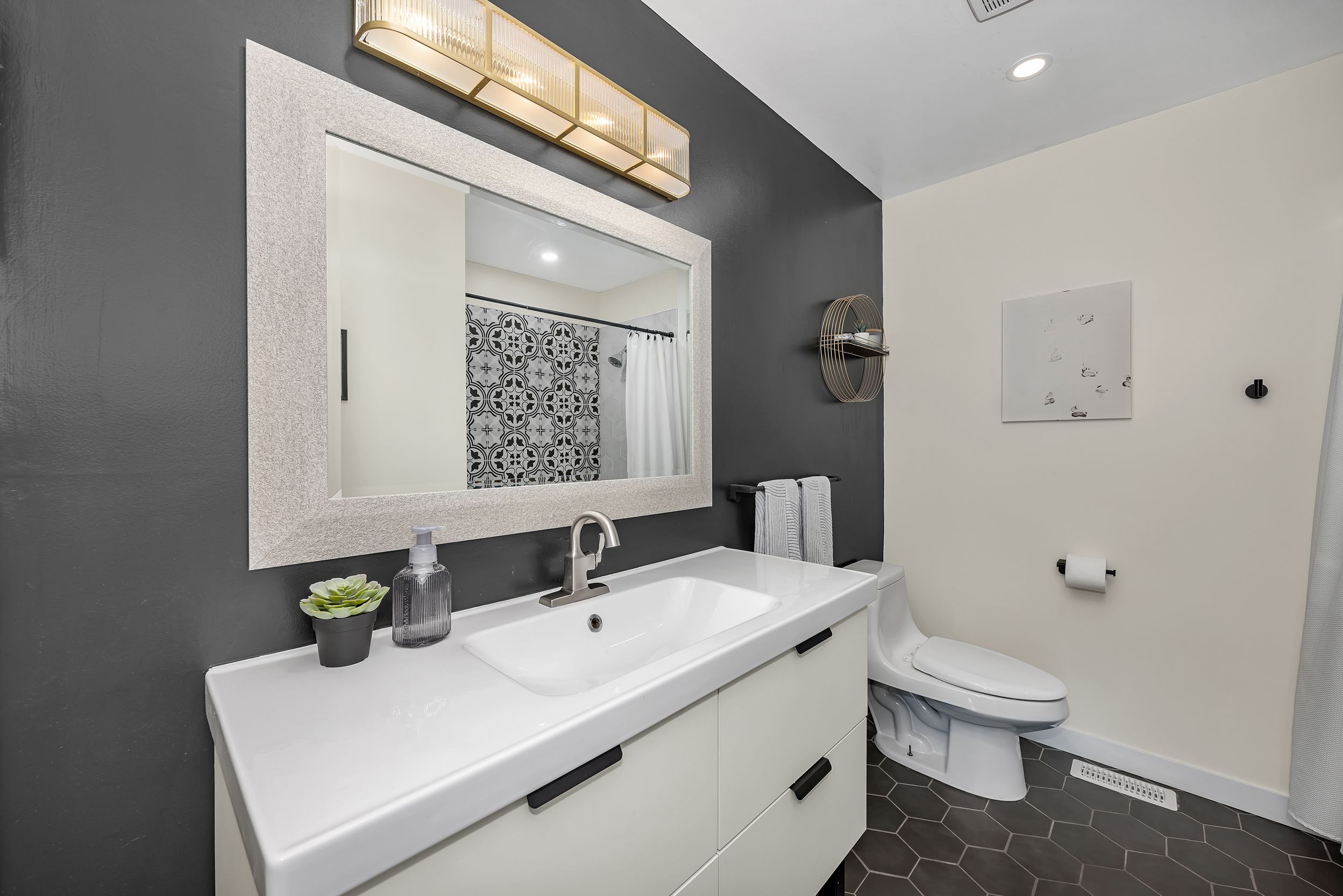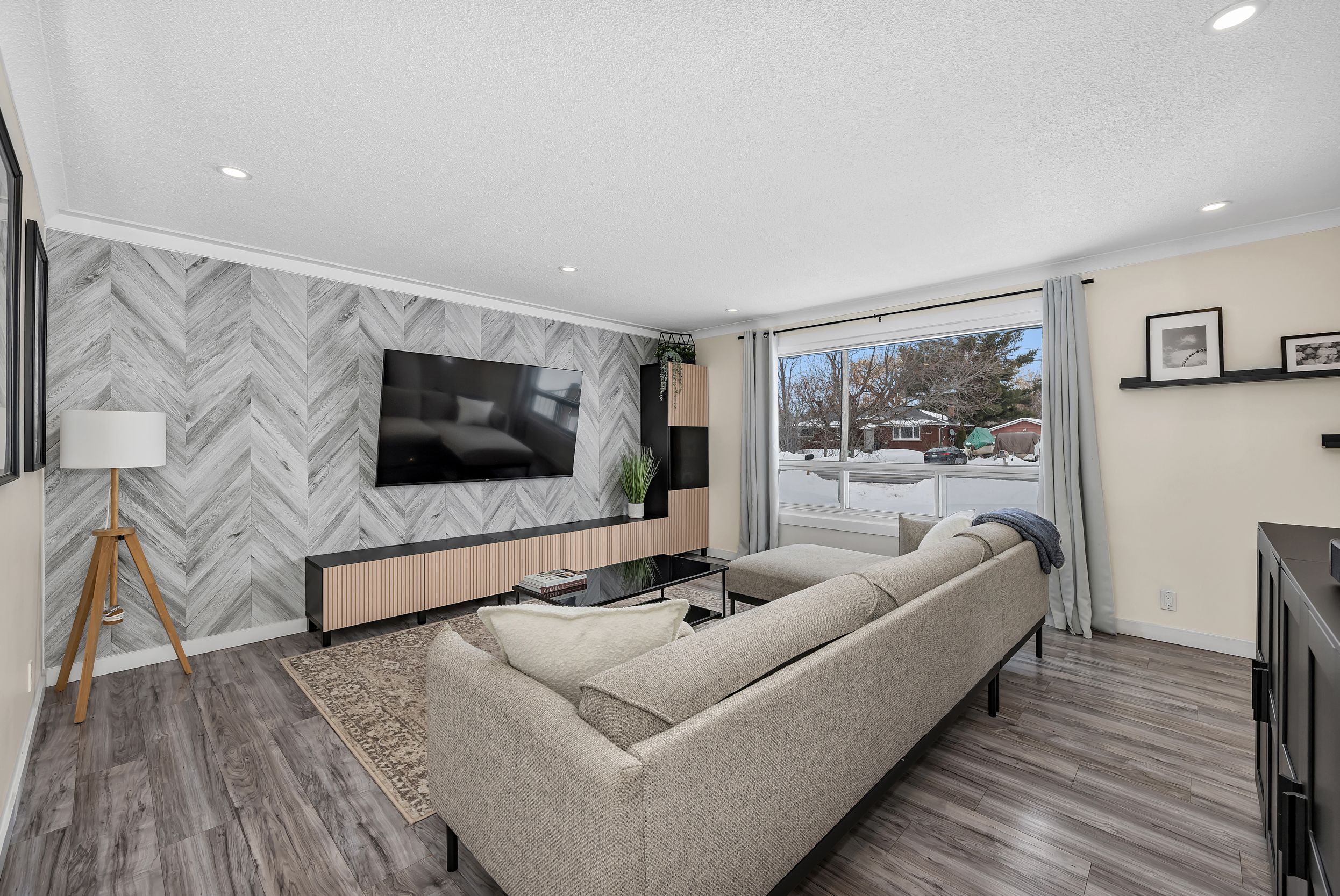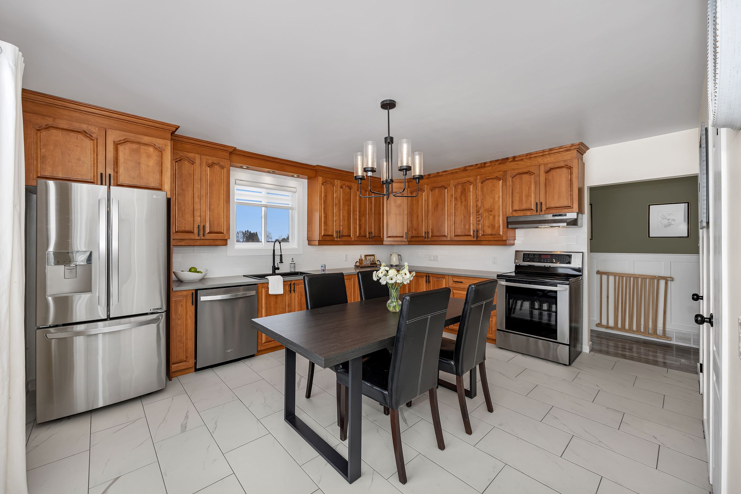• Bright main level with stylish kitchen and natural light from oversized windows.