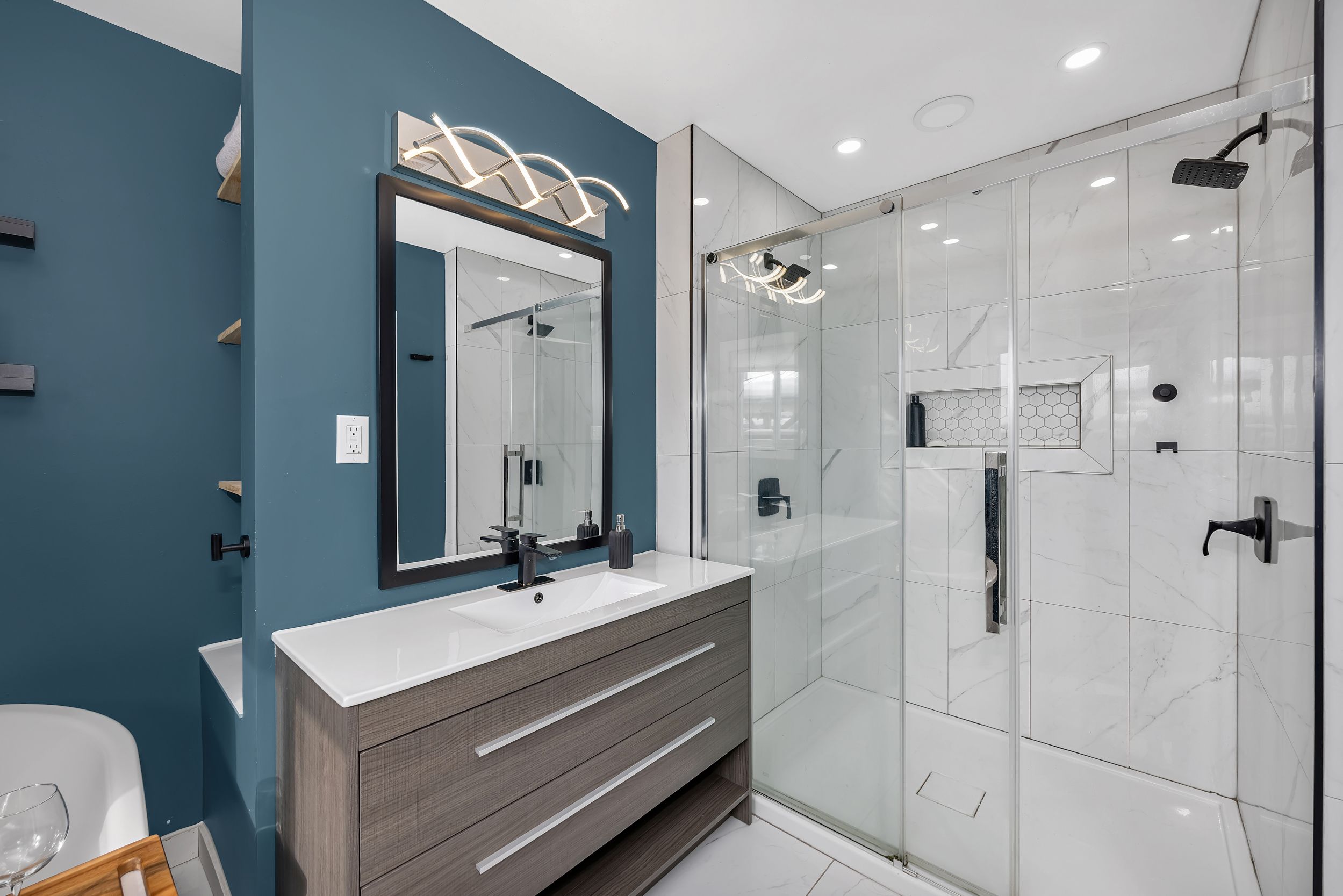 • Primary suite with luxurious ensuite featuring a freestanding tub and shower.