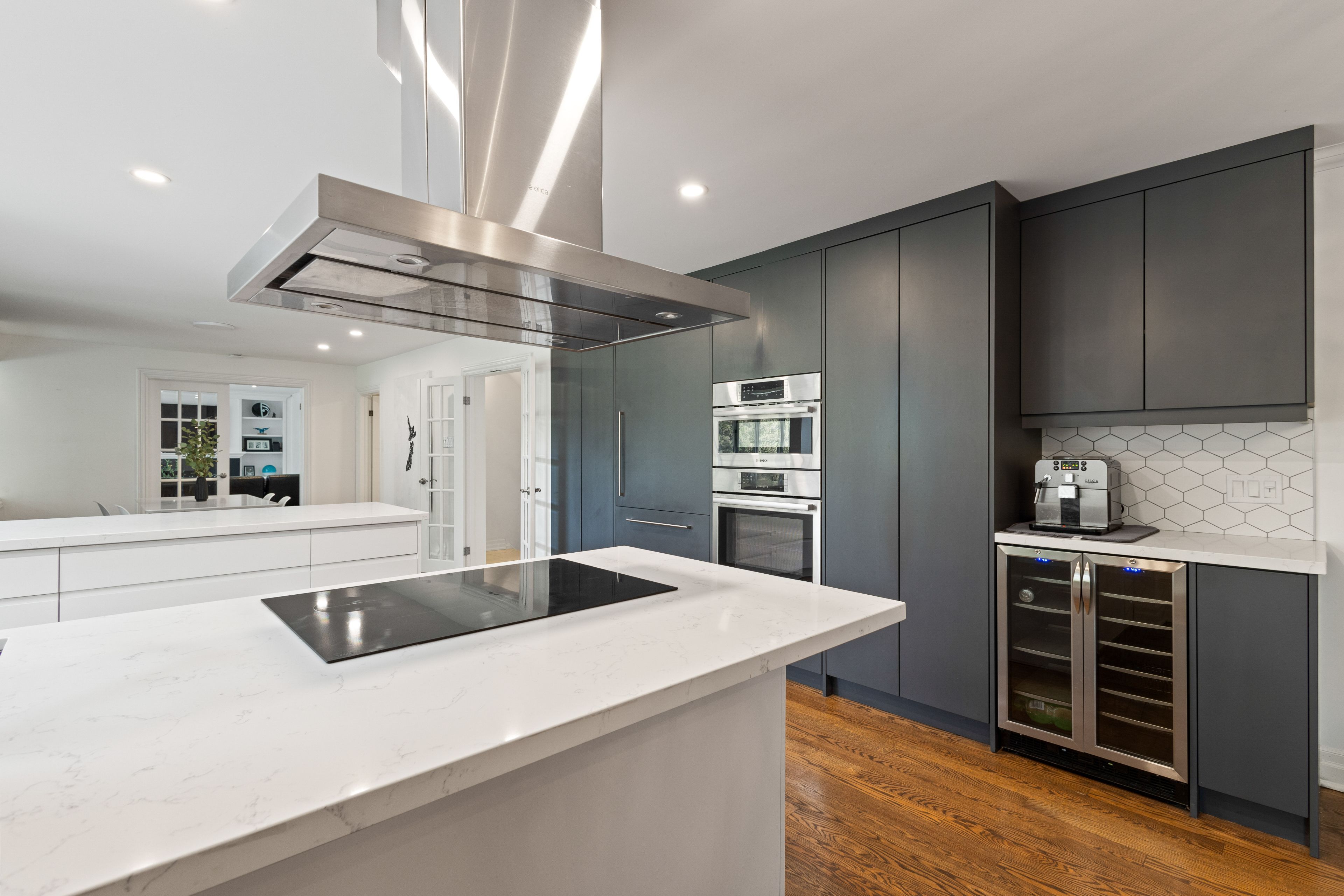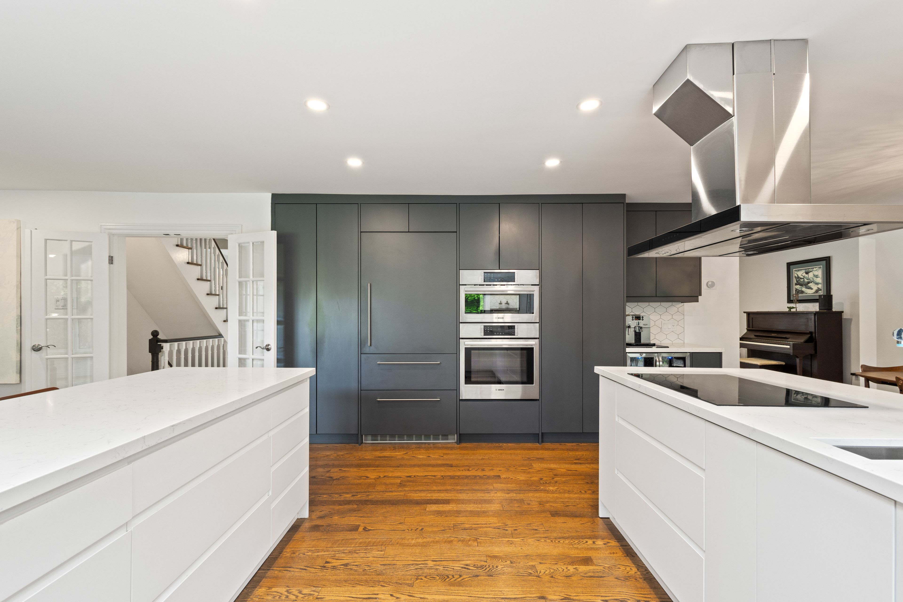 • Gourmet chef's kitchen with high-end Bosch appliances and ample storage.