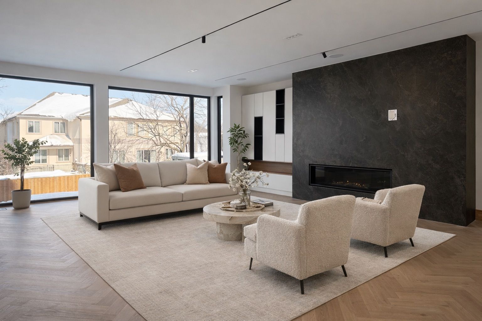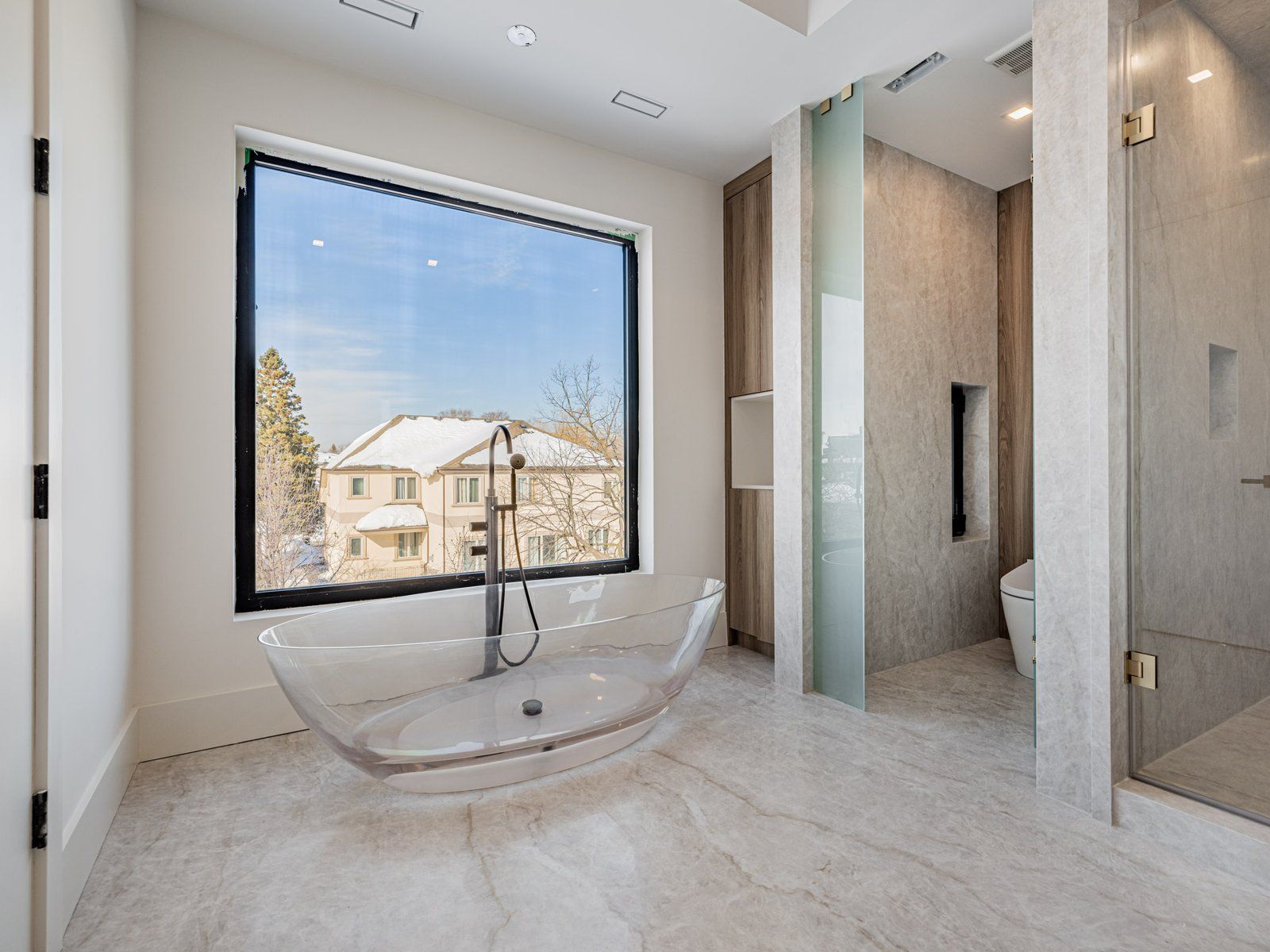 ***architectual significant--luxurious and modern custom-built home, offering over 6,200 sq. Ft of refined living space (4,450 sq. Ft the main and second floors) + 1,748 sq. Ft fully finished walk-out lower level), situated on a premium lot. This architecturally striking residence blends modern sophistication with timeless elegance, open concept design. Dramatic ceiling heights (approximately 14ft in foyer & office & more), and a floating staircase illuminated by a skylight, and floor-to-ceiling picture windows creating natural bright, airy atmosphere interiors infused with natural light. The chef-inspired kitchen is a true showpiece, featuring a built-in appliance, and an oversized island with breakfast bar, a fully equipped butlers pantry with a kitchenette. Upstairs, the luxurious primary suite is a serene retreat with a spa-inspired ensuite and a custom dressing room, and a mini bar and a balcony for fresh-air and private relaxation. Three additional bedrooms, each with its own ensuite, provide comfort and privacy and functionality for the entire family. The finished walk-up lower level is crafted for both entertaining and relaxation, showcasing a spacious recreation room with a rough-in wet bar, a private nanny/in-law suite, all enhanced by radiant heated floors throughout. Additional features include private elevator serving all levels, wide-plank and herringbone hardwood flooring, led strip & pot lighting throughout. Note : a new property tax is not assessed yet.
