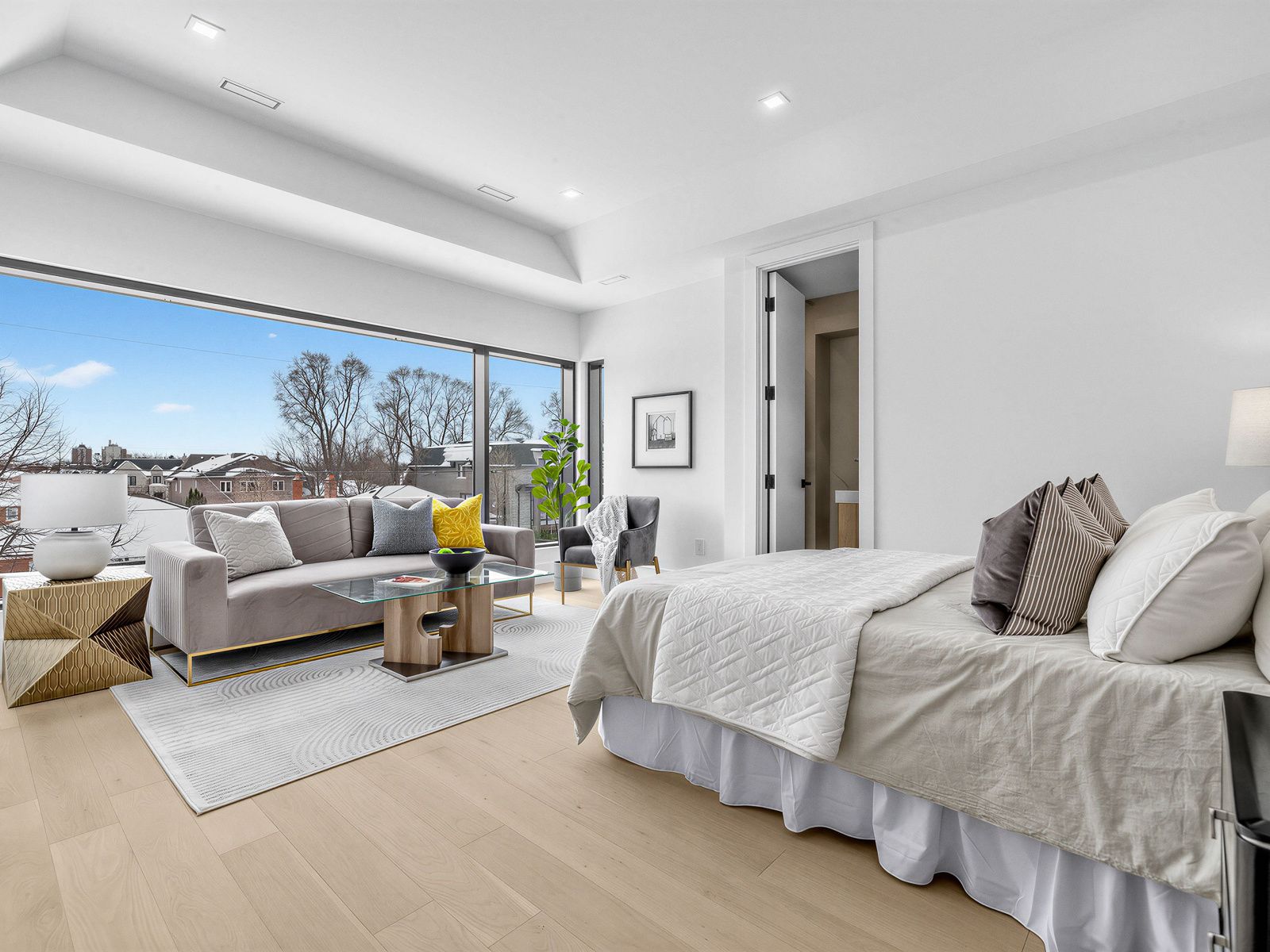 ***architectual significant--luxurious and modern custom-built home, offering over 6,200 sq. Ft of refined living space (4,450 sq. Ft the main and second floors) + 1,748 sq. Ft fully finished walk-out lower level), situated on a premium lot. This architecturally striking residence blends modern sophistication with timeless elegance, open concept design. Dramatic ceiling heights (approximately 14ft in foyer & office & more), and a floating staircase illuminated by a skylight, and floor-to-ceiling picture windows creating natural bright, airy atmosphere interiors infused with natural light. The chef-inspired kitchen is a true showpiece, featuring a built-in appliance, and an oversized island with breakfast bar, a fully equipped butlers pantry with a kitchenette. Upstairs, the luxurious primary suite is a serene retreat with a spa-inspired ensuite and a custom dressing room, and a mini bar and a balcony for fresh-air and private relaxation. Three additional bedrooms, each with its own ensuite, provide comfort and privacy and functionality for the entire family. The finished walk-up lower level is crafted for both entertaining and relaxation, showcasing a spacious recreation room with a rough-in wet bar, a private nanny/in-law suite, all enhanced by radiant heated floors throughout. Additional features include private elevator serving all levels, wide-plank and herringbone hardwood flooring, led strip & pot lighting throughout. Note : a new property tax is not assessed yet.