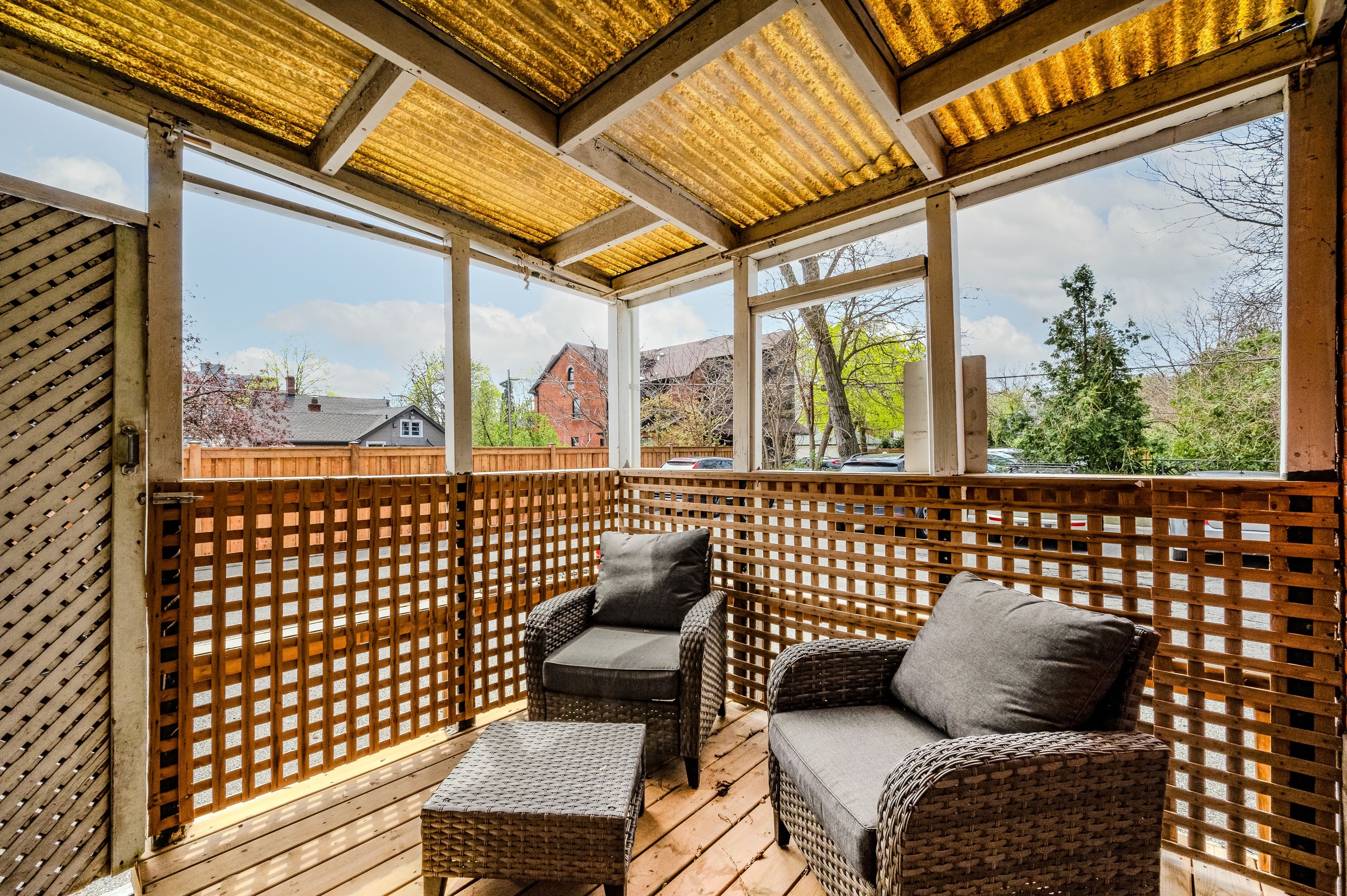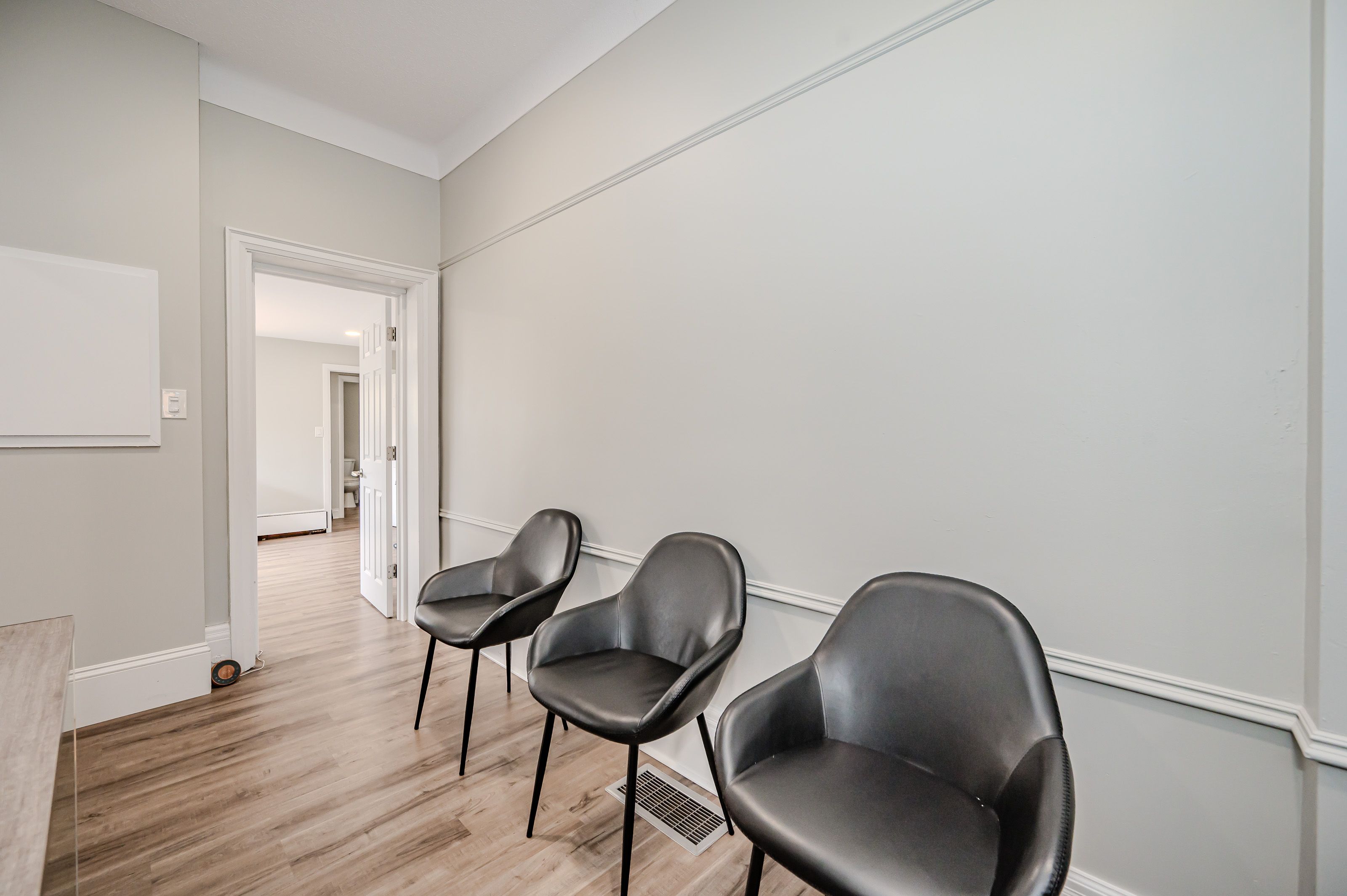 Beautifully updated boutique office space in the heart of downtown burlington, ideal for wellness practitioners, therapists, or client-focused professionals seeking a more private and inviting setting. This thoughtfully laid-out unit features two spacious treatment or office rooms, a welcoming vestibule/reception area, private 2-piece washroom, and kitchenette. The layout allows for seamless client flow and separation between workspaces. A standout feature is the charming covered porch, offering a rare and calming transition space for clients, perfect for practices focused on comfort, privacy, and experience. Recent updates include modern flooring, fresh paint, and upgraded lighting. Large windows provide abundant natural light, enhancing the warm and professional atmosphere. Two dedicated parking spaces included. Utilities included except hydro. Excellent central location with easy access to downtown amenities, transit, and major routes.