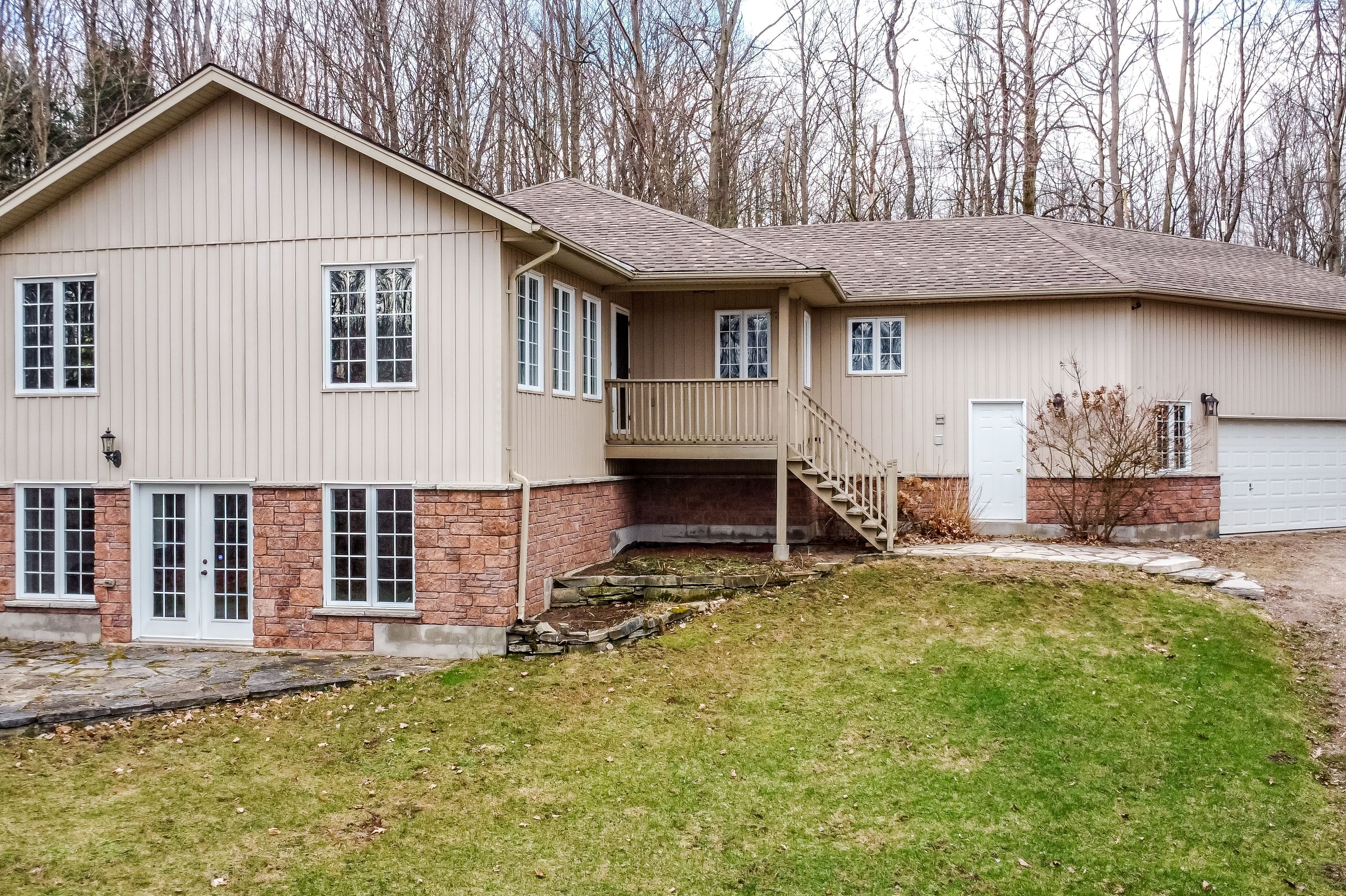 • Custom-built walk-out bungalow set on a private 2.3-acre lot.
