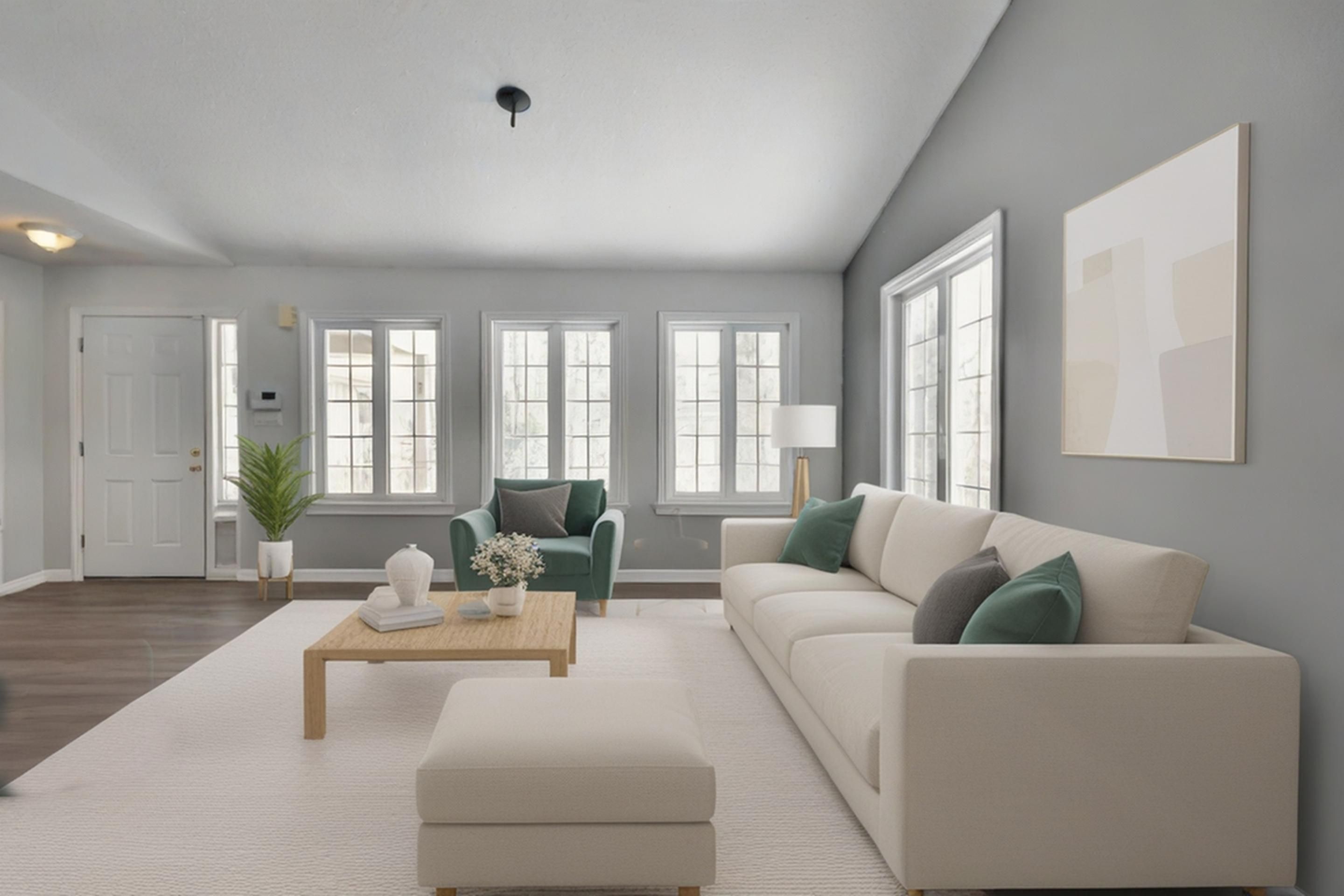 • Bright, open concept design with vaulted ceilings and natural light.