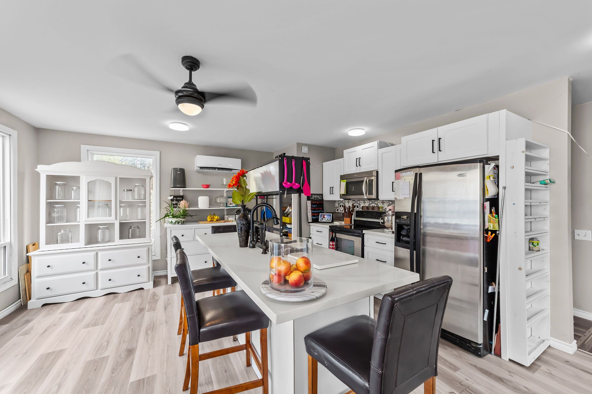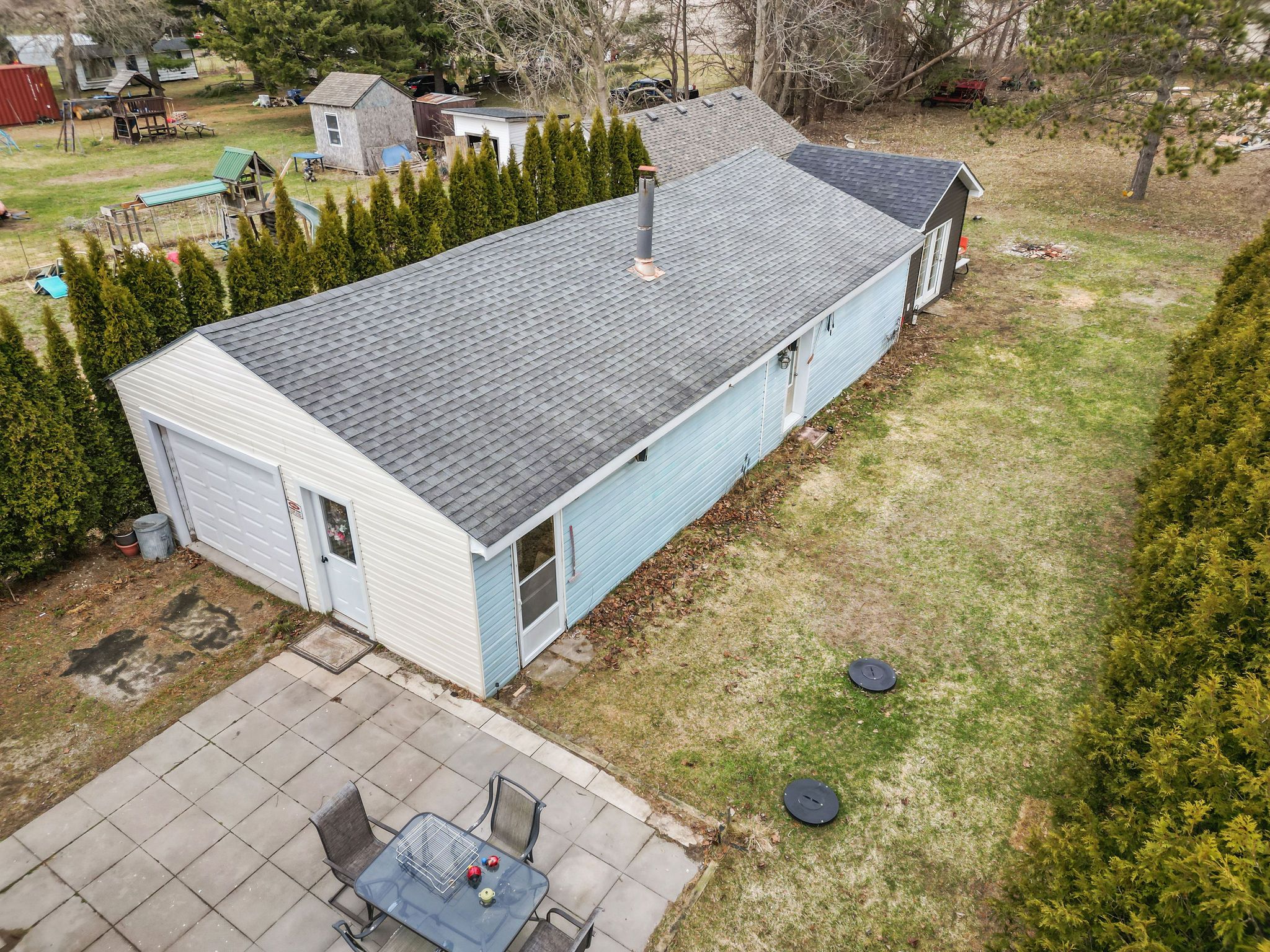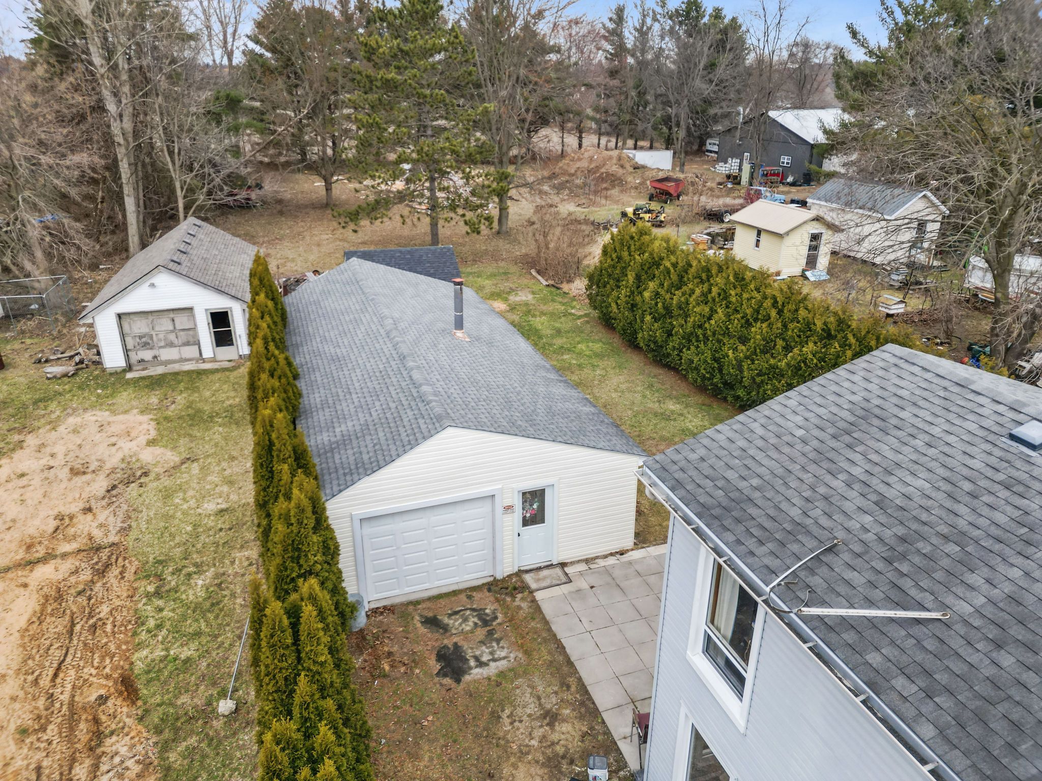 Set on a beautifully treed lot in rural malahide, this charming 1. 5 storey home offers a blend of country character, practical updates, and exceptional garage space. The home features a flexible layout with 4 bedrooms, including 2 on the main floor and 2 on the second level, plus a small office on the main floor that was formerly a laundry room and could easily be converted back if desired. A 4-piece bathroom is conveniently located on the main level. Inside, the home has laminate flooring throughout, while the kitchen was extensively renovated in 2022 with new cupboards, quartz countertops, new appliances, updated plumbing, and new flooring. A new patio door was added in 2023. Outside, the detached garage/shop offers parking for 2 vehicles, with a single-wide private driveway accommodating approximately 4 more. The property has also seen several important exterior and mechanical updates, including the garage pad in 2018, septic system and weeping bed in 2018, new insulation, drywall, drop ceiling, and lighting in the back of the garage in 2020, front pergola in 2020, breakers updated in 2022, and a new 10 x 12 shed in 2024. Set within a wooded rural setting, this property offers a peaceful lifestyle with the functionality and improvements that make day-to-day living easier.