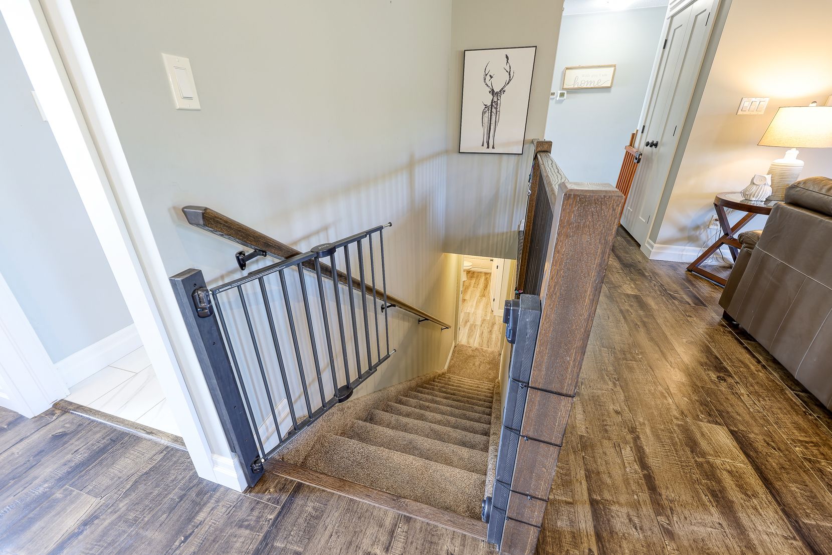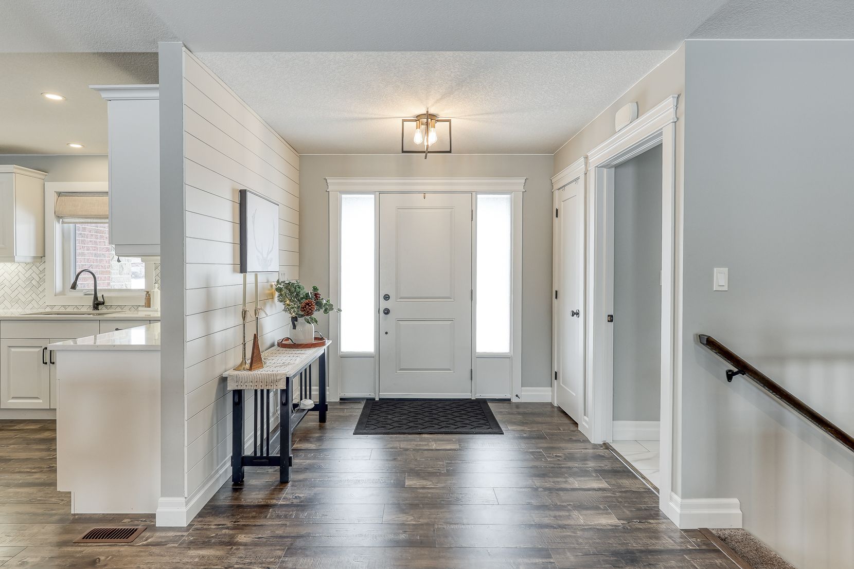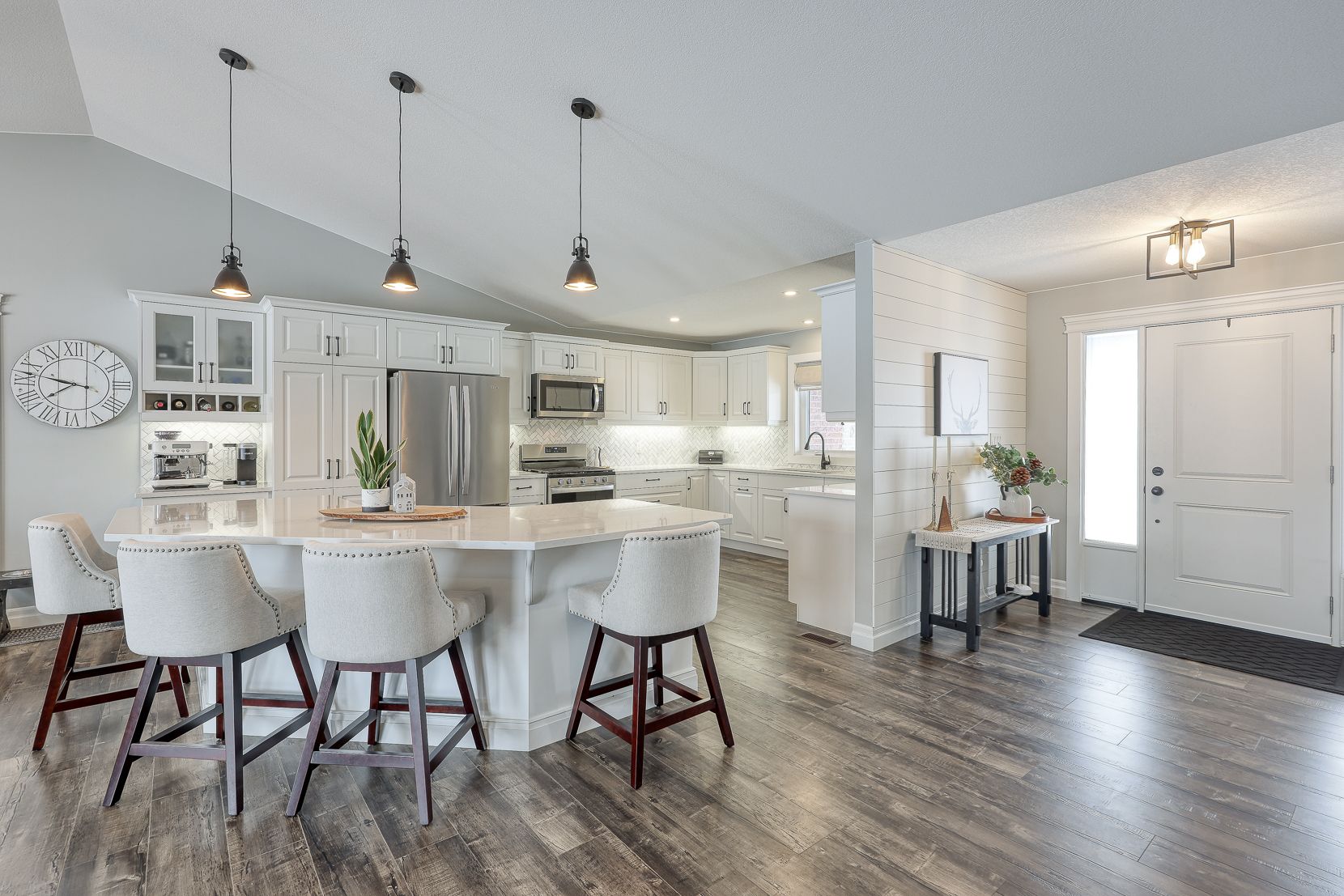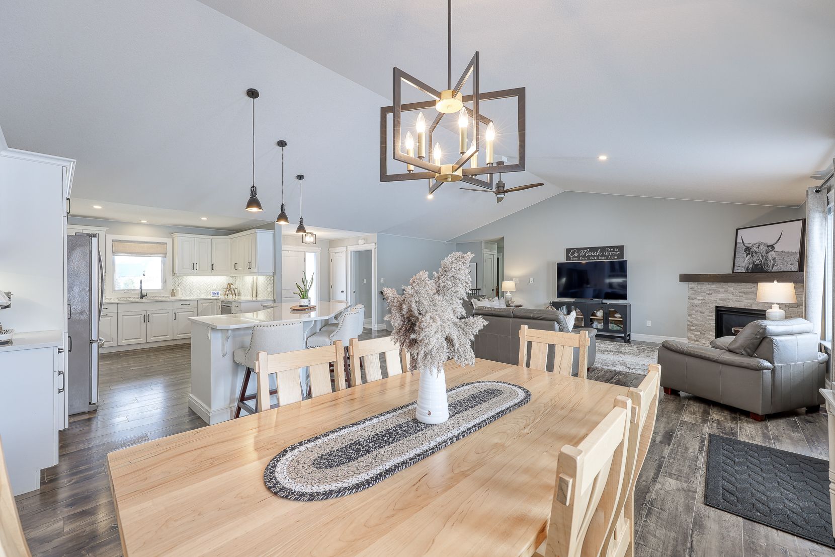 Incredible value! Beautiful custom 5-bed, 3-bath home on a 0. 45-acre lot situated on a quiet cul-de-sac. Features an open-concept layout with cathedral ceilings, a gourmet kitchen with quartz countertops, a large island, and a bright dining area overlooking the living room with gas fireplace. The primary suite offers a tray ceiling, walk-in closet, and luxurious 5-piece ensuite with soaker tub and tiled walk-in shower. Two additional bedrooms, a full bath, and a convenient butler-style laundry room complete the main floor. The finished basement includes 2 more bedrooms, a spacious rec room with bar, a second living area, and a home gym space. Includes a heated triple car garage, covered back deck, and basement walk-up. A perfect home for families needing space, comfort, and style!