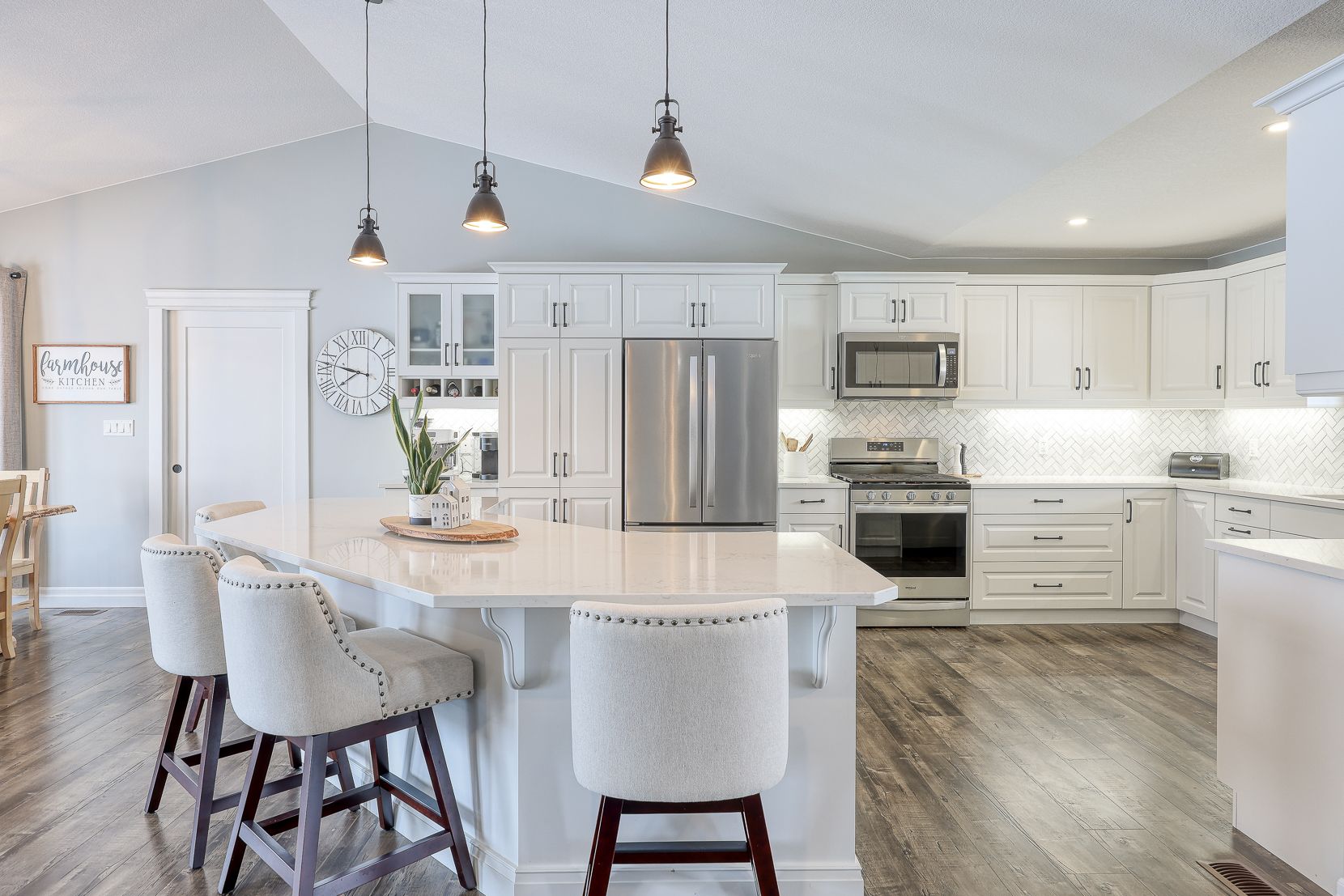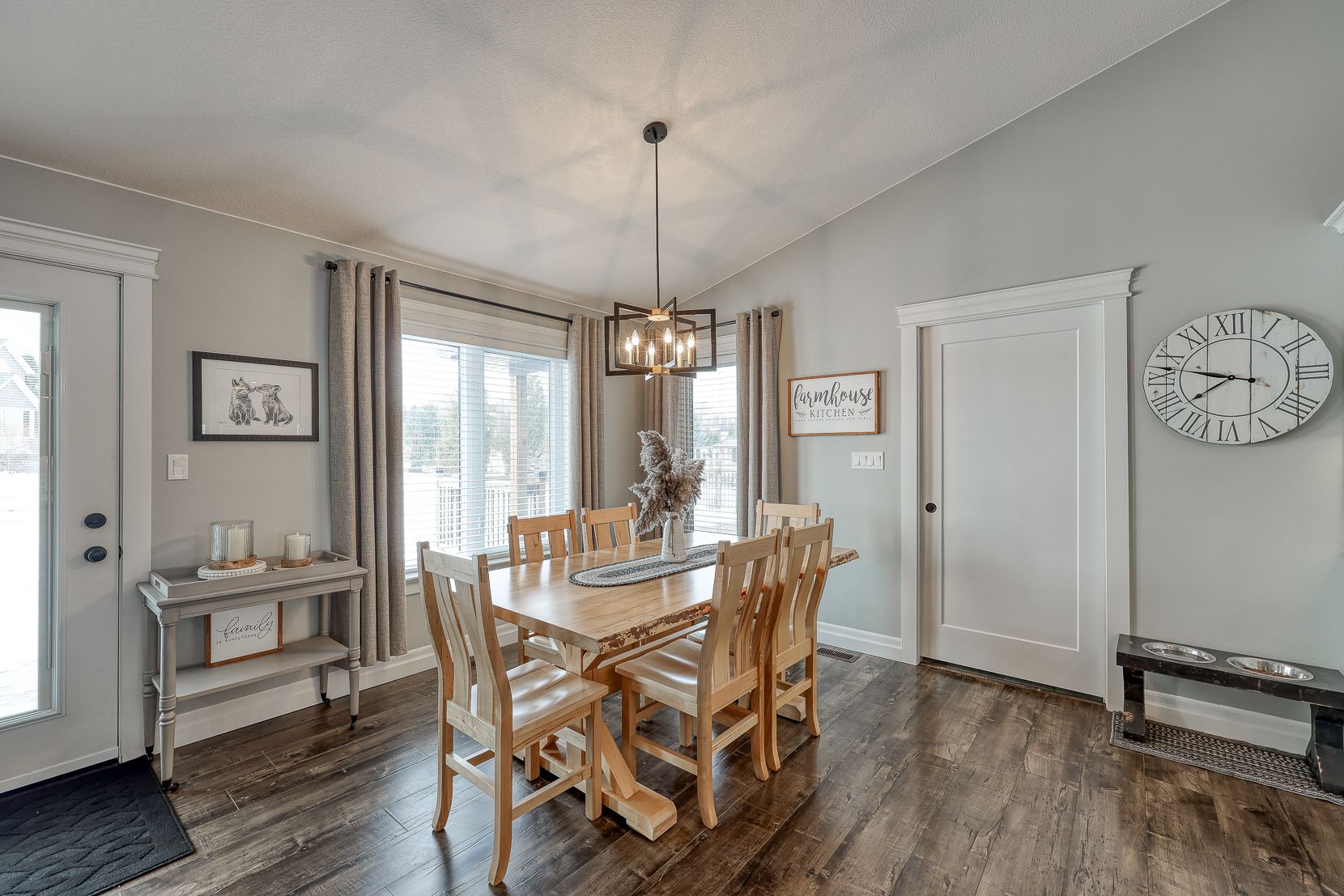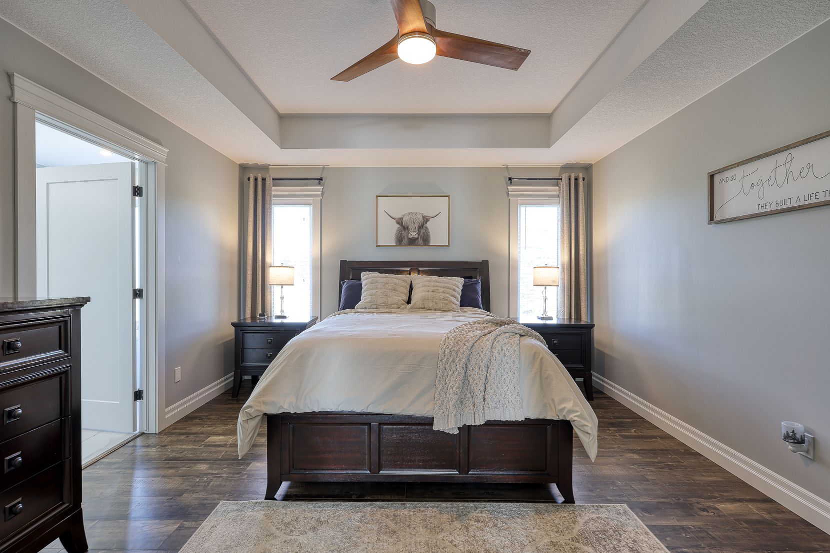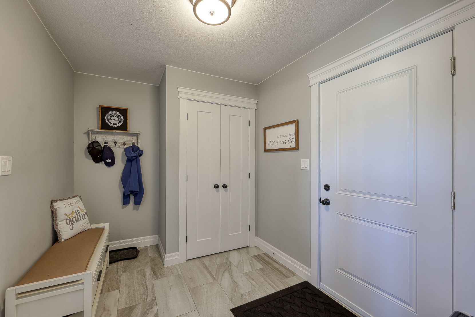 Incredible value! Beautiful custom 5-bed, 3-bath home on a 0. 45-acre lot situated on a quiet cul-de-sac. Features an open-concept layout with cathedral ceilings, a gourmet kitchen with quartz countertops, a large island, and a bright dining area overlooking the living room with gas fireplace. The primary suite offers a tray ceiling, walk-in closet, and luxurious 5-piece ensuite with soaker tub and tiled walk-in shower. Two additional bedrooms, a full bath, and a convenient butler-style laundry room complete the main floor. The finished basement includes 2 more bedrooms, a spacious rec room with bar, a second living area, and a home gym space. Includes a heated triple car garage, covered back deck, and basement walk-up. A perfect home for families needing space, comfort, and style!