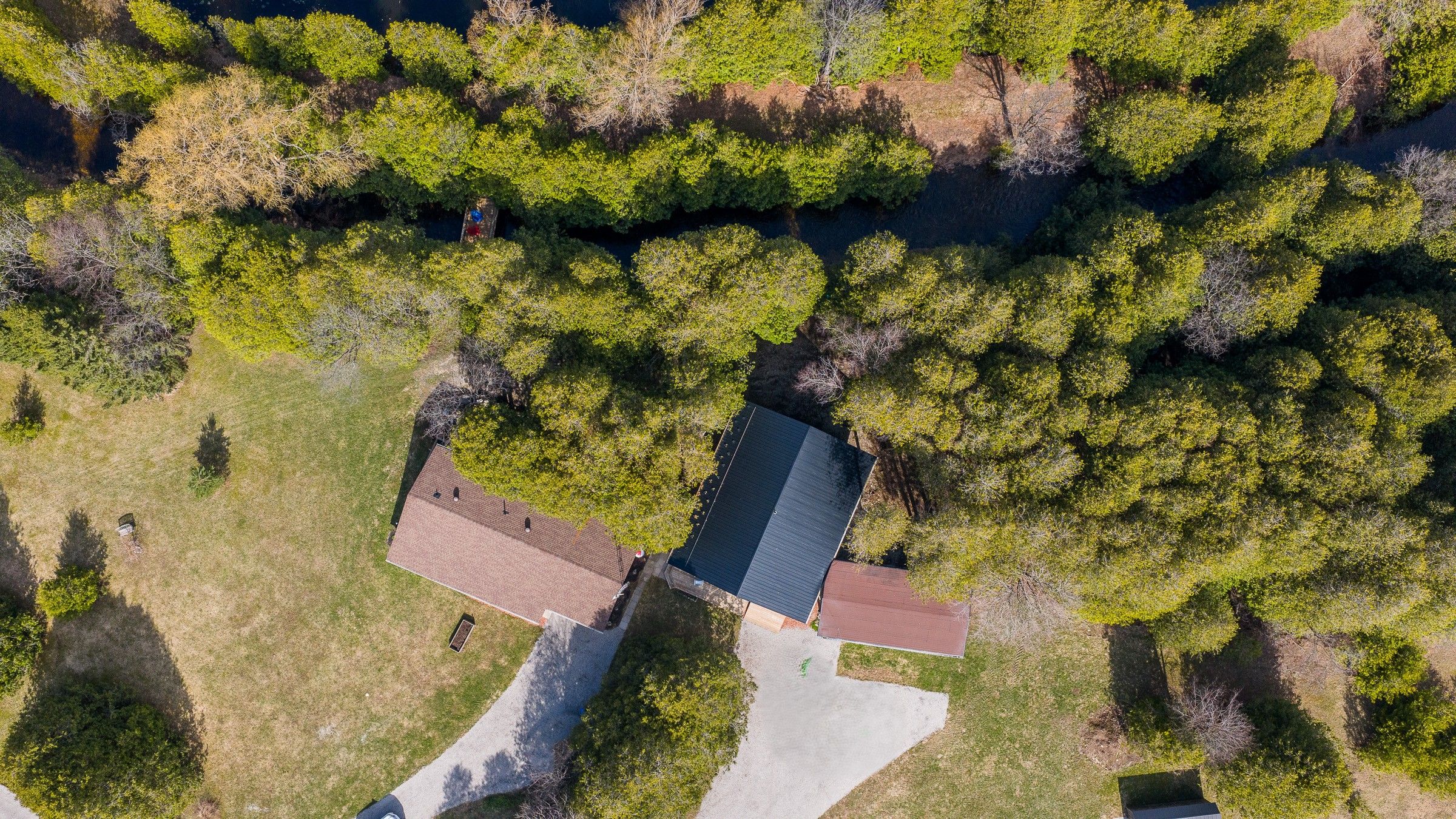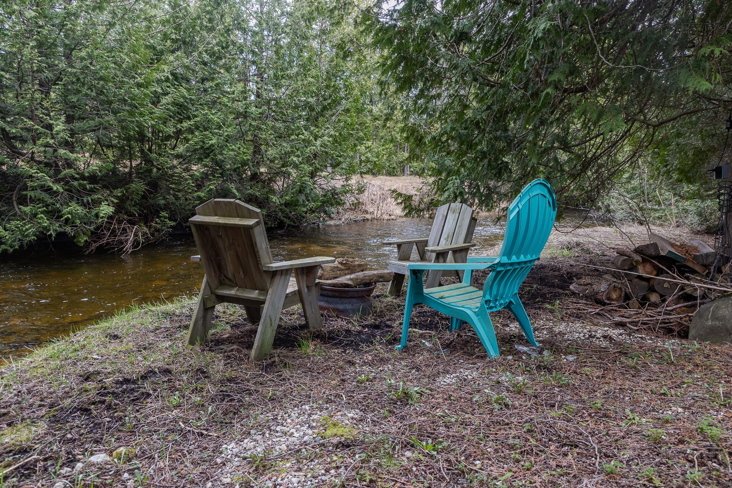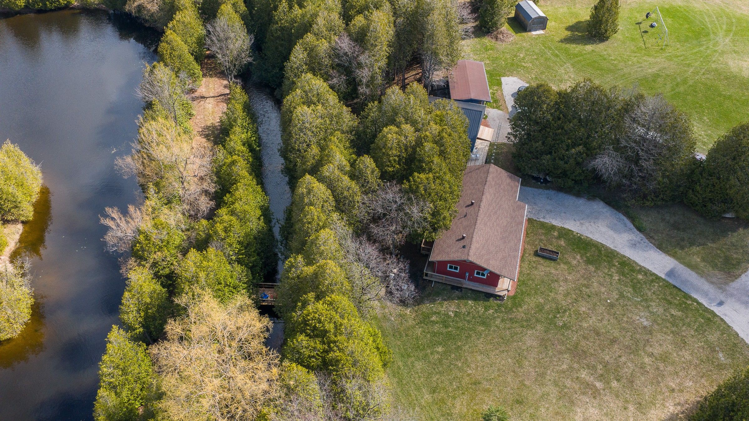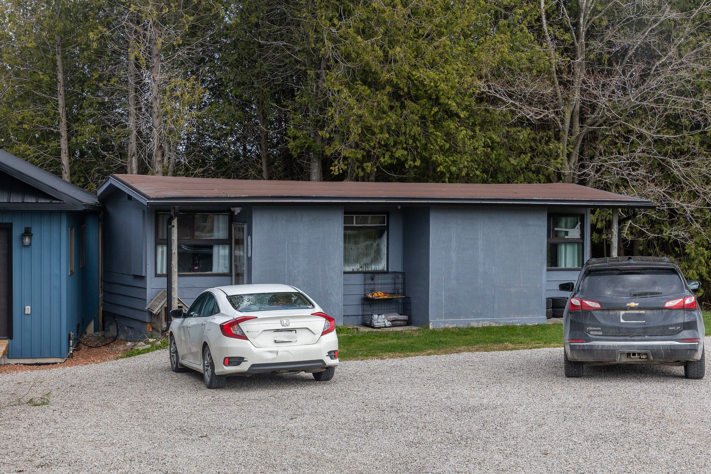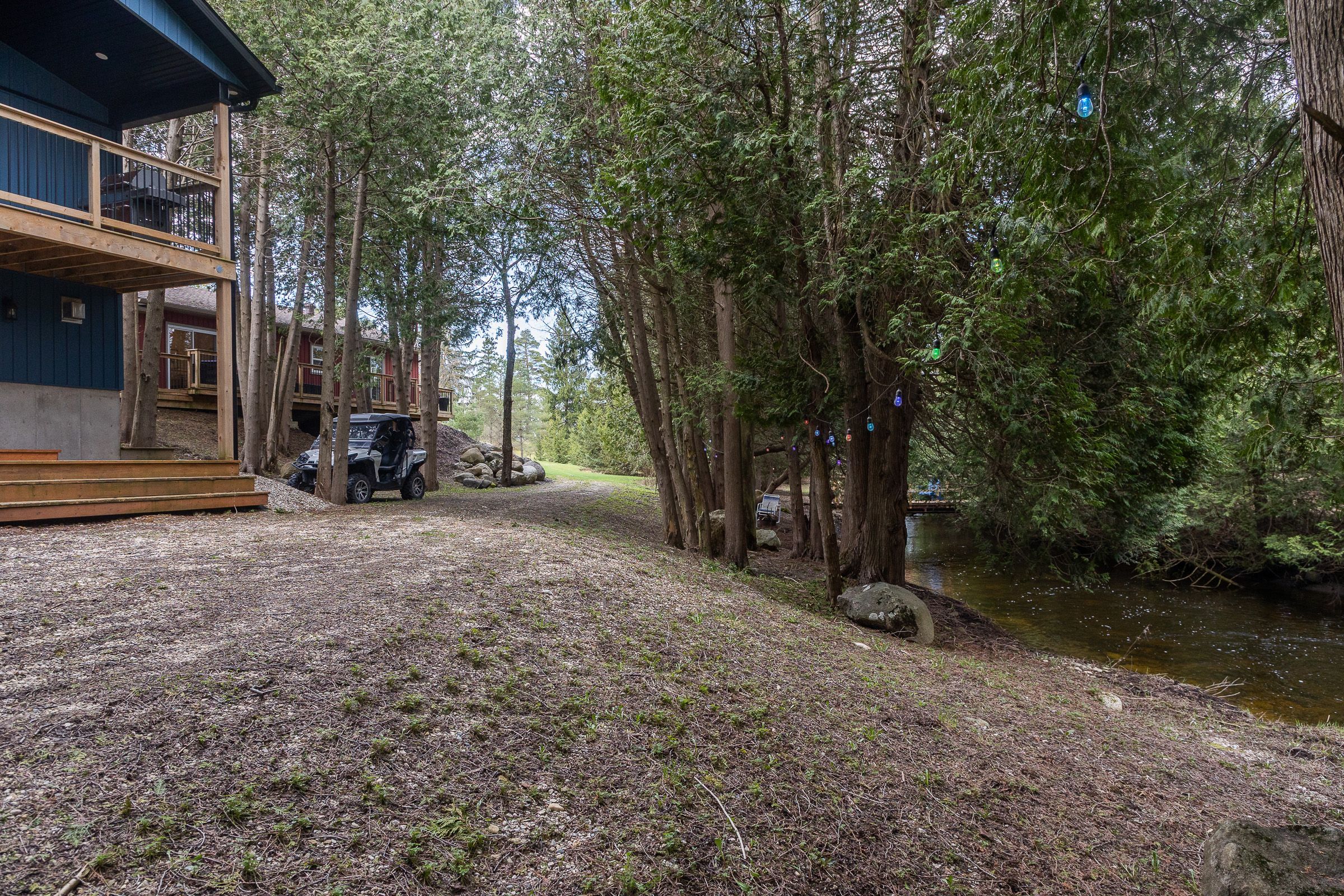 5+ acres with riverside homes in a private setting. Two full-time residences in excellent condition are situated to enjoy phenomenal views of the norm reeves creek. Main residence is approximately 1300 square feet with open living spaces, full finished walkout basement and an attached garage. There is also a 1020 square foot home with 2 bedrooms, 1 1/2 baths and open concept main floor living. Both homes have an attached garage, propane heat, decks and patios overlooking the flowing water. An additional guesthouse has also been used as a full-time home. There is a tennis court, lots of open yard areas and room for a horse or smaller animals. Extra perks include abutting trails and proposed community playground for adjoining landowners. Located on a paved road with easy access to durham, on or mount forest, on. Listing info + measurements are for the main (blue) house, additional measurements and info available for the other house and guest house.