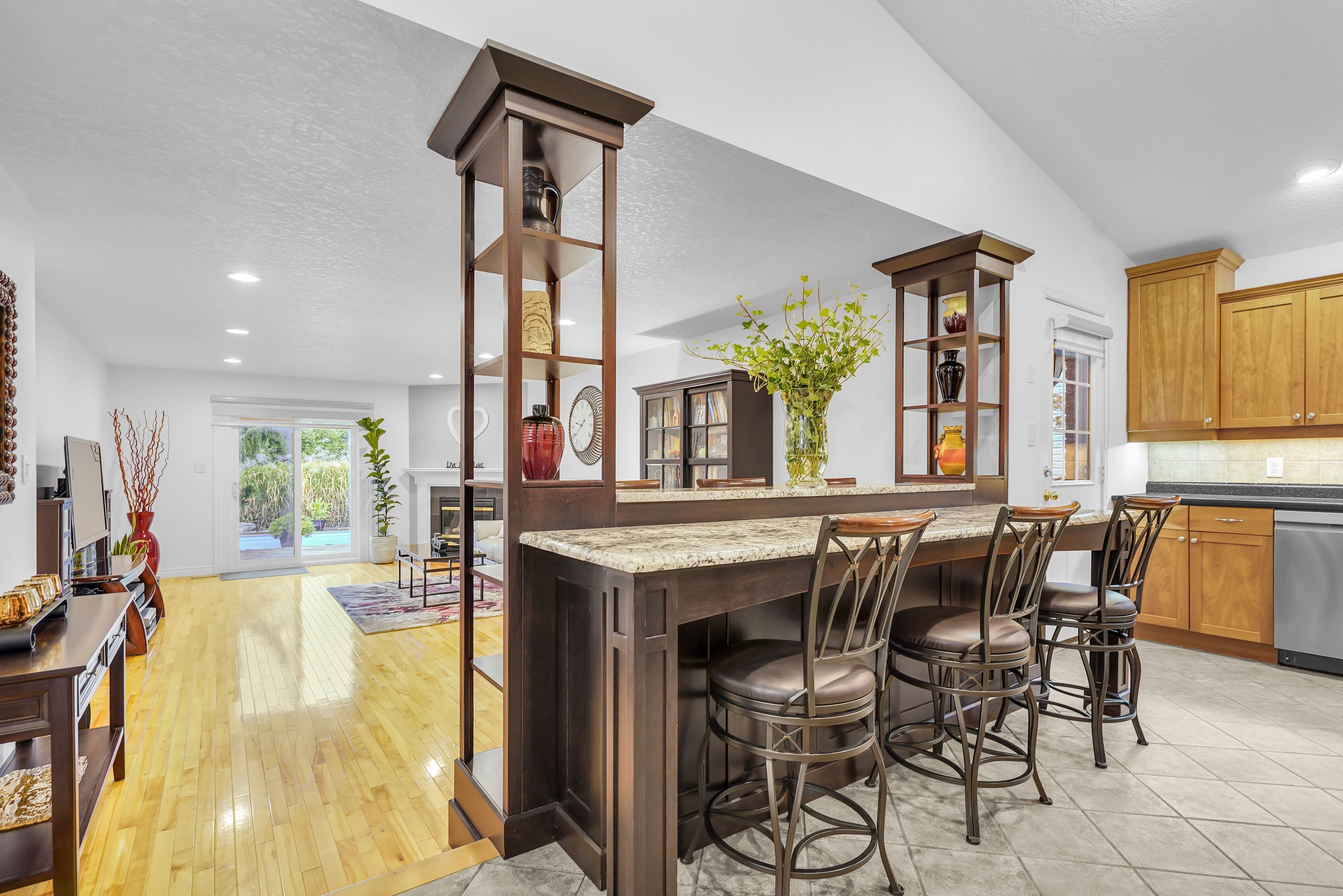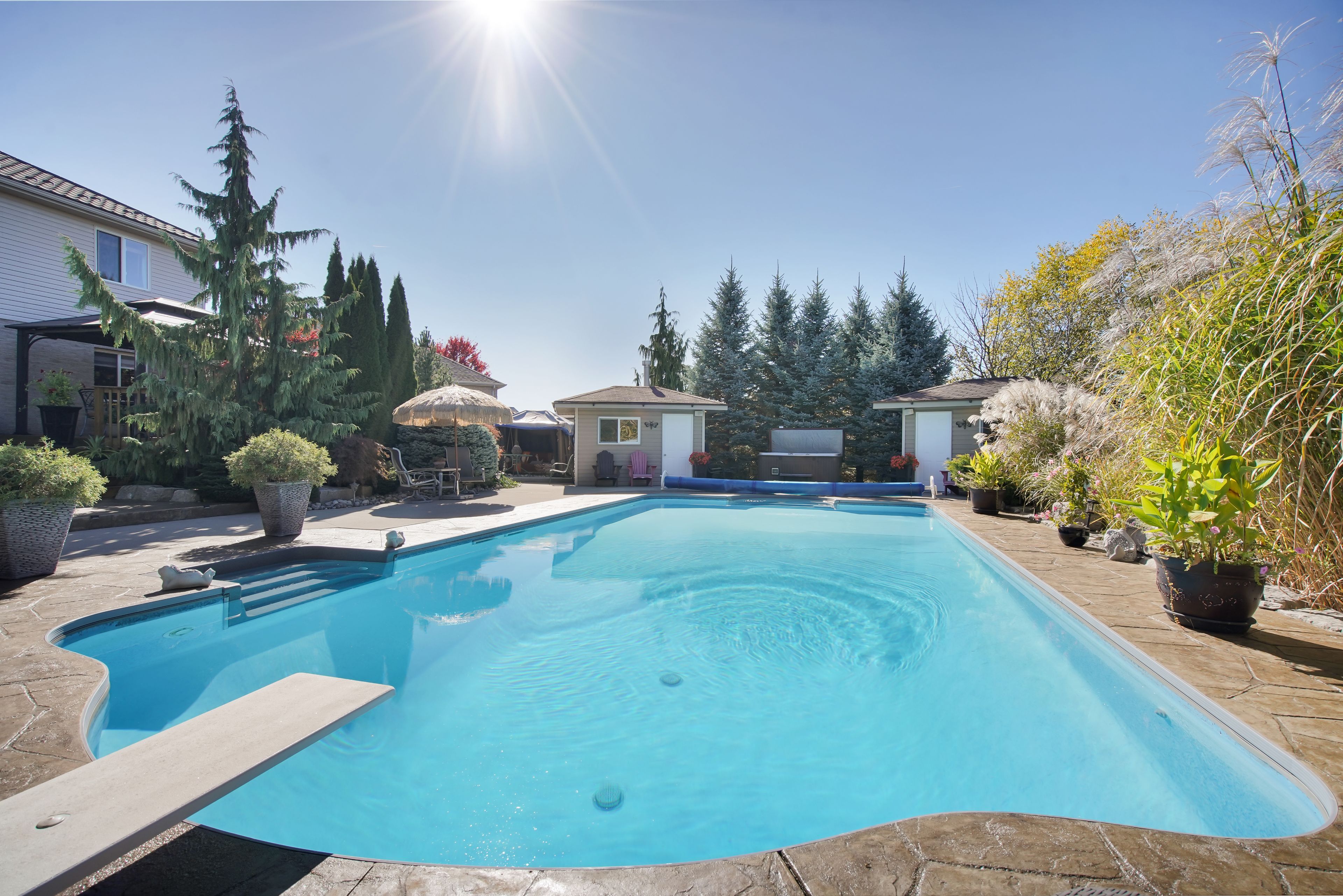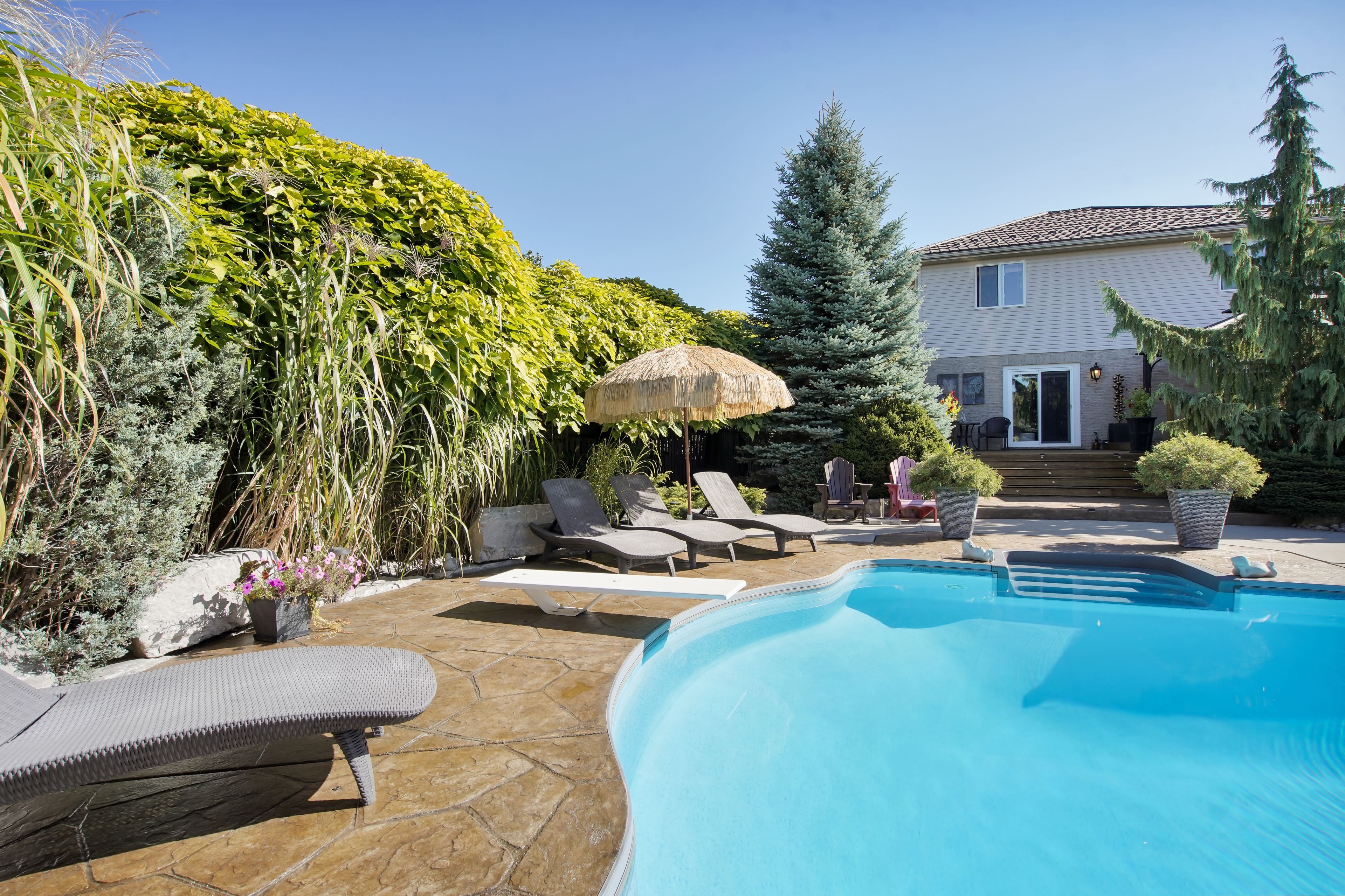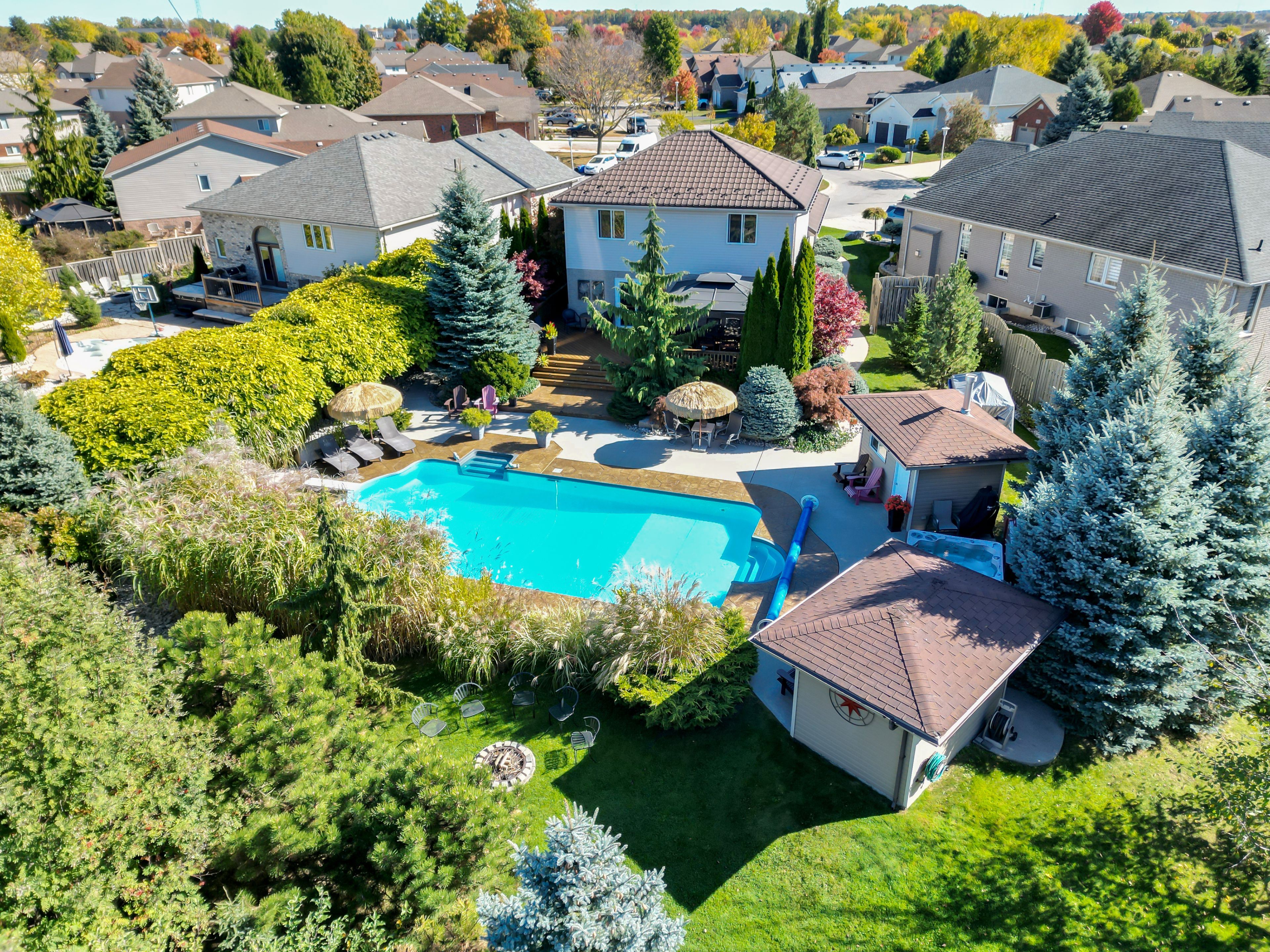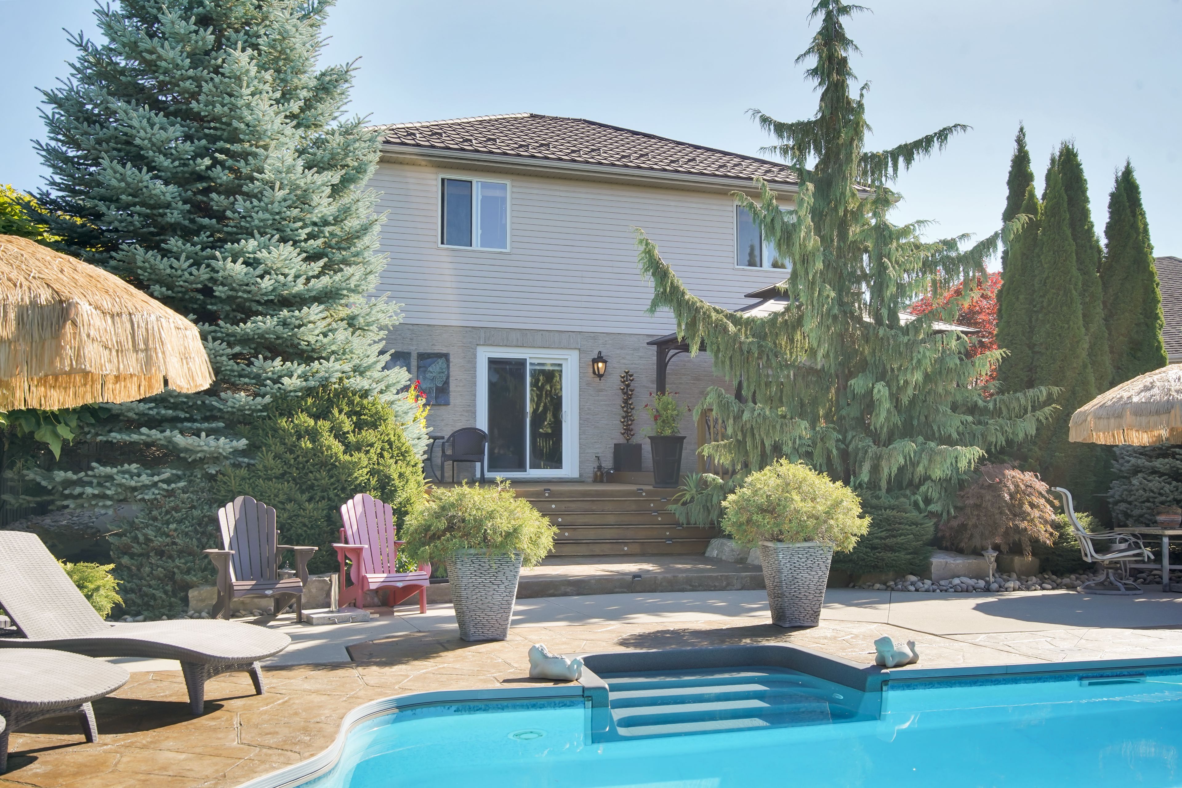 Set on nearly 0. 4 acres-the second-largest lot in the prestigious summerside community-this exceptional residence offers unmatched privacy, tranquil surroundings, and professional landscaping. The property boasts one of the area's most stunning pools, creating a private outdoor sanctuary. Located on a spacious cul-de-sac, this meticulously maintained home combines elegant design with expansive outdoor living, ideal for those seeking both luxury and seclusion. Spanning over 2,200sqft, the thoughtfully designed split-level layout seamlessly blends modern elegance with practicality. Upon entry, a grand tiled foyer with stylish pillars, soaring vaulted ceilings, and ambient pot lighting flows into a formal dining area. The chef's kitchen features rich cherry cabinetry, ceramic tile flooring, a matching backsplash, and high-end stainless steel appliances with a gas stove-perfect for culinary enthusiasts. Ample counterspace and a granite-topped eat-in breakfast bar overlook the sunken family room, which boasts hardwood floors, a cozy gas fireplace, and a walkout to a large wraparound deck-perfect for entertaining. Adjacent to the family room is a spacious office or fourth bedroom, conveniently situated beside a full bathroom with a walk-in shower. Upstairs, three generous bedrooms include a luxurious master suite with a walk-in closet and a cheater ensuite with double sinks. The third-floor bathroom offers a shower/tub combo with tiled floors and a dual vanity. Outside, enjoy your private backyard retreat featuring a saltwater pool, hot tub, and a fully equipped pool house with a toilet and shower-ideal for relaxing or hosting gatherings. Additional amenities include a fire pit + 2 additional utility sheds. Radiating warmth and harmony, this home is a perfect sanctuary-where love and laughter thrive. Whether sipping coffee poolside, sharing meals by the fire, or relaxing under the stars every moment here reminds you that true luxury is feeling at peace where you are!