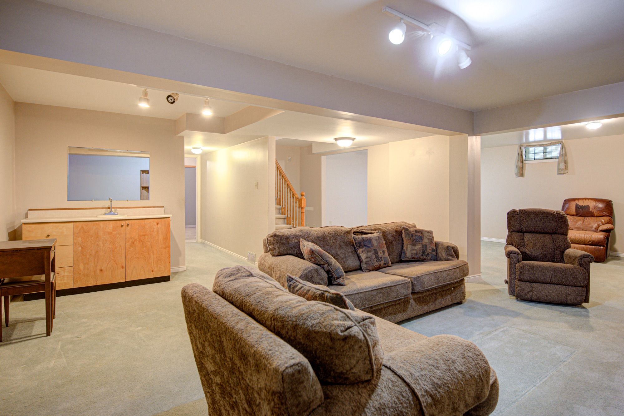 • Bright living room filled with natural light makes it welcoming.