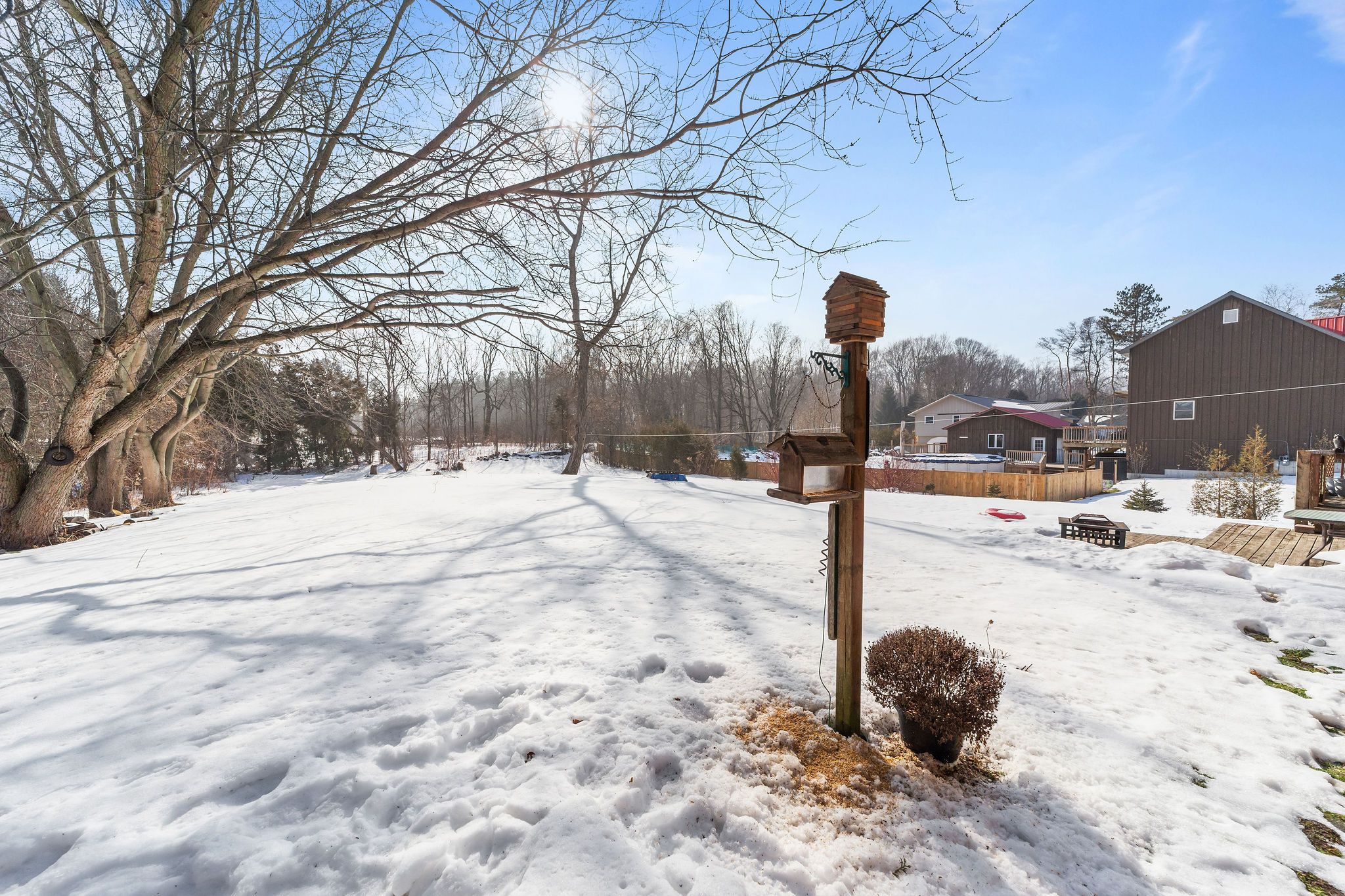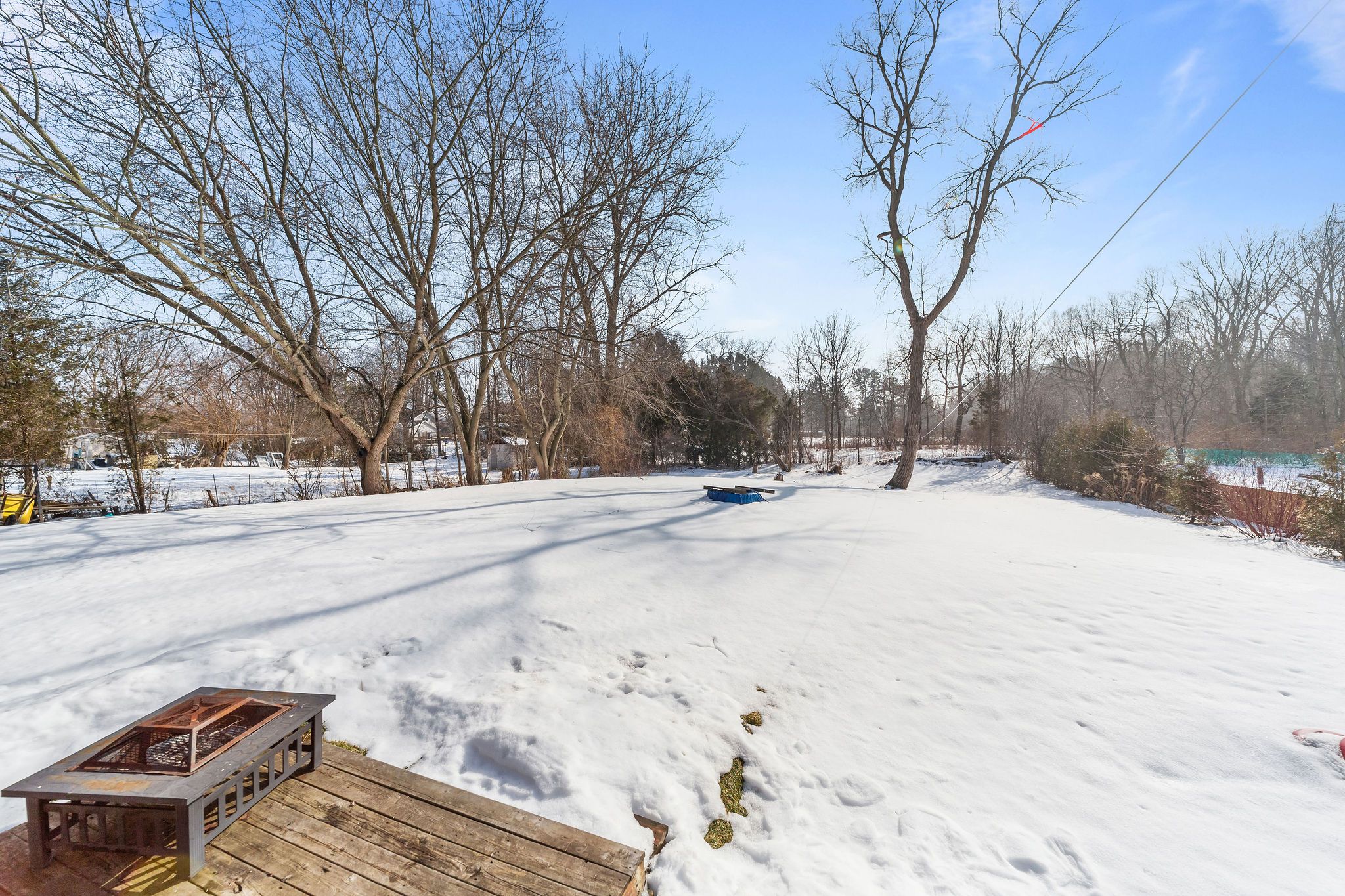 • Deck overlooking backyard, great for summer BBQs and outdoor relaxation.
