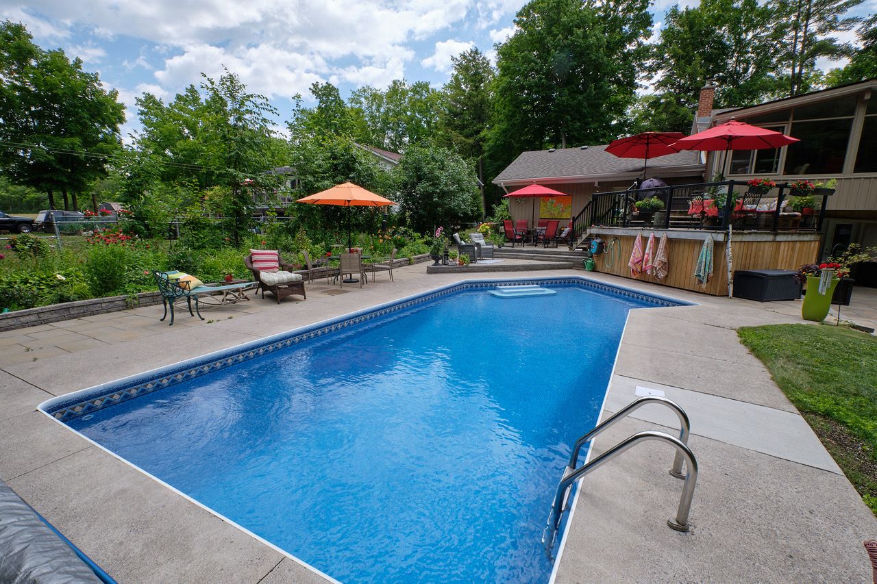 Welcome to 494 5th line road in selwyn, a beautifully maintained 3-bedroom, 2-bath bungalow set on just over half an acre in one of the area's most sought-after locations, only 10 minutes from downtown peterborough and a short 2-minute walk to public access on chemong lake. The main floor features vaulted ceilings and hardwood throughout, creating a bright and open living space. The custom kitchen is designed for both everyday living and entertaining, offering a cooktop, double wall ovens, island with seating, and seamless flow into the living areas. Two gas fireplaces add warmth and character on the main level, while a wood-burning fireplace anchors the finished basement. A four-season sunroom with french doors opens to the backyard, leading to beautiful decking and a dedicated bbq area. The walkout basement offers excellent additional living space with a spacious family room, full bathroom, laundry room with separate walkout, ample storage, and a workshop area. Outside, enjoy a private backyard oasis featuring a pool, beautifully landscaped gardens, and multiple poolside areas perfect for relaxing or entertaining. A two-vehicle garage completes this exceptional home, offering comfort, outdoor living, and an unbeatable location near the lake.