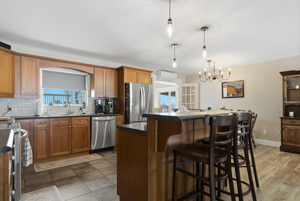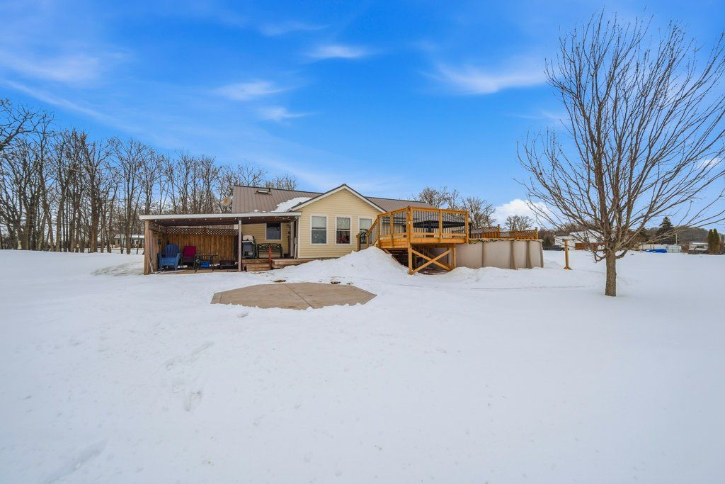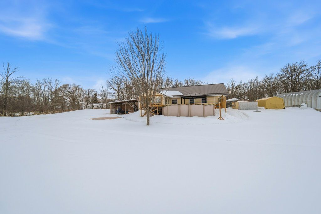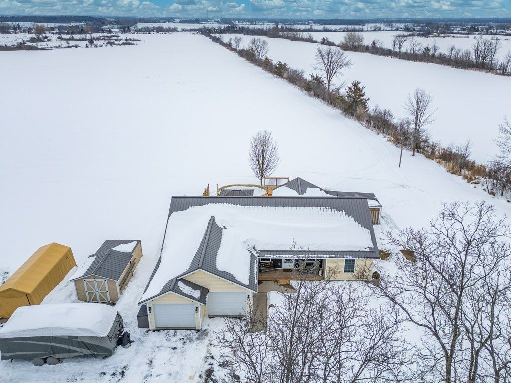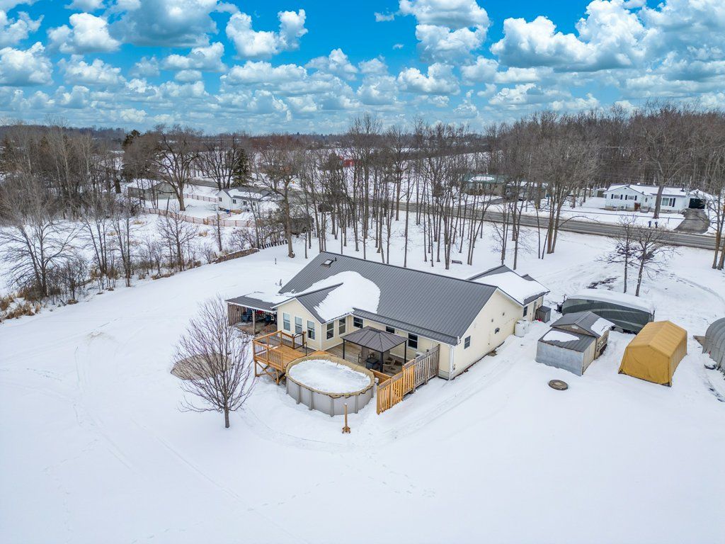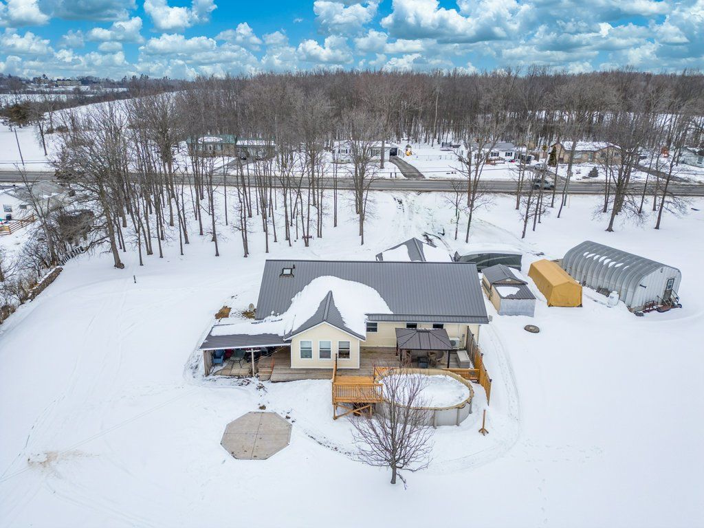 Located just south of napanee, this well-maintained one-storey, slab-on-grade home offers comfortable country living with open views of plentiful farmland to the rear. Built in 2006 and finished with low-maintenance vinyl siding, the home provides practical design and efficient living all on one level. Inside, you'll find three bedrooms and two bathrooms, thoughtfully laid out to accommodate both family life and entertaining. The dining area opens into a bright sunroom that overlooks the back deck and pool area, creating a seamless connection between indoor and outdoor spaces and offering a peaceful setting to relax while taking in the surrounding countryside. In-floor radiant heat runs throughout the home, delivering consistent warmth and comfort year-round, and a central vacuum system is already installed for added convenience. Beyond the home, the property also features a quonset hut equipped with propane heat, providing excellent space for storage, hobbies, or workshop use. With its combination of functional outbuildings, efficient construction, and scenic rural views just minutes from town amenities, this property presents a fantastic opportunity to enjoy country living close to napanee.