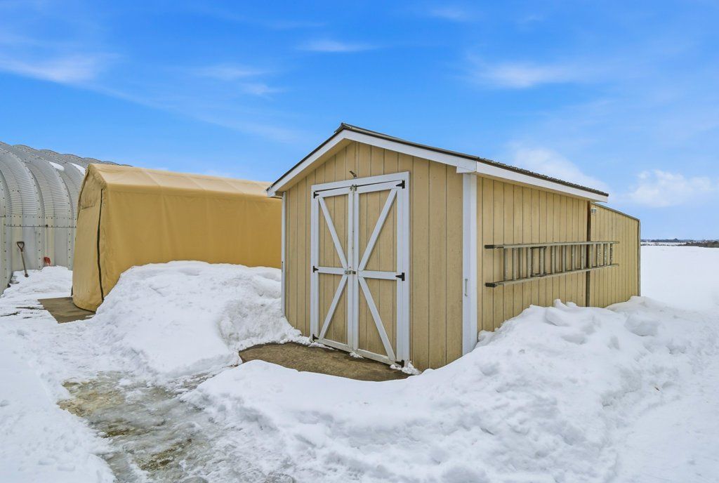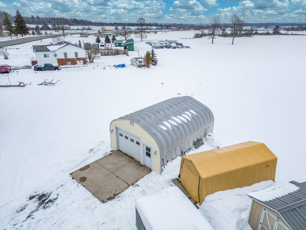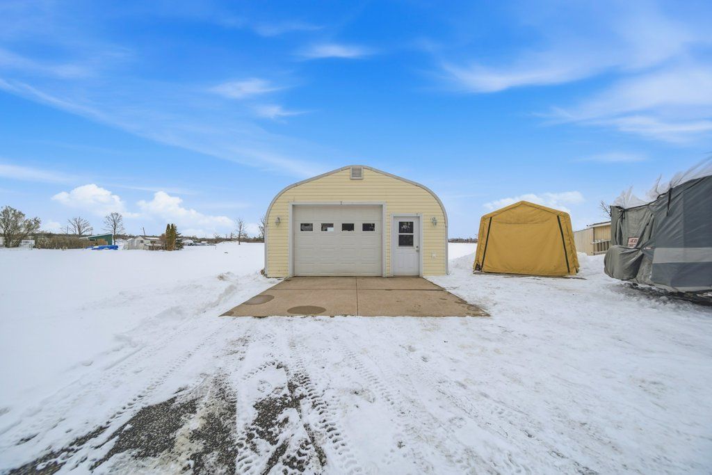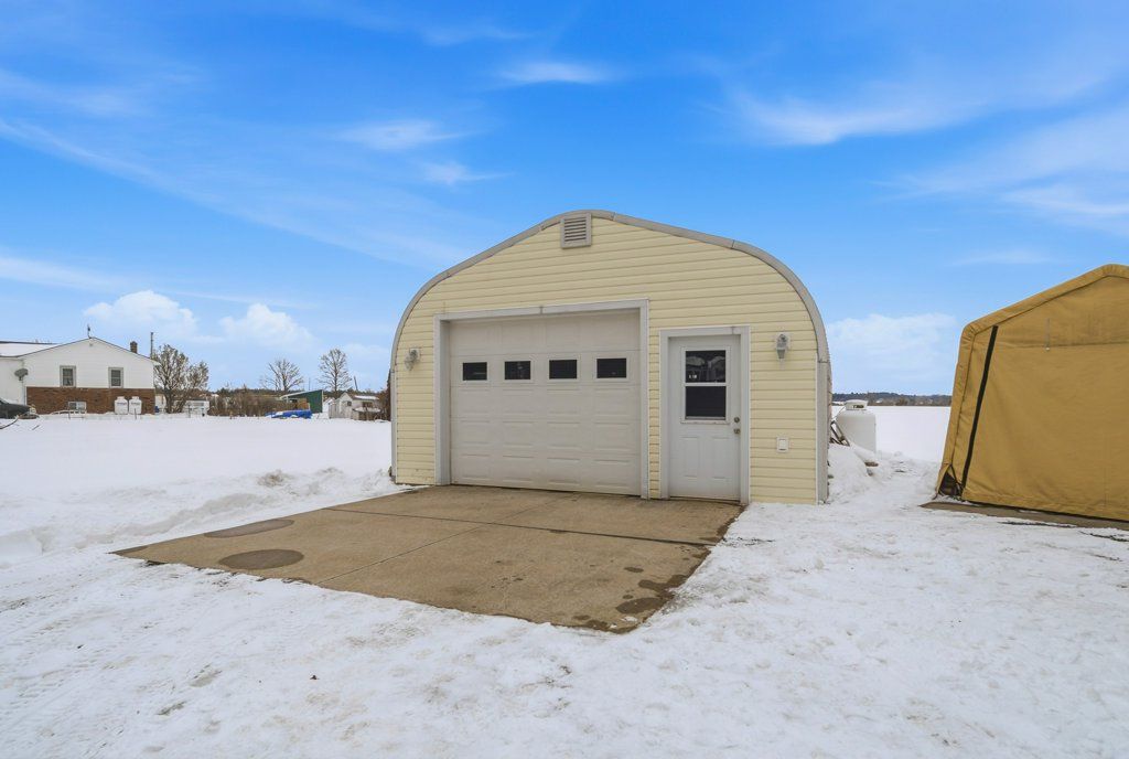• Versatile Quonset hut offers storage, hobbies, or workshop space.