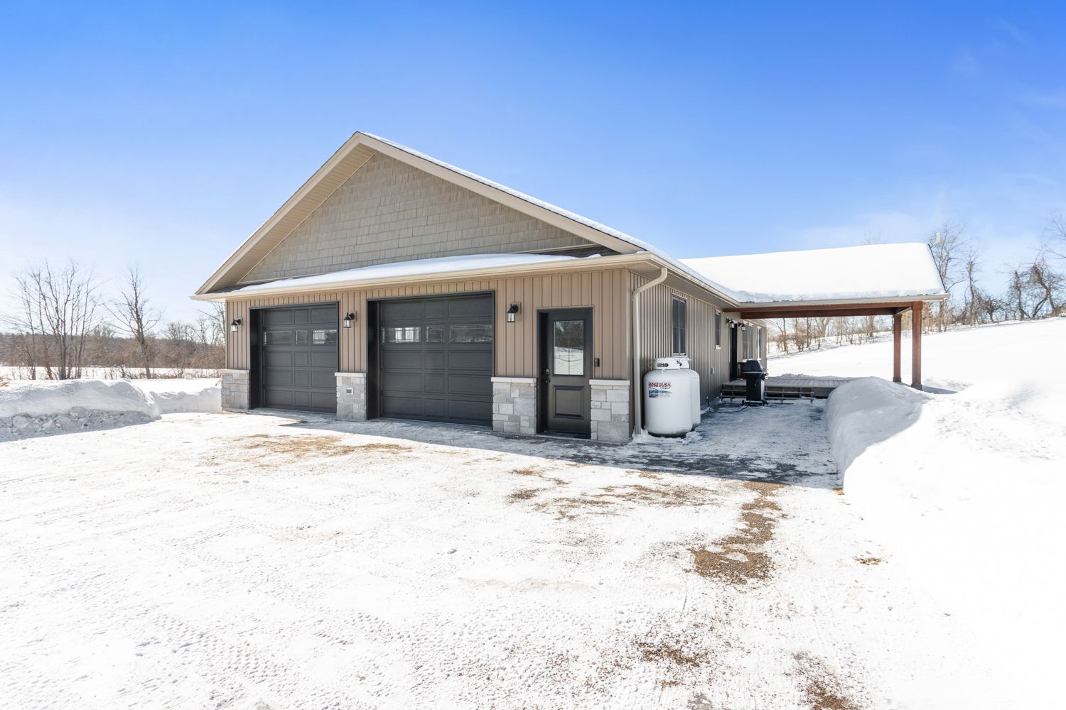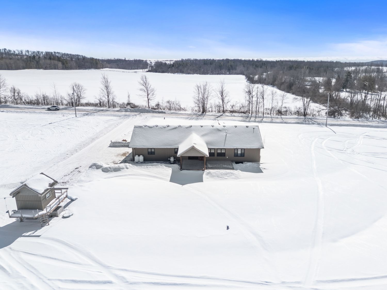 A picturesque setting, close proximity to warkworth, castleton and surrounded by recreational areas, schools, parks and a short drive to campbellford & hastings. A well planned interior layout, impressive foyer welcomes you with views through the living space, vaulted ceiling and warming fireplace with stone surround/mantel. Side entry through the attached 3 car garage, leads you through a spacious mudroom/laundry area into the bright, well equipped kitchen with oversized quartz island and designated dining area. Walk out to the back deck private yard with hillside/treed views and plenty of outdoor space to enjoy or expand landscaping should you desire. Large primary suite with full bathroom, walk-in closet and private views of the countryside, 2 additional well appointed bedrooms and a full bathroom complete the main level. Partially finished basement with additional bedroom, bathroom, living area and an exceptional amount of storage spanning the entire basement and suspended garage floors creating additional square footage. Access from the basement can be accommodated into the garage for further development or addition of in-law suite. A great deal of thought went into the construction of this home, wired for generlink, additional electrical space, ample storage, open interior layout and a classic facade, appealing to many buyers, eager to set up roots in beautiful northumberland county.