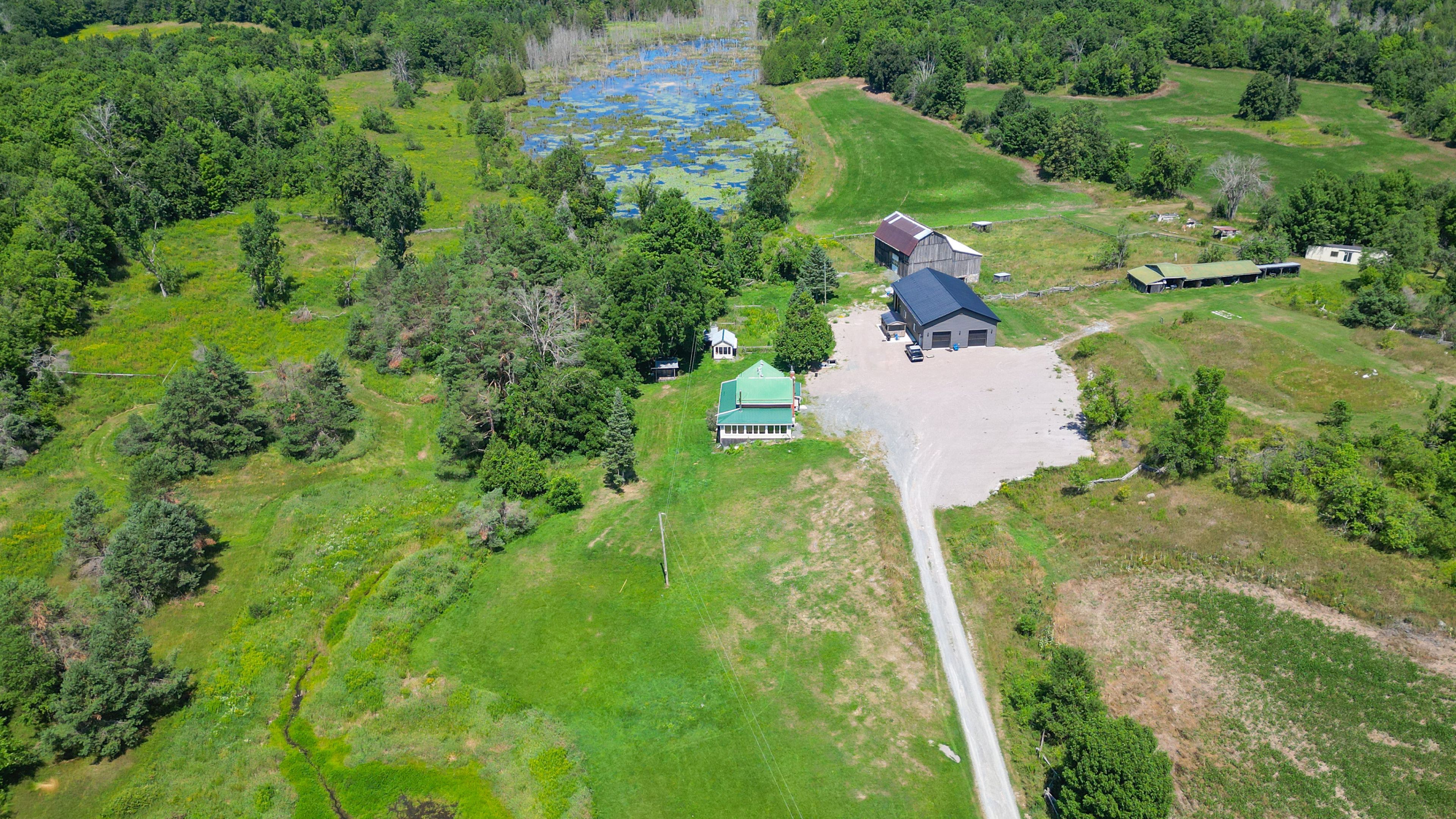 Looking for a hobby farm? How about one with 168 acres!!! ! Privacy abounds with this property, located at the end of a dead end road. Accessed by a long driveway and leads up to this brick farmhouse dating back to 1840. Lots of open parking and leads up to the stunning 3 yr old 2500 sq ft shop/man-cave/garage with heat, a/c, 3 pc bath and 3 overhead doors that are 10 ft high. This century home has been lovingly renovated but retains the original charm of years gone by. Enter through a 4 season mudroom and into the kitchen with a large center island, custom stone backsplash, ample cupboard storage space and hardwood floors. The main level offers a cozy living room with a woodstove, bedroom, bathroom with custom stone shower, laundry and a wrap around sunroom overlooking the pond and yard. The second floor of this beautiful home contains two bedrooms and an open area which could be used as an office or sitting room . In addition there is a 2 story barn with hydro in good condition, stalls in the lower level for animals and additional outbuildings. The land offers a mix of pasture, open fields, mixed bush plus wetland. Lot of wildlife including, deer, turkey, geese and maybe the odd elk or moose. The trans canada trail is accessed right up the road if you want to go for a sled or atv excursion. Conveniently located off 62 hwy north of madoc, and a little over 2 hours to toronto or ottawa.