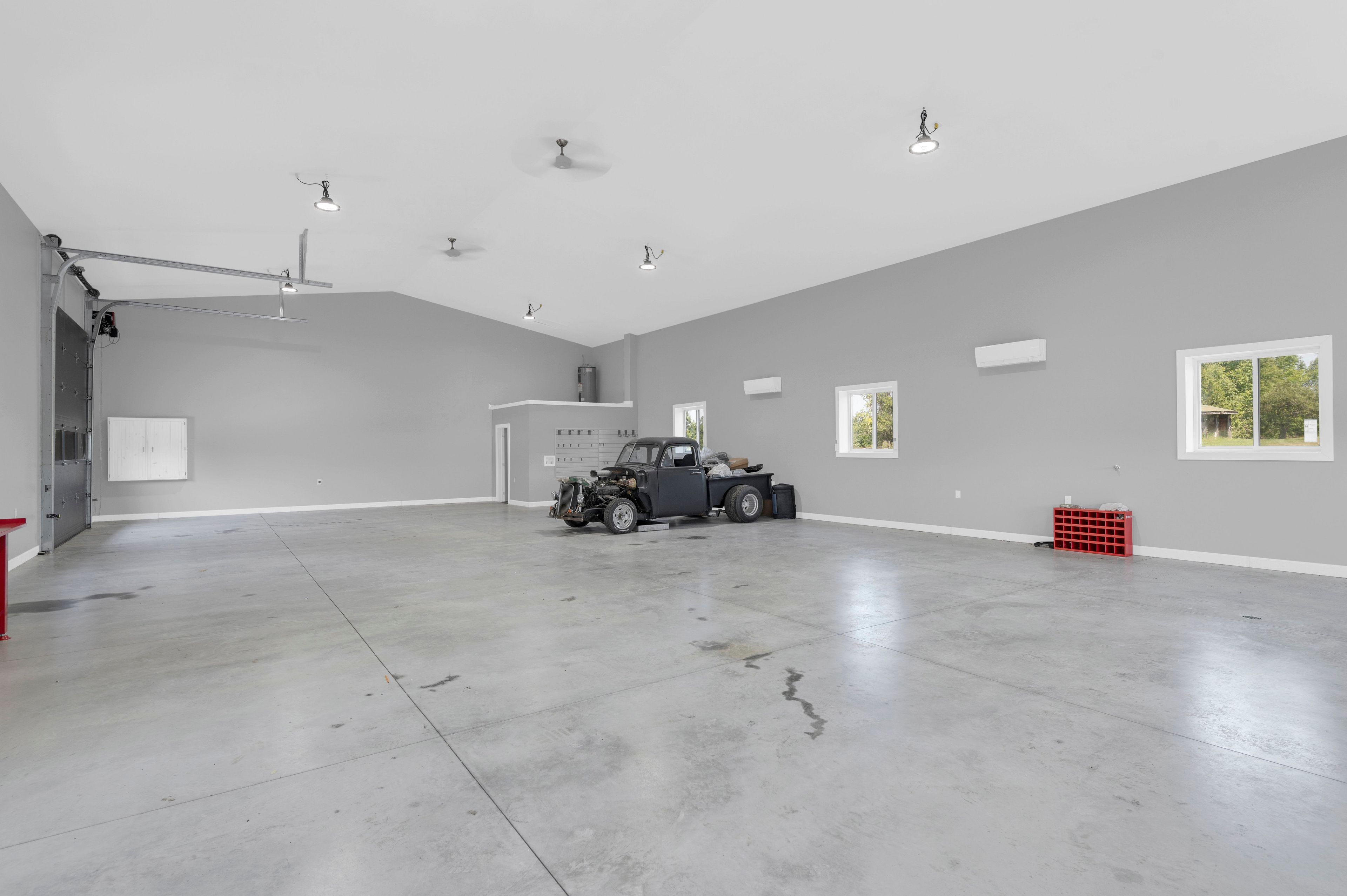 • Impressive 2500 sq ft heated garage/shop with A/C and multiple overhead doors.