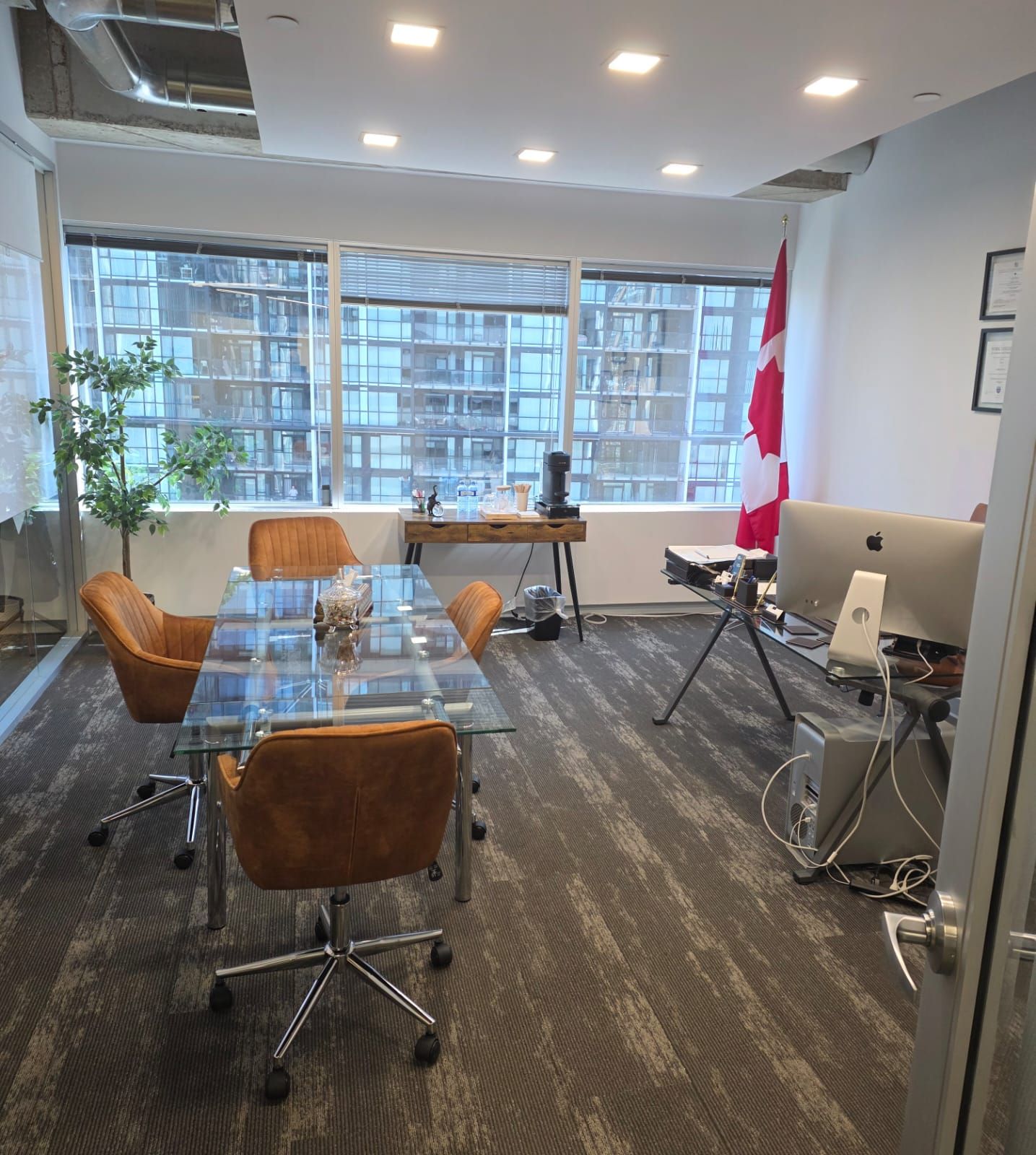 Prime turnkey office sublease in the heart of north york centre! Located at the prestigious 4950 yonge street, this bright, modern office suite offers a professional and sophisticated setting ideal for law firms, consulting practices, financial services, or boutique offices seeking a move-in-ready space. Approximately 2,000 sq ft of efficiently designed space featuring glass-enclosed private offices, a large executive corner office with stunning city views, a spacious boardroom, and an open reception/work area. The suite includes a contemporary kitchenette with built-in cabinets, sink, fridge, microwave, and coffee station, along with polished concrete floors in the common area and upgraded carpet tile in offices for a clean, modern look. Floor-to-ceiling windows flood the space with natural light, creating a bright and inviting work environment. Fully furnished option available with modern desks, chairs, and storage - ready for immediate occupancy. Building amenities include 24/7 access, professional on-site management, secure entry, and ample underground parking. Situated steps from the north york centre and sheppard-yonge subway stations, providing direct access to both line 1 & line 4. Surrounded by restaurants, cafés, retail, banks, fitness centres, and the north york civic centre. This highly accessible location offers exceptional convenience for clients and staff alike, with quick connections to downtown toronto and major highways (401 & 404). Don't miss this rare opportunity to secure a prestigious office address in one of north york's most sought-after business towers. Flexible sublease terms available. Perfect for professional users seeking a turnkey office solution in a vibrant, amenity-rich urban hub.