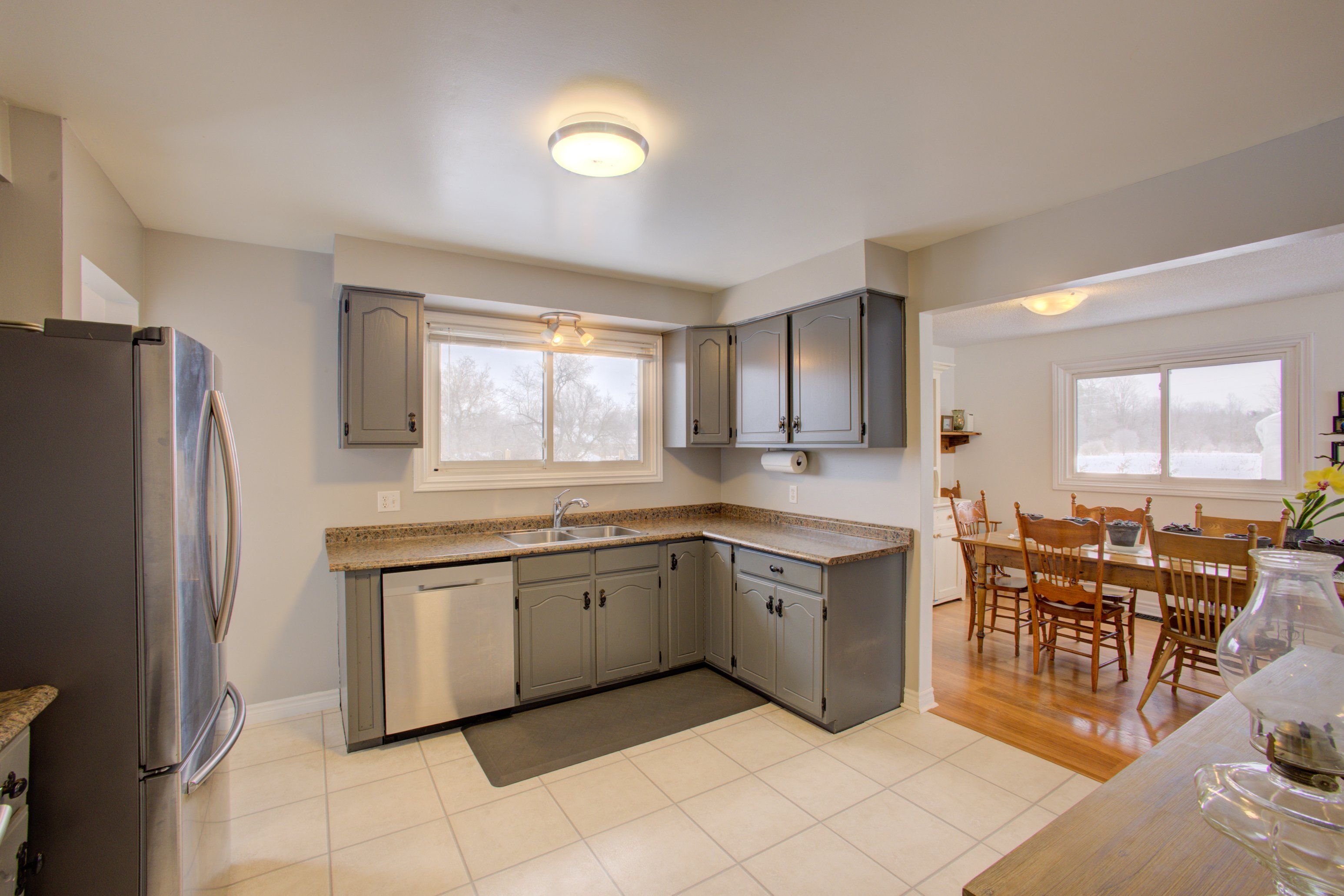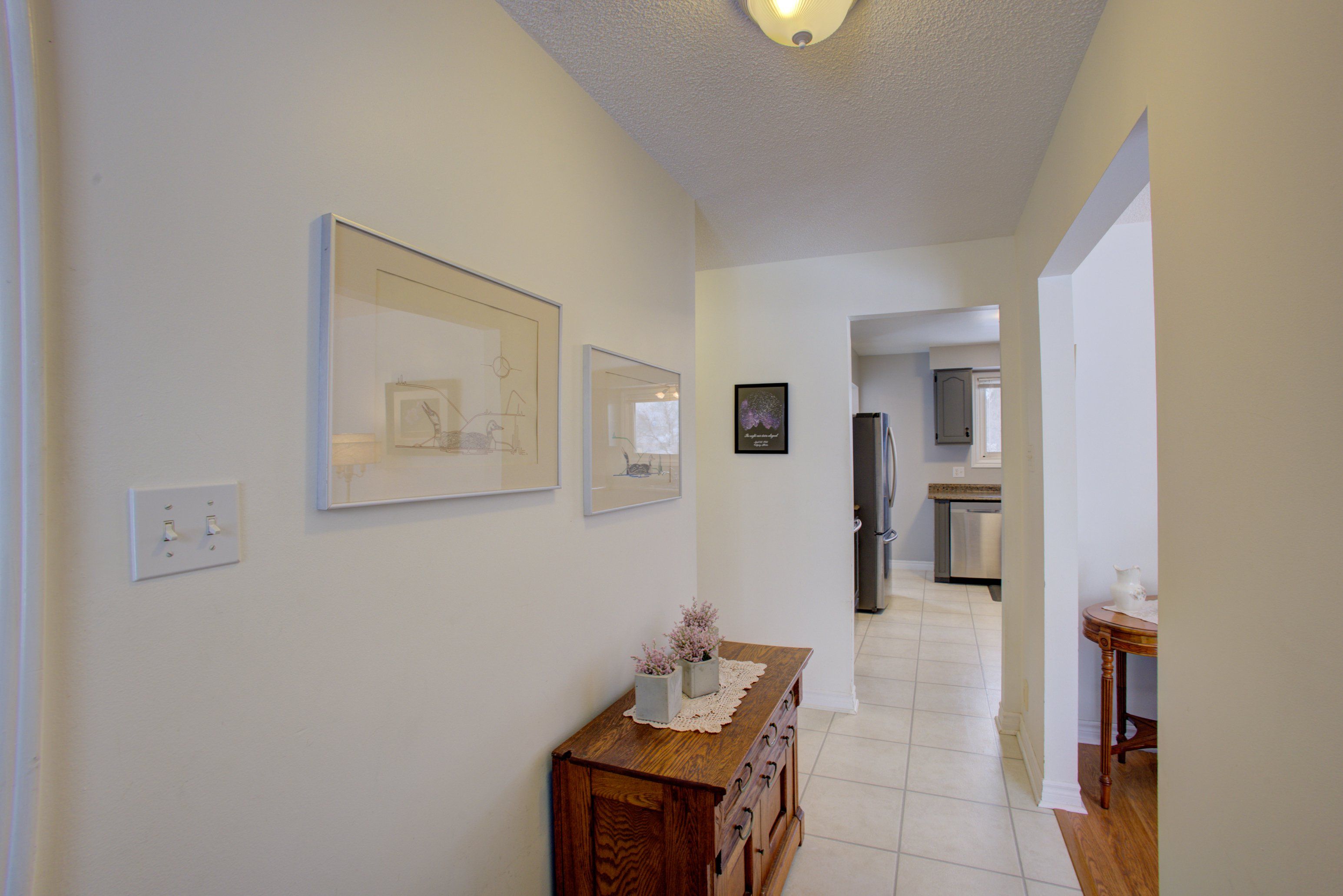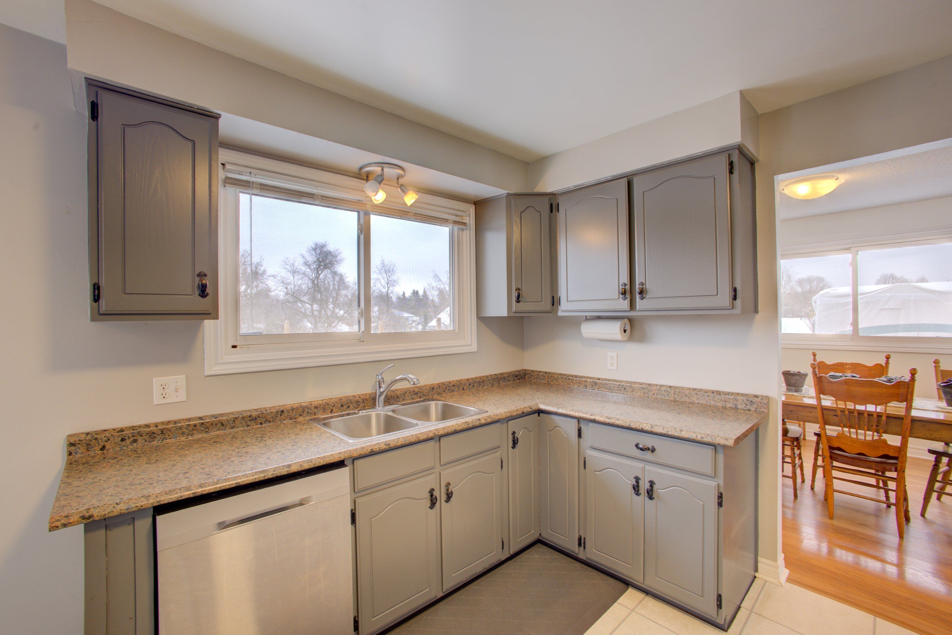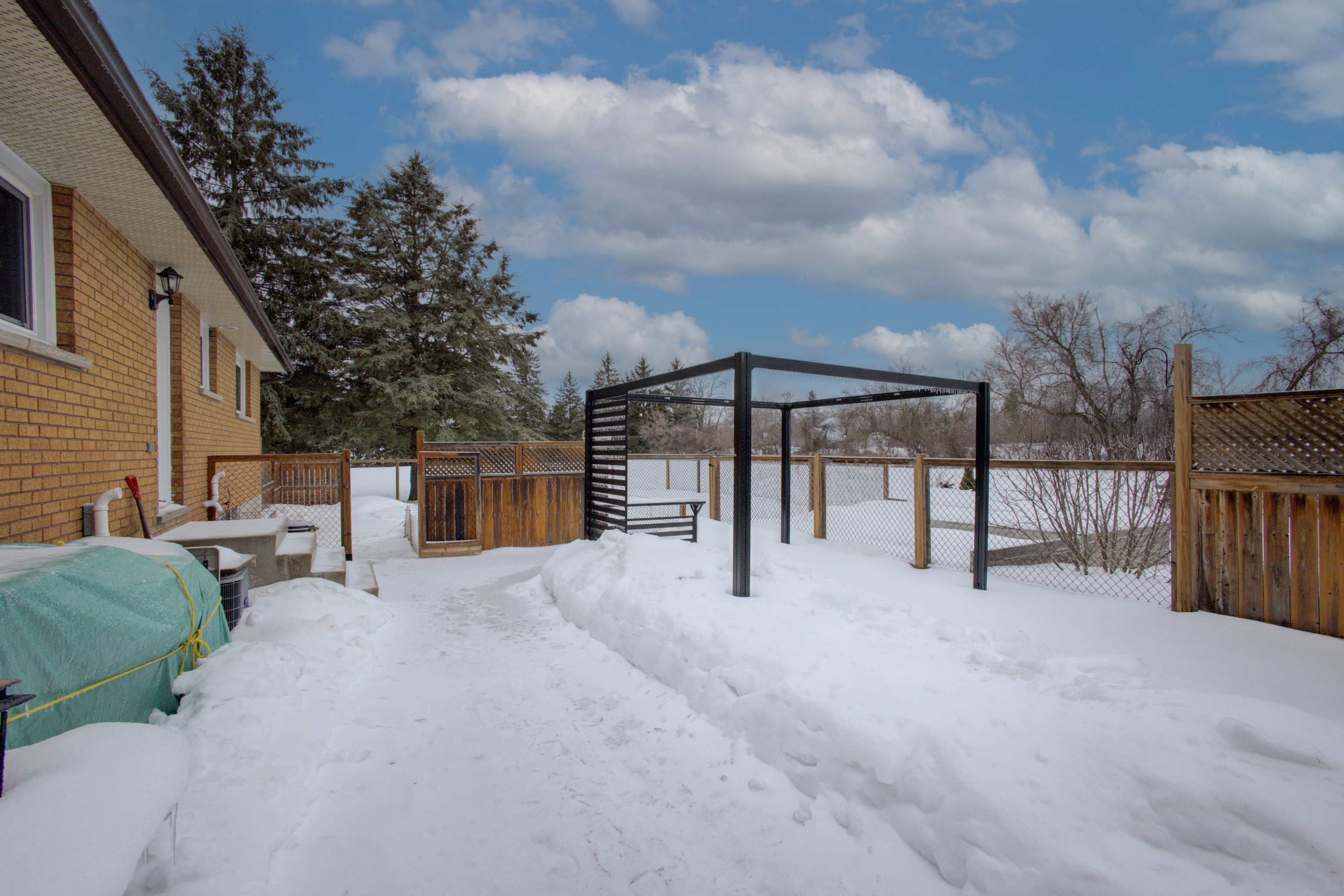 Nestled on a quiet dead-end road, this sturdy brick bungalow sits on a beautifully maintained half-acre lot-an ideal setting for a family or working professional seeking space and tranquility. Surrounded by landscaped grounds at both the front and back, the property offers a serene atmosphere with a walkout from the kitchen to a private patio, ample room for pets to roam, a large shed for storage or recreational equipment, and generous parking for guests and additional vehicles. From the moment you step through the front door, the home exudes warmth and comfort. The bright main living area features a large bay window, an open-concept dining space, and a spacious kitchen complete with built-in appliances, a pantry, and plenty of room to host family gatherings with ease. The primary bedroom is a peaceful retreat, highlighted by a beautifully renovated three-piece ensuite combined with convenient main-floor laundry, a large closet, and abundant natural light. Two additional well-sized bedrooms offer ample closet space and plenty of sunlight. The finished basement extends the living space with a large recreation or games room, a versatile storage area that could serve as a home office, as well as a utility room combined with another laundry area and workshop-providing flexibility to suit your lifestyle needs.