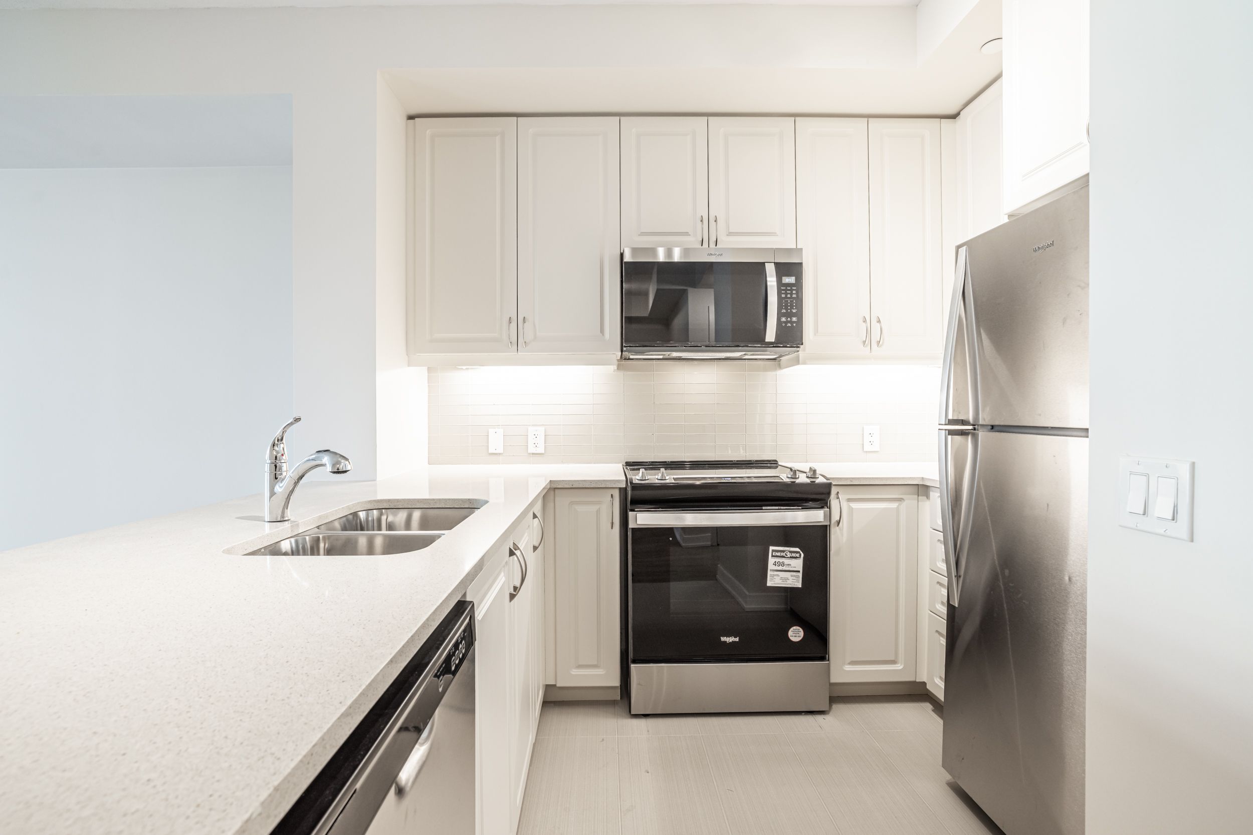 • Modern kitchen includes quartz countertops and stainless steel appliances.