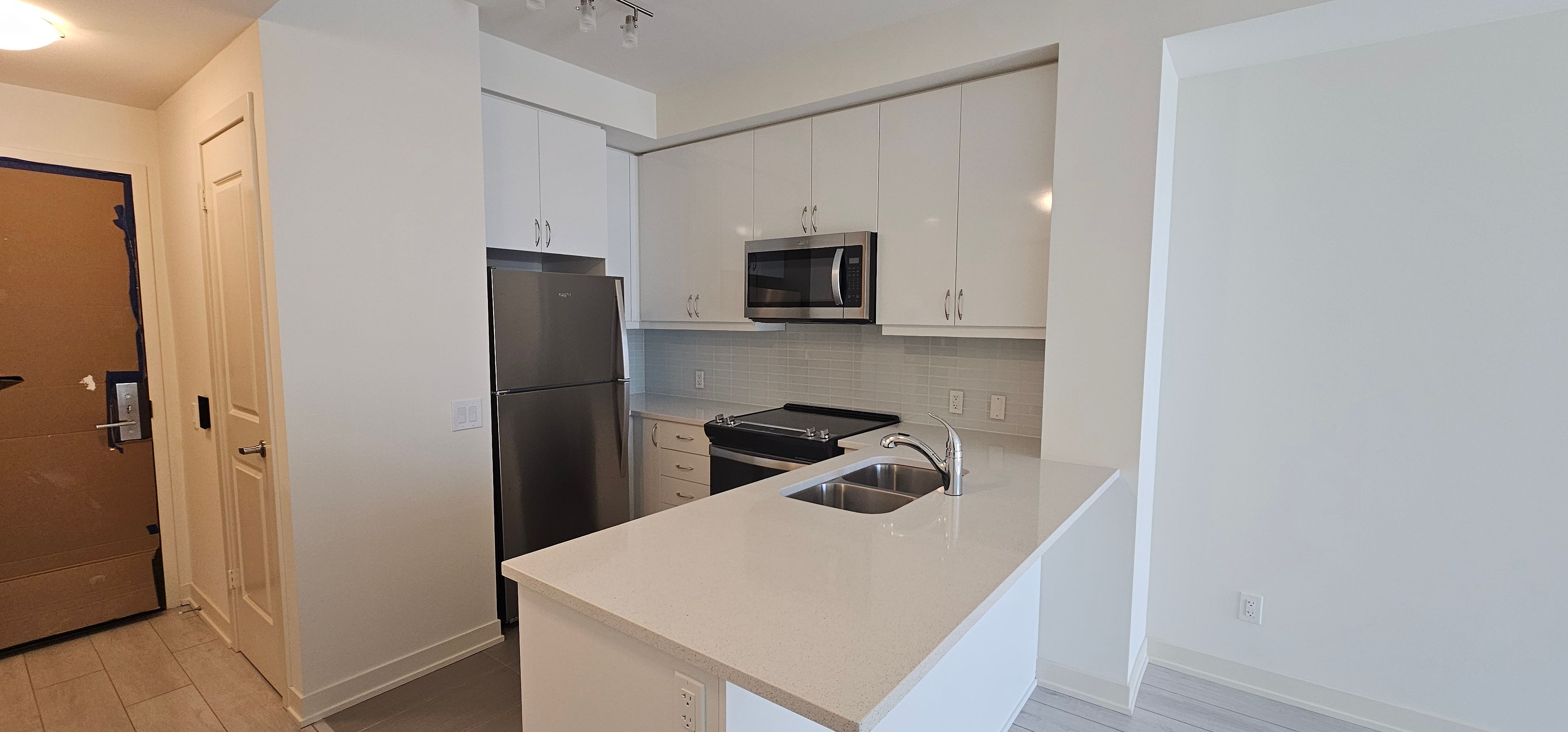 • Modern kitchen with quartz countertops and stainless steel appliances.
