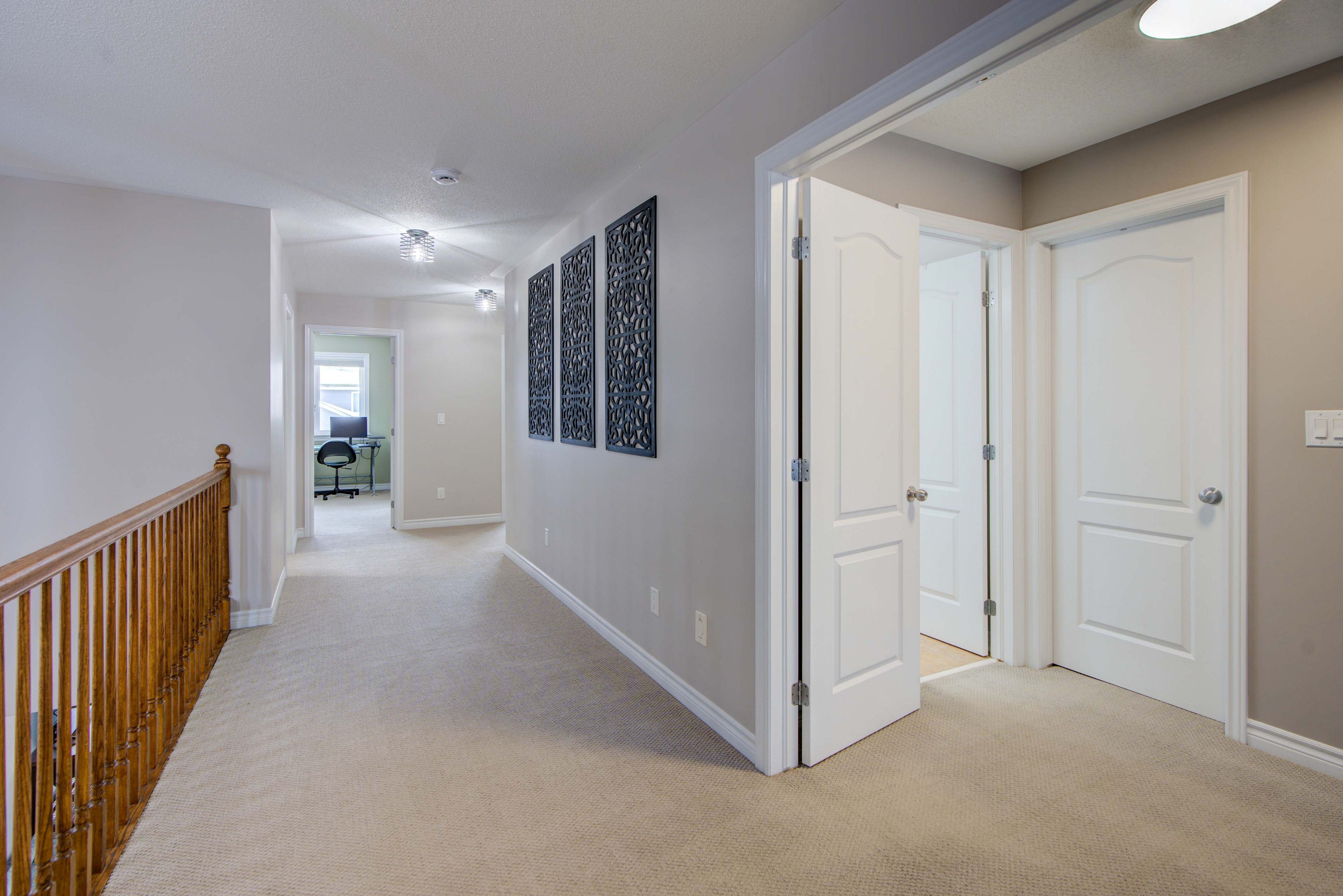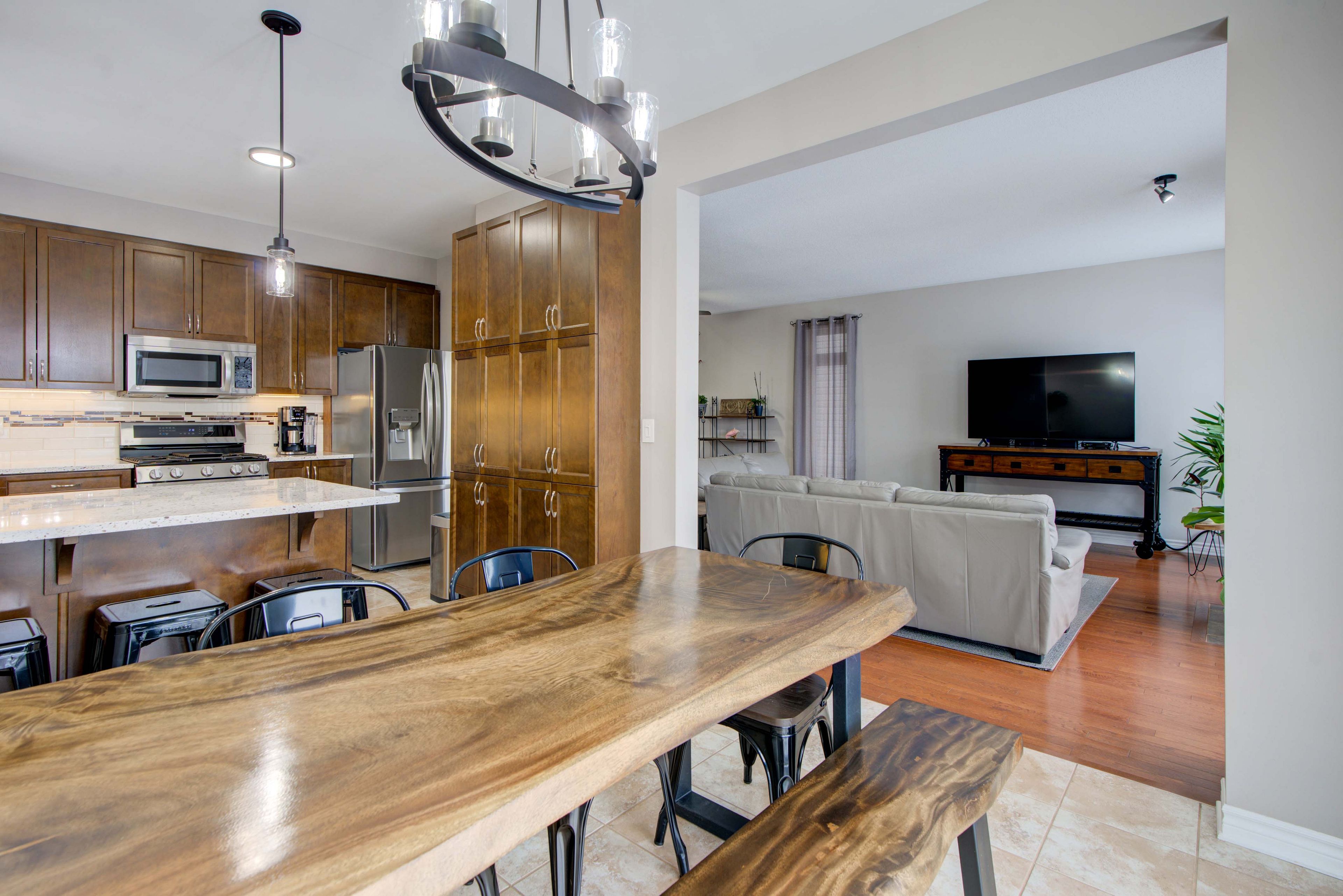 Welcome to this quality-built tamarack bristol model, ideally situated on a quiet cul-de-sac in one of kingston's most desirable east end communities. This impressive two-storey home offers a bright, open-concept main floor with 9-foot ceilings and a stunning bank of rear-facing windows that flood the space with natural light while showcasing peaceful views of the beautifully landscaped, low-maintenance backyard. Step outside to your private oasis featuring a gorgeous inground saltwater pool, perfect for summer entertaining and family enjoyment. The pump, filter, and salt system were all replaced in 2022, offering peace of mind for years to come. The kitchen is both stylish and functional with granite countertops, modern light fixtures, and a gas hookup for the stove, seamlessly connecting to the main living area. A main floor office/den adds flexibility for working from home or quiet retreat space. Upstairs, enjoy the convenience of second-level laundry, along with an oversized primary suite featuring elegant double french door entry and a spa-like ensuite bathroom. Three additional well-sized bedrooms complete the upper level. The main bathroom was updated in 2024, and new carpet on the stairs and second floor was installed in 2021. The fully finished lower level offers exceptional additional living space, including a fifth bedroom, exercise room, spacious recreation room, and ample storage, ideal for growing families or guests. Notable updates include a/c (2021), garage door opener (2021), and a new garage door (2025). A truly move-in-ready home offering comfort, quality, and lifestyle in a sought-after location. A must-see east end property