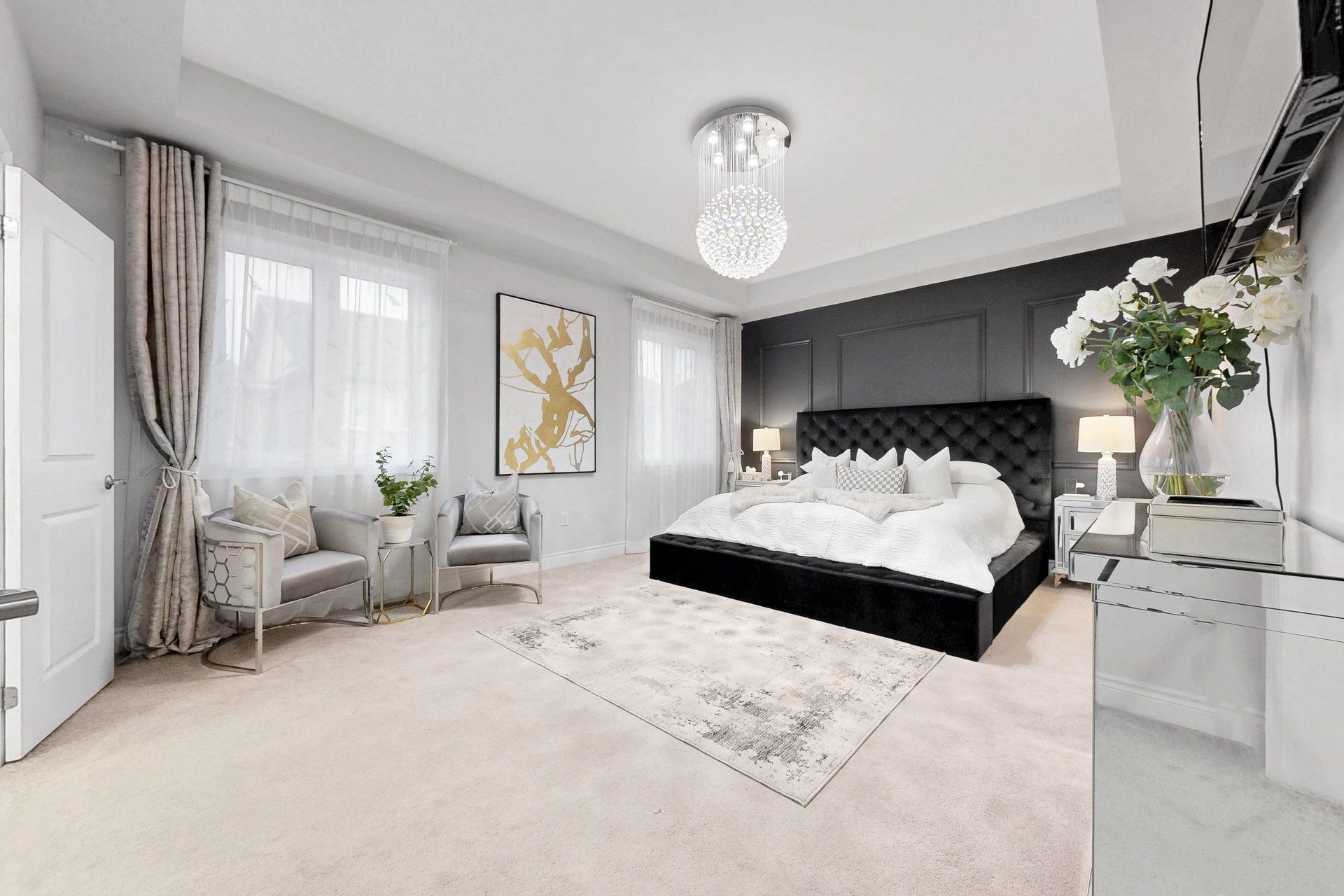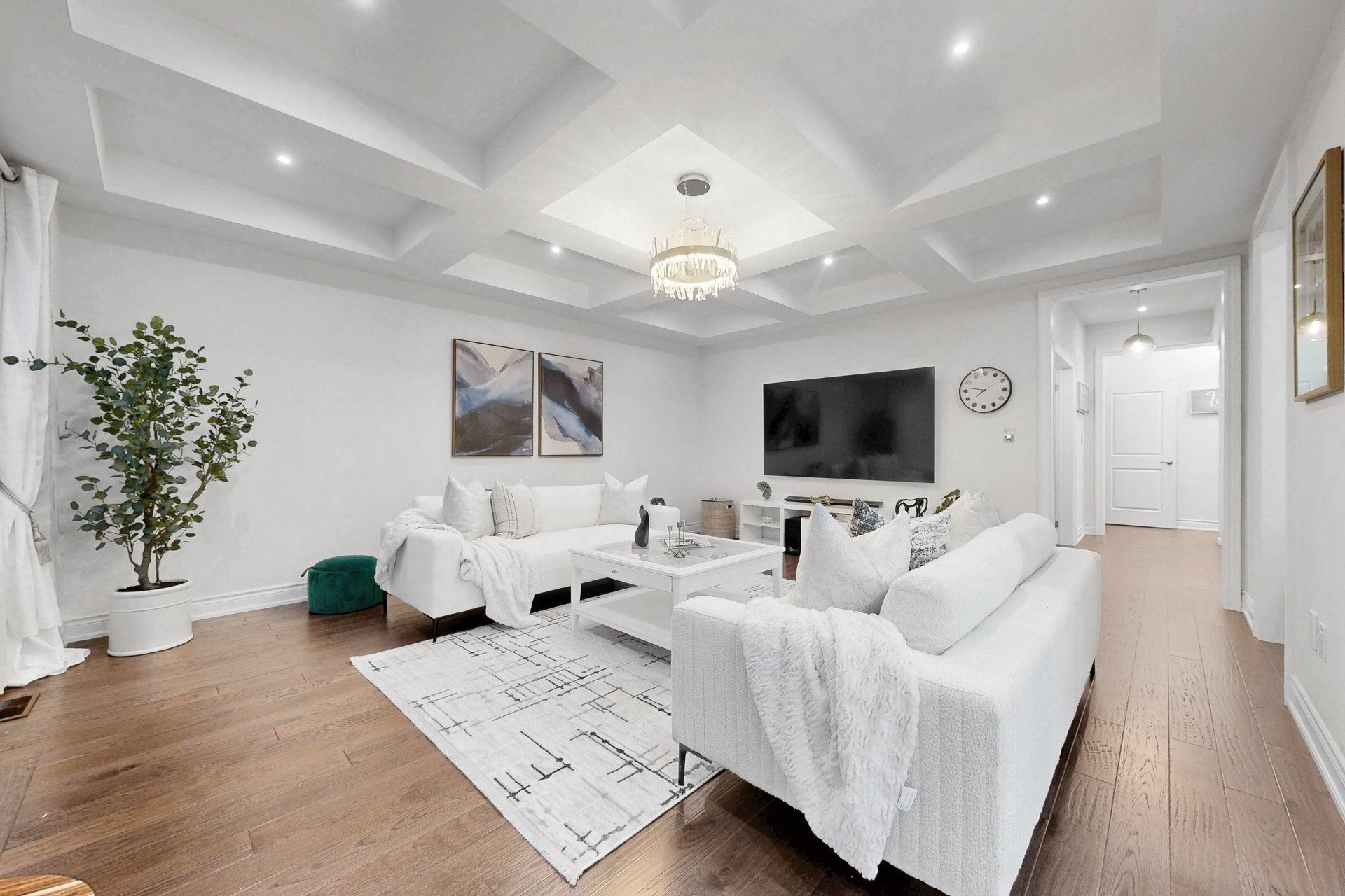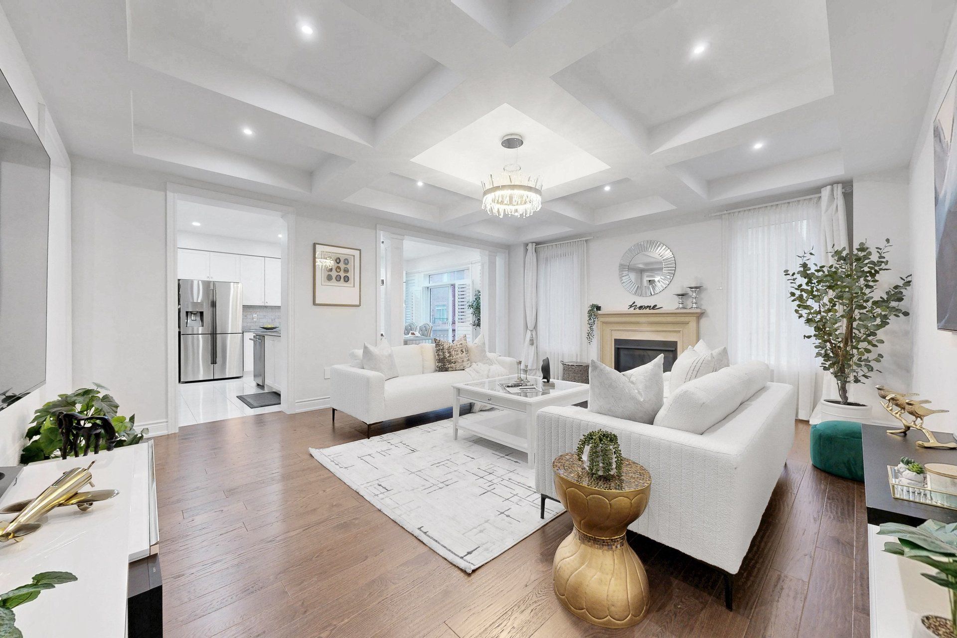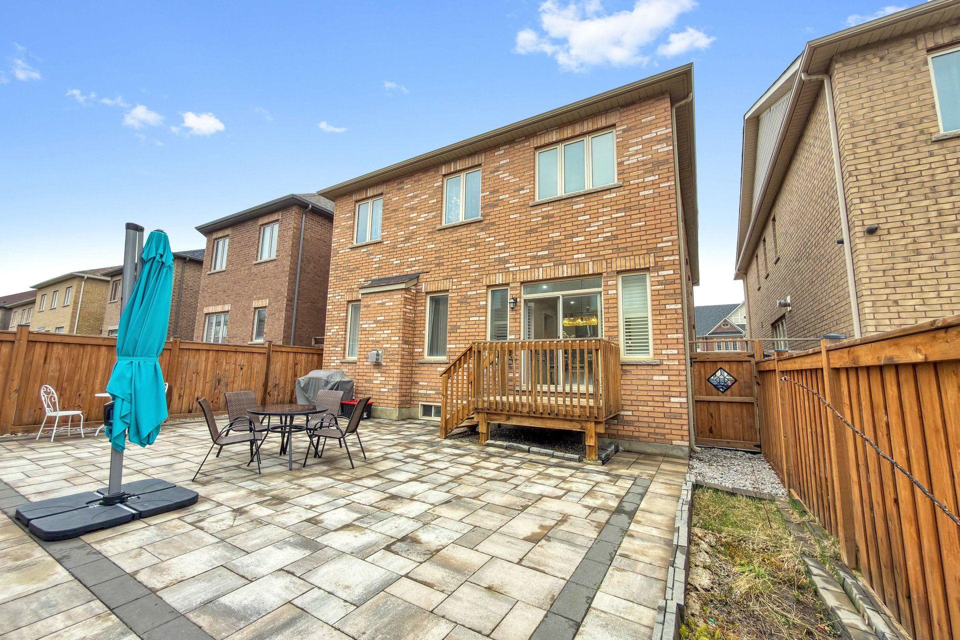One of the largest model offered by the builder. Welcome to this stunning 3,347 sq. Ft. Four-bedroom home inviting you into the perfect blend of elegance, comfort, and modern living. 10 ft coffered ceiling main level, waffle ceiling in living room and 9 ft ceiling upper level. Thoughtfully designed with spacious principal rooms and an open-concept layout, this home is ideal for both everyday living and entertaining. Step into a grand foyer that leads to bright and airy living and dining spaces, enhanced by large windows that fill the home with natural light. The gourmet kitchen features ample cabinetry, generous counter space, quartz countertop, thermador stove and dishwasher, walkout out to stone patio in the fully fenced backyard, and a seamless flow into the family room creating the perfect gathering place for family and friends. The upper level boasts four generously sized bedrooms, and a loft, including a luxurious primary retreat complete with upgraded spa-like ensuite and a huge walk-in closet. Additional bedrooms offer comfort and flexibility for growing family. Each room has its own walk in closet and ensuite and semi ensuite. Create your own personal space in the loft for music or reading. Custom exterior soffit lighting delivers a sophisticated look while enhancing nighttime visibility and security. Close to public, catholic and montessori schools, restaurants, transit, vaughan mills shopping, highways 427, 407, 400. Extremely well maintained and loved home.