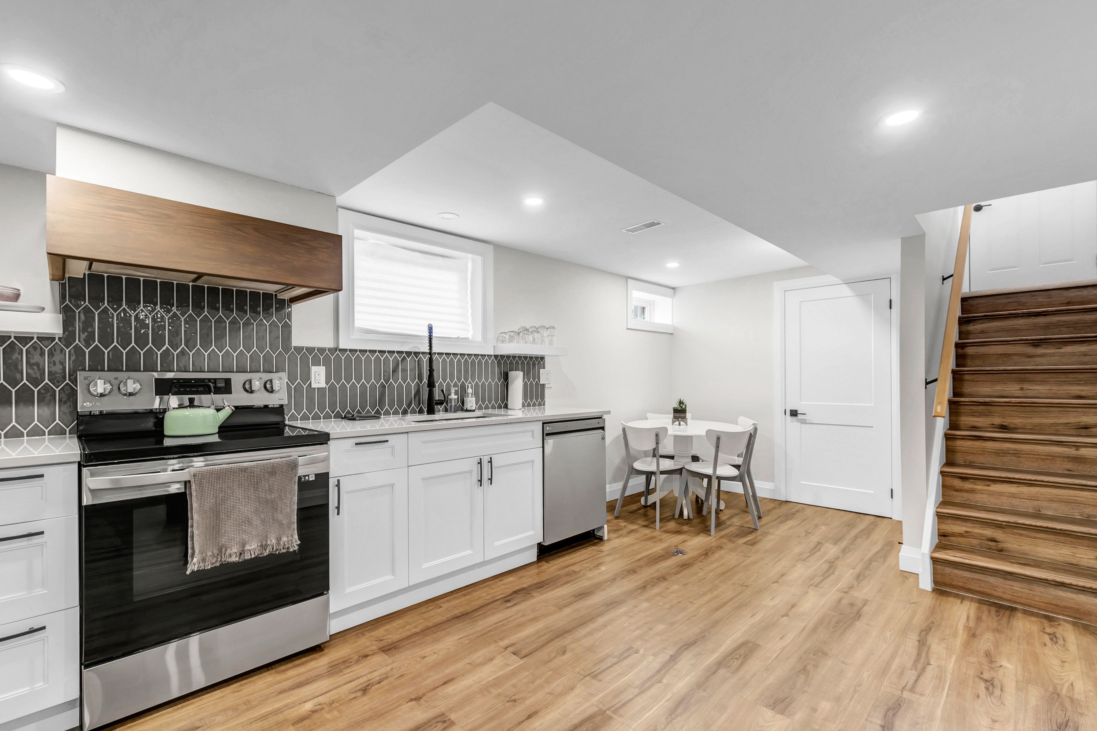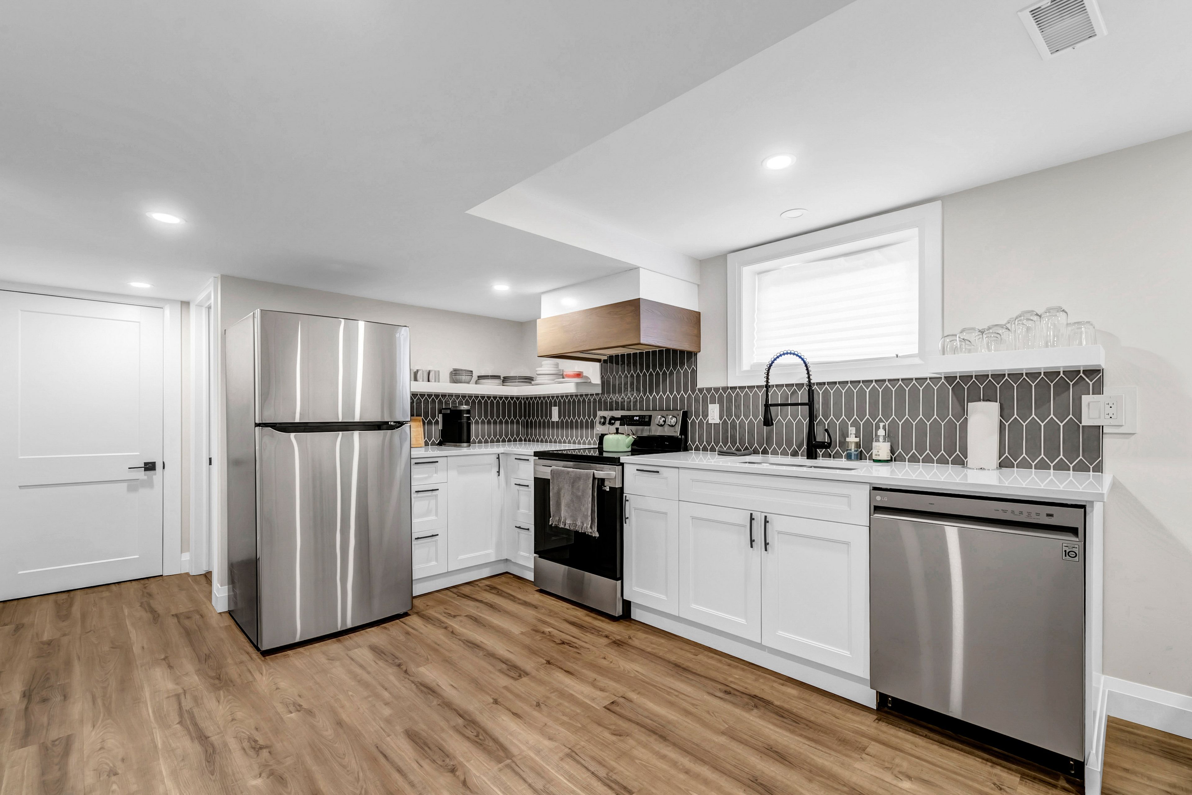 • Renovated two bedroom basement apartment with modern finishes throughout.