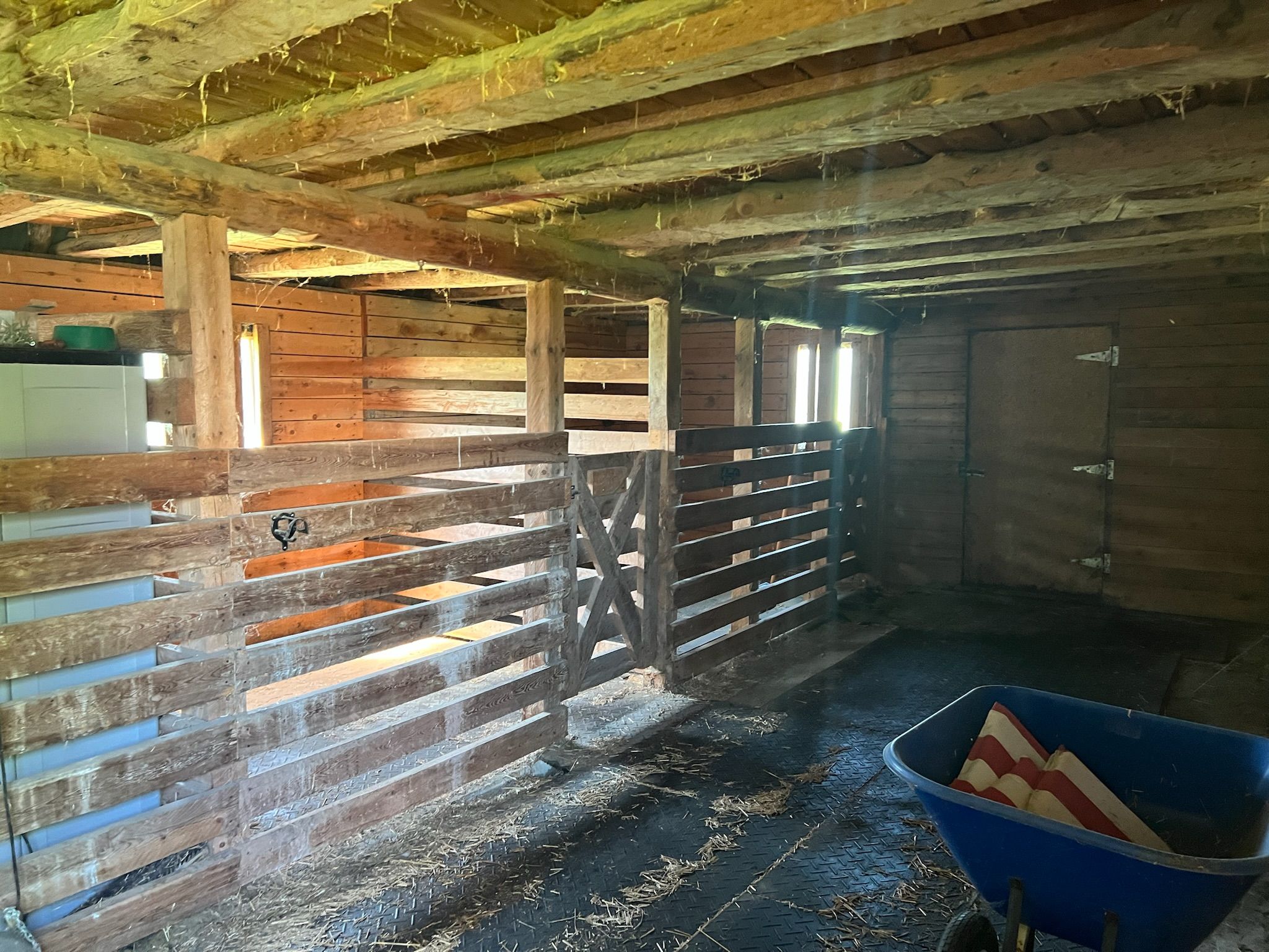 • Fenced paddocks and pasture provide plenty of space for animals.
