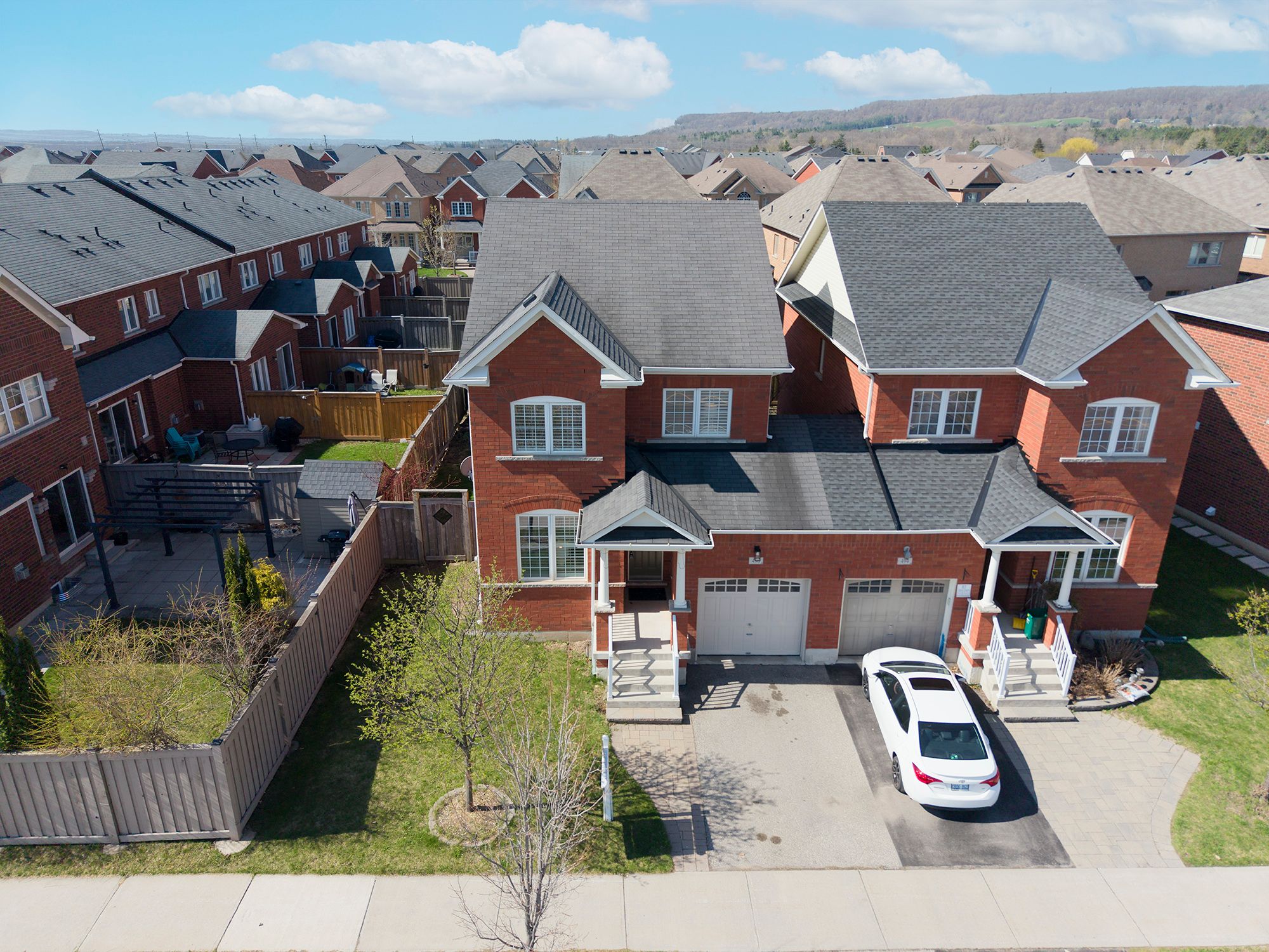 Welcome to 496 savoline blvd. This beautifully maintained premium semi-detached home with over 2200 sqft of living space is nestled in the sought-after scott neighbourhood and perfectly positioned overlooking a tranquil and scenic ravine pond offering gorgeous views and on a larger/corner lot. Walking inside, the main level boasts 9' ceilings, hardwood floors, interior garage access and distinct living spaces featuring a formal living/dining room and an open concept great room with cozy gas fireplace that opens to the bright eat-in kitchen. Rich dark cabinetry, a breakfast bar peninsula, stylish tile backsplash & stainless steel appliances make this a true chef's kitchen. Upstairs, enjoy the primary bedroom retreat with a walk-in closet and a private 4-piece ensuite, 2 additional generously sized bedrooms and a large main bath. The finished basement offers additional living space with an open rec room, guest bedroom/ flex area, a 3-piece bathroom, laundry, and ample storage-all carpet-free. The entire home has been freshly painted with a neutral colour palette and is truly move-in ready. The fully fenced backyard is completed with a patio, a large grassed area and shed-ideal for outdoor entertaining and relaxation. Located in a family-oriented neighbourhood at the base of the escarpment; walking distance to parks, schools, and everyday amenities, plus quick access to major highways and the go station, this home is an ideal choice for families and commuters alike.