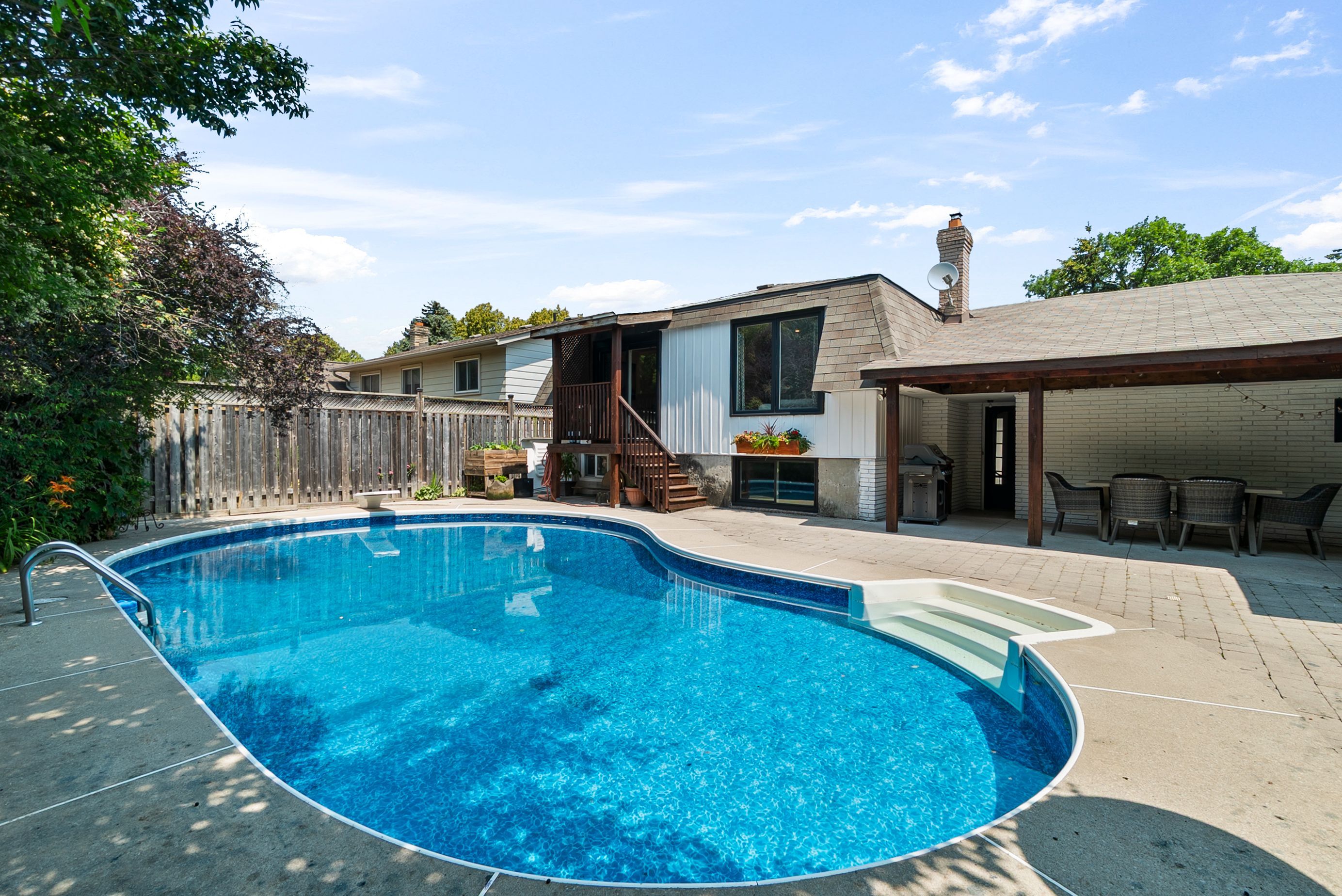 Welcome to 496 seymour drive in the highly sought-after community of west oakville. This beautifully updated bungalow sits on a 60 x 105 ft lot and offers over approx 2,000 sq ft of total finished living space, blending comfort, style, and functionality. The main floor features a bright open-concept living and dining area with pot lights and large windows that fill the space with natural light. The renovated kitchen boasts quartz countertops, stainless steel appliances, a custom backsplash, and ample storage - ideal for everyday living and entertaining. The home offers three spacious bedrooms on the main level and a fully finished lower level complete with two additional bedrooms, a home office, a recreation room with a cozy fireplace, and a separate laundry area. Step outside to your private backyard oasis featuring a beautiful yard, an inground pool, and a relaxing hot tub perfect for outdoor gatherings. Additional highlights include a double garage, an updated driveway, and parking for up to nine vehicles. Located close to top-rated schools, parks, trails, and amenities, this home offers exceptional value in one of oakville's most desirable neighbourhoods.