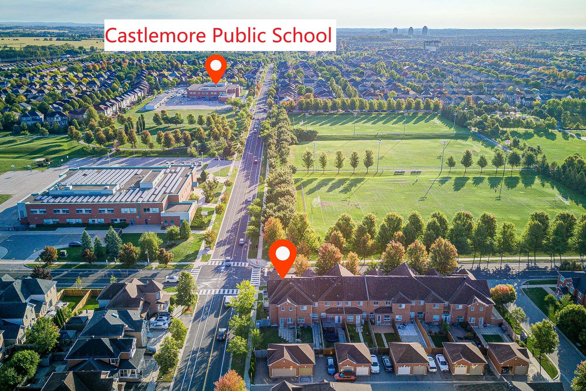 Rarely offered demand berczy village location*spectacular park view* freehold townhome * bright & spacious 2040 sf corner unit * double car garage with extra parking pad * stone front * double door entrance * 9' ceiling * hardwood stair * 5 min walk to pierre elliott trudeau h. S, all saint c. S & castlemore p. S * bus stop at door step *